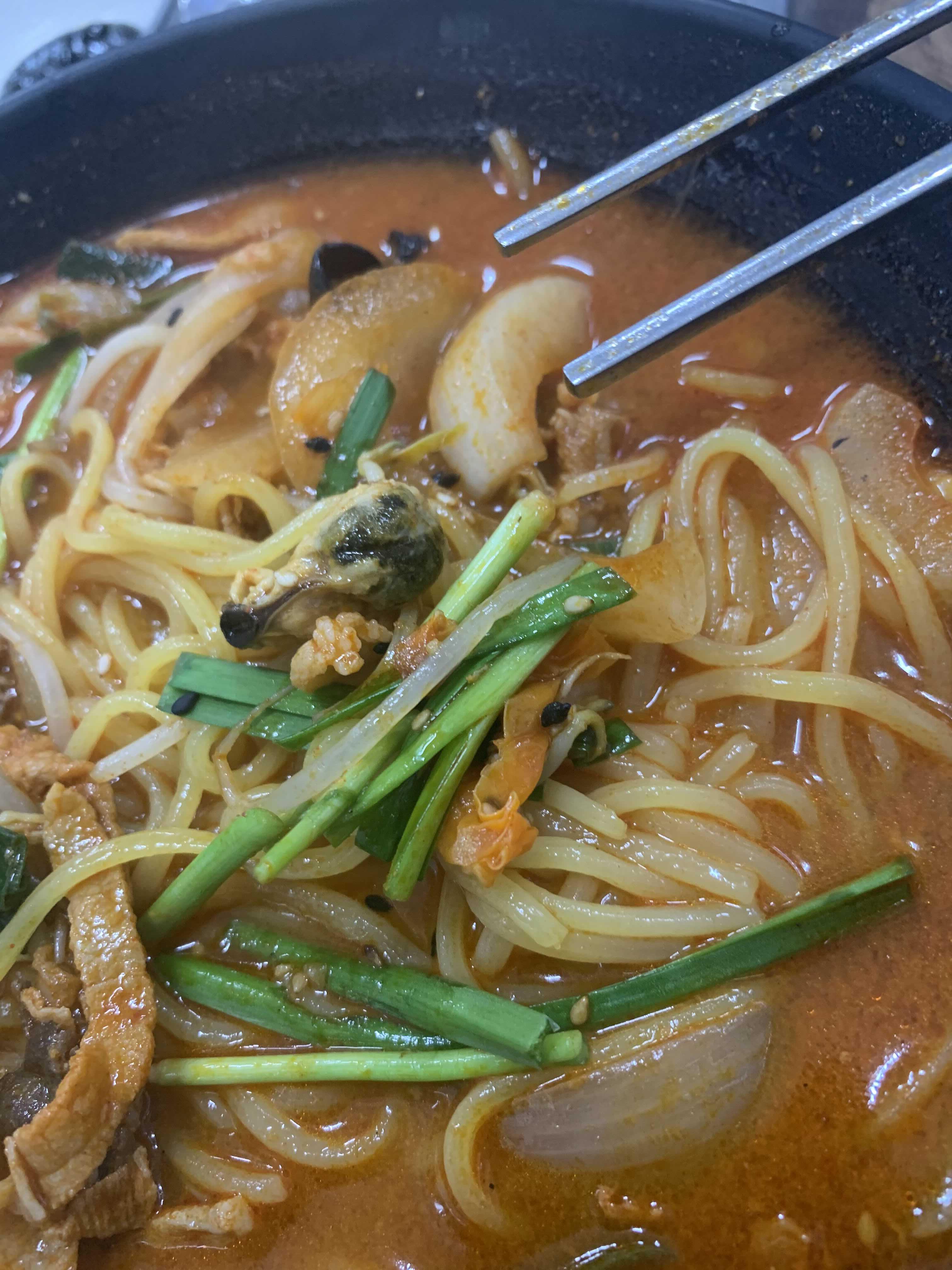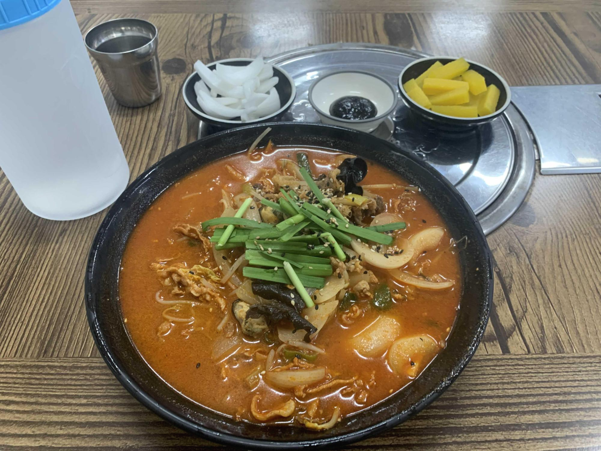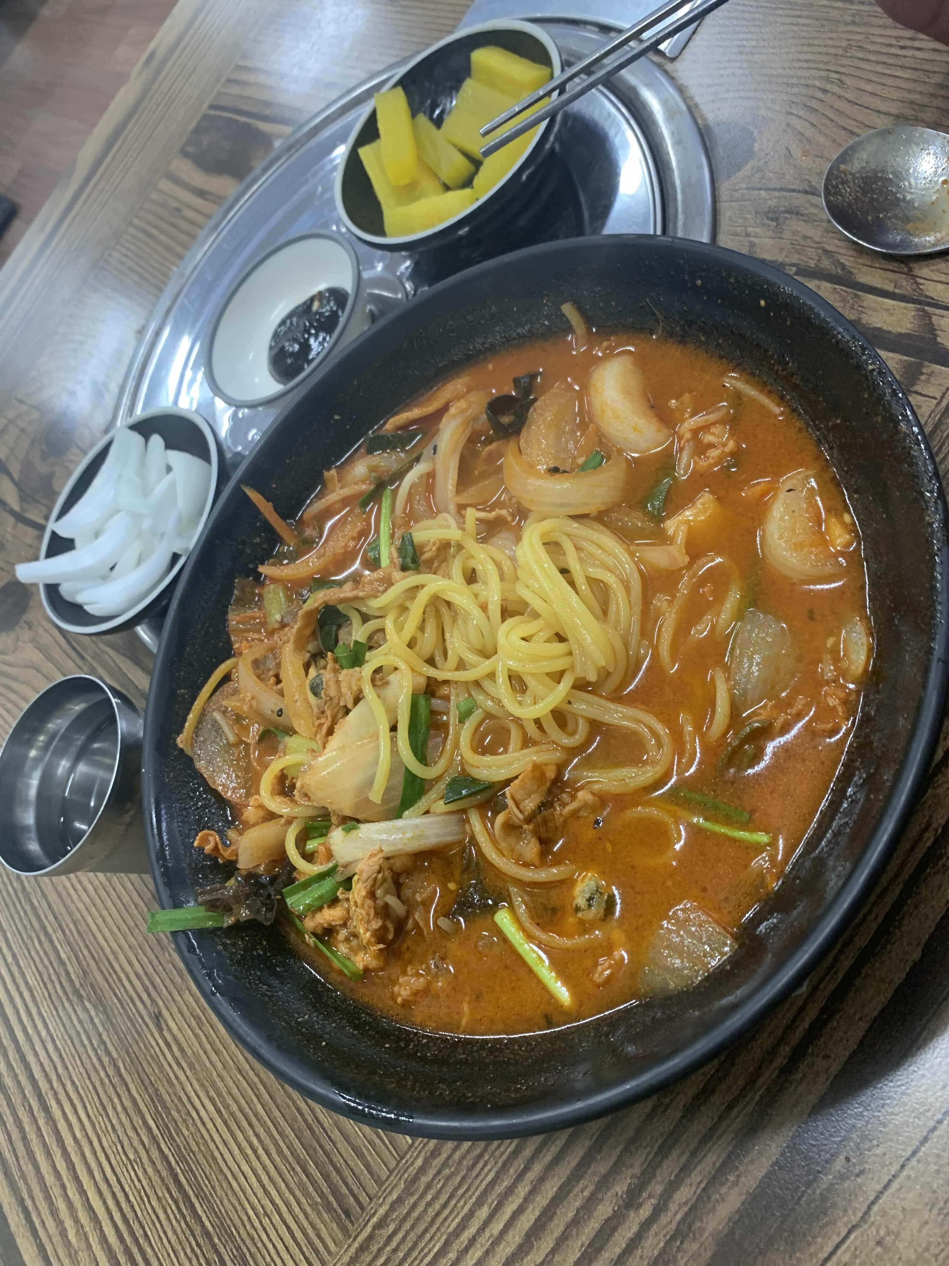 2가지 고기가 들어있는 짬뽕! 국물은 고깃국 느낌의 아주 매운맛입니다. 가격은 8,000원으로 약간 비싼 느낌이 있기는 하지만..... 내용물이나 양을 생각하면 그리 비싸지는 않은 가격대입니다. 나에게는 아주 맛있는 짬뽕으로... 내가 지금까지 먹어본 짬뽕 중 3위 안에 드는 짬뽕입니다. 다만, 매운맛을 안 좋아하는 사람들에게는 비추! 가 될 것 같습니다.(너무 매움)