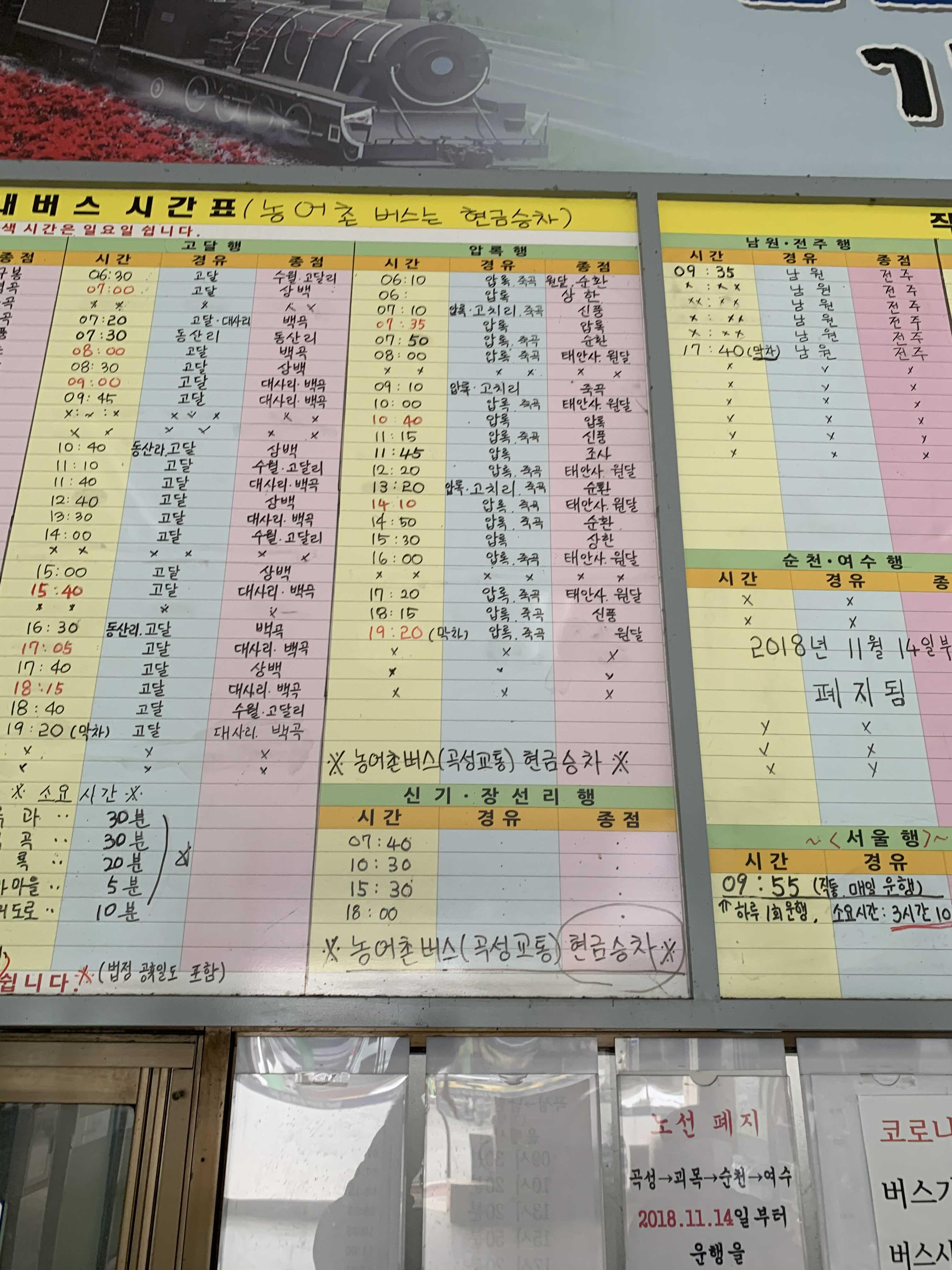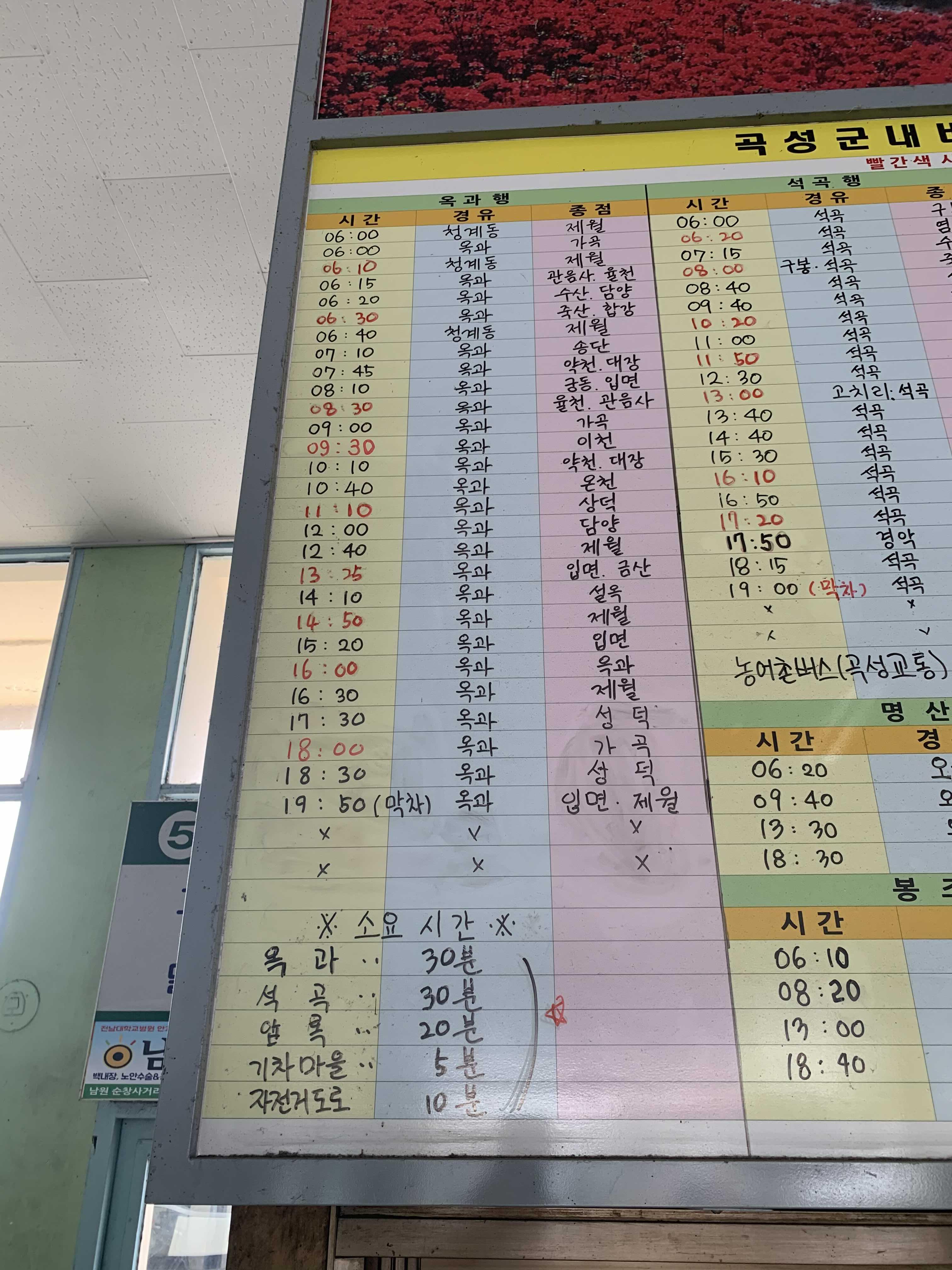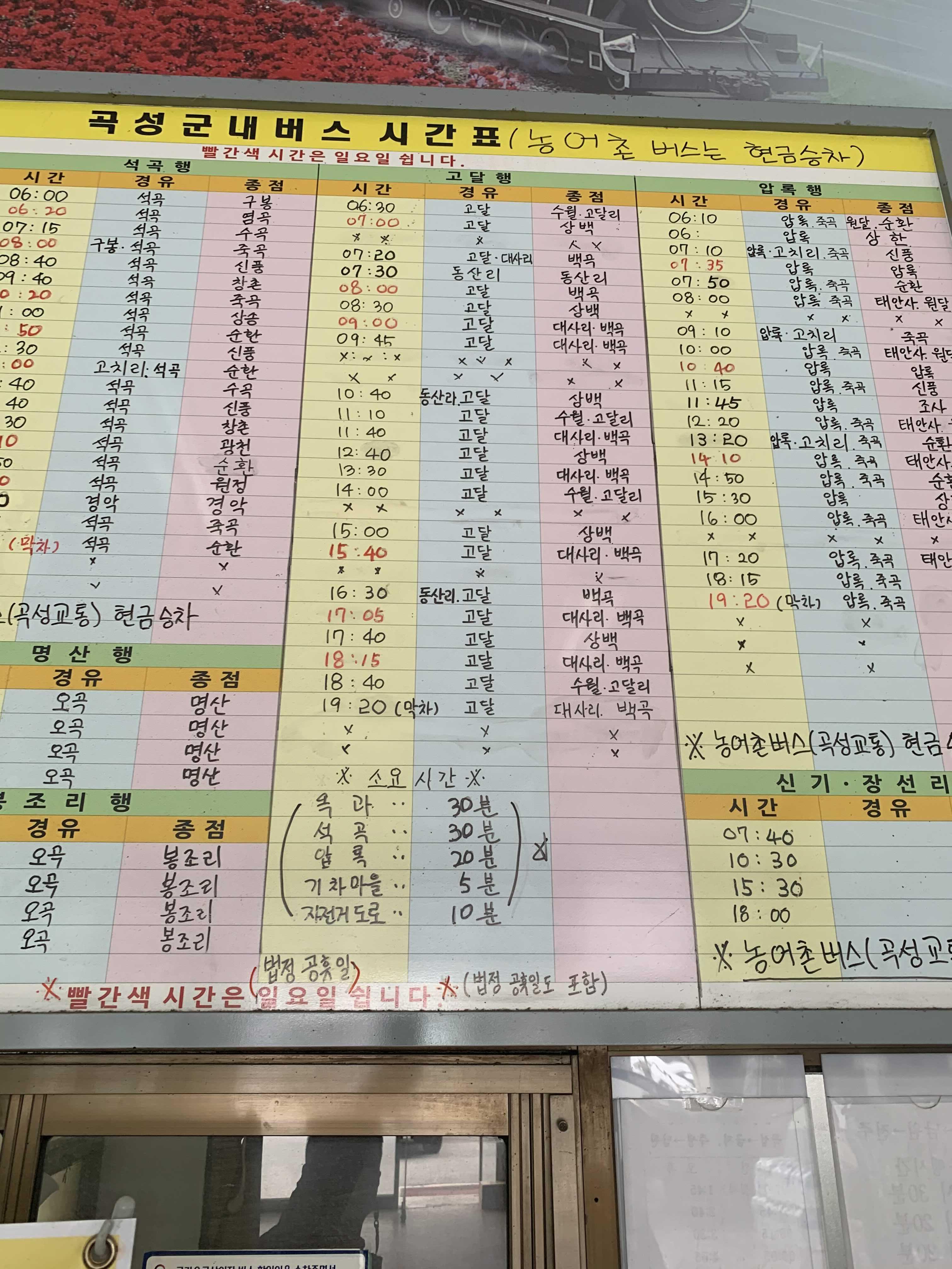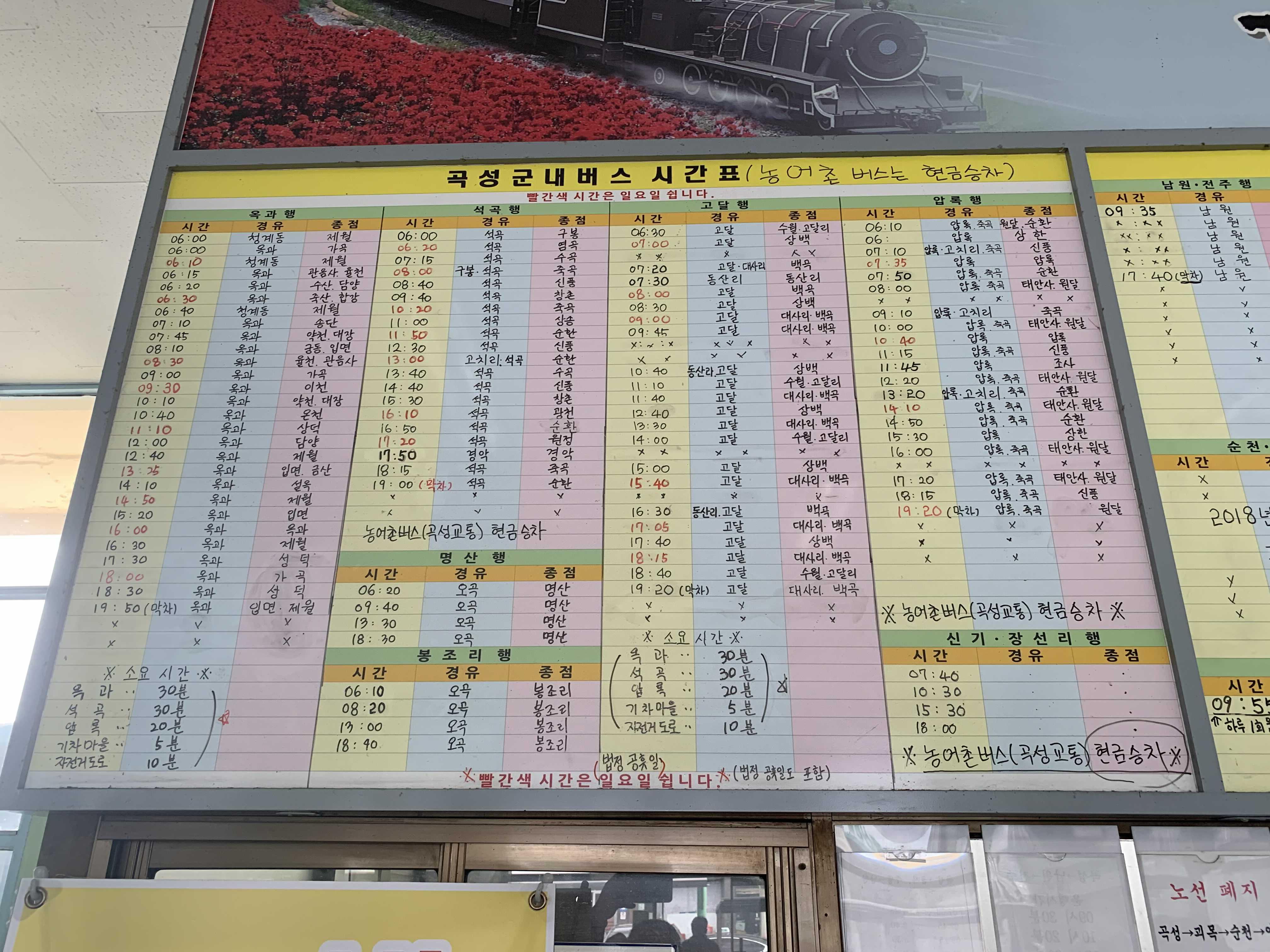 최근에 확인한 곡성 버스터미널 시간표입니다.