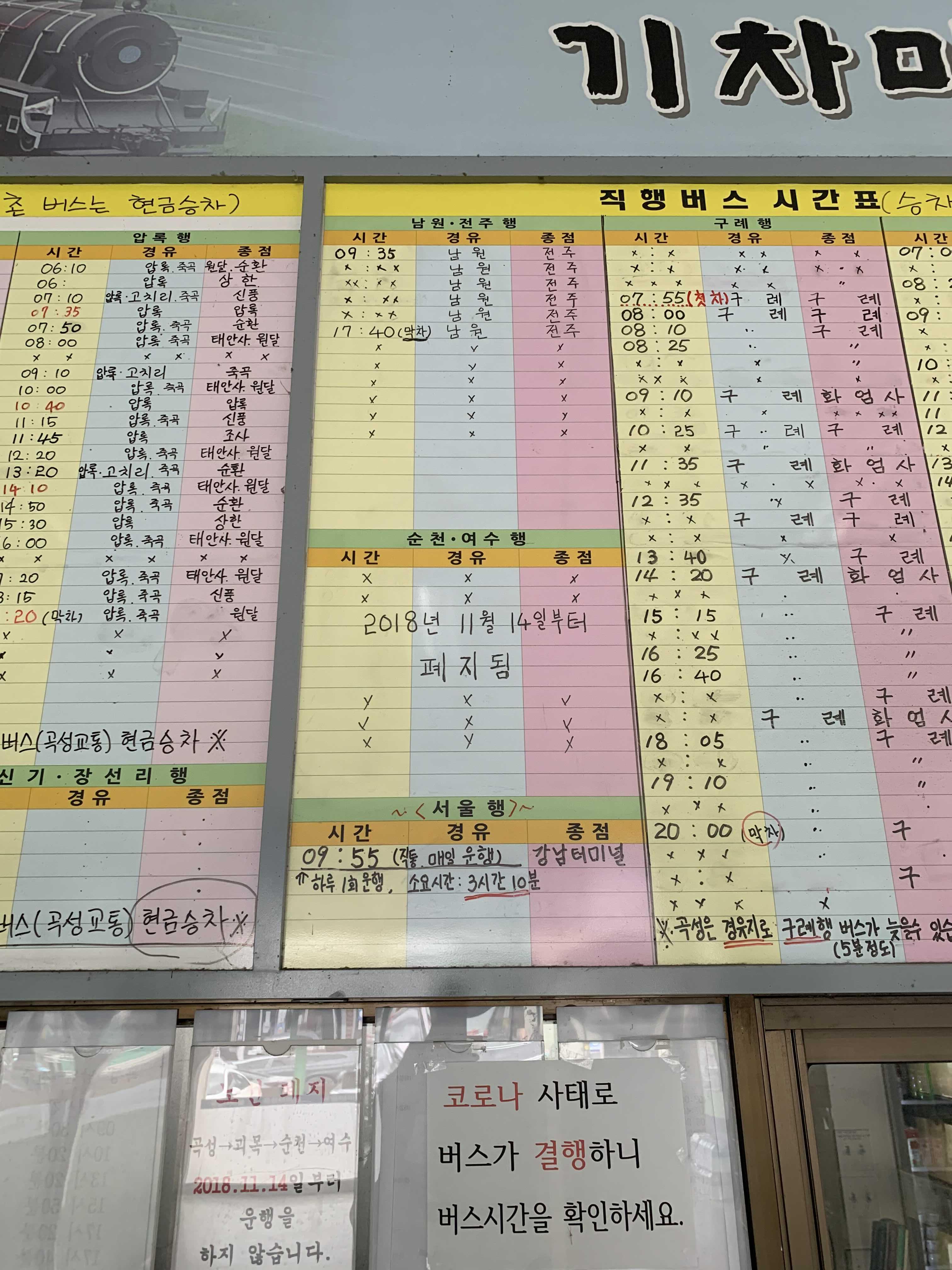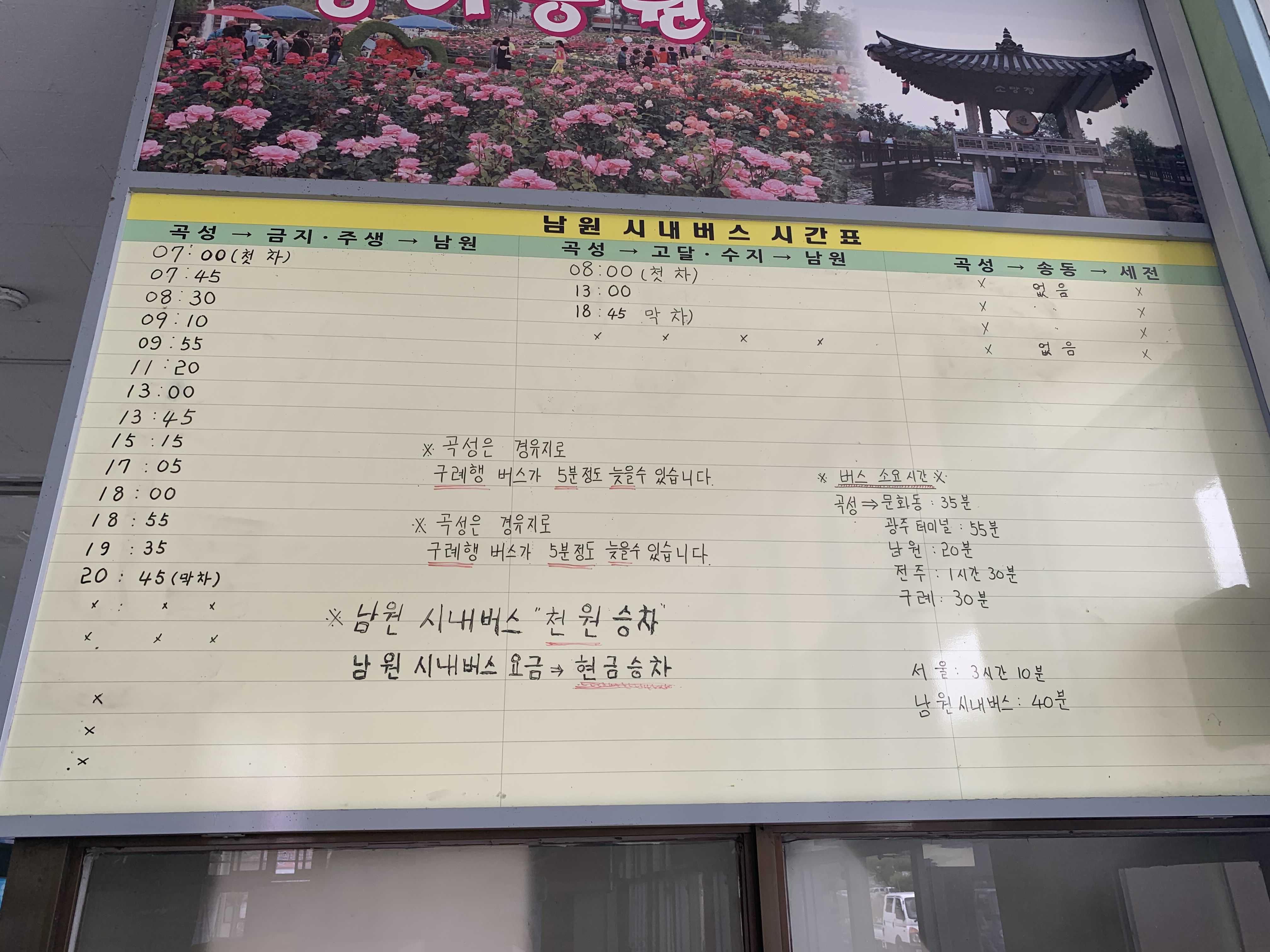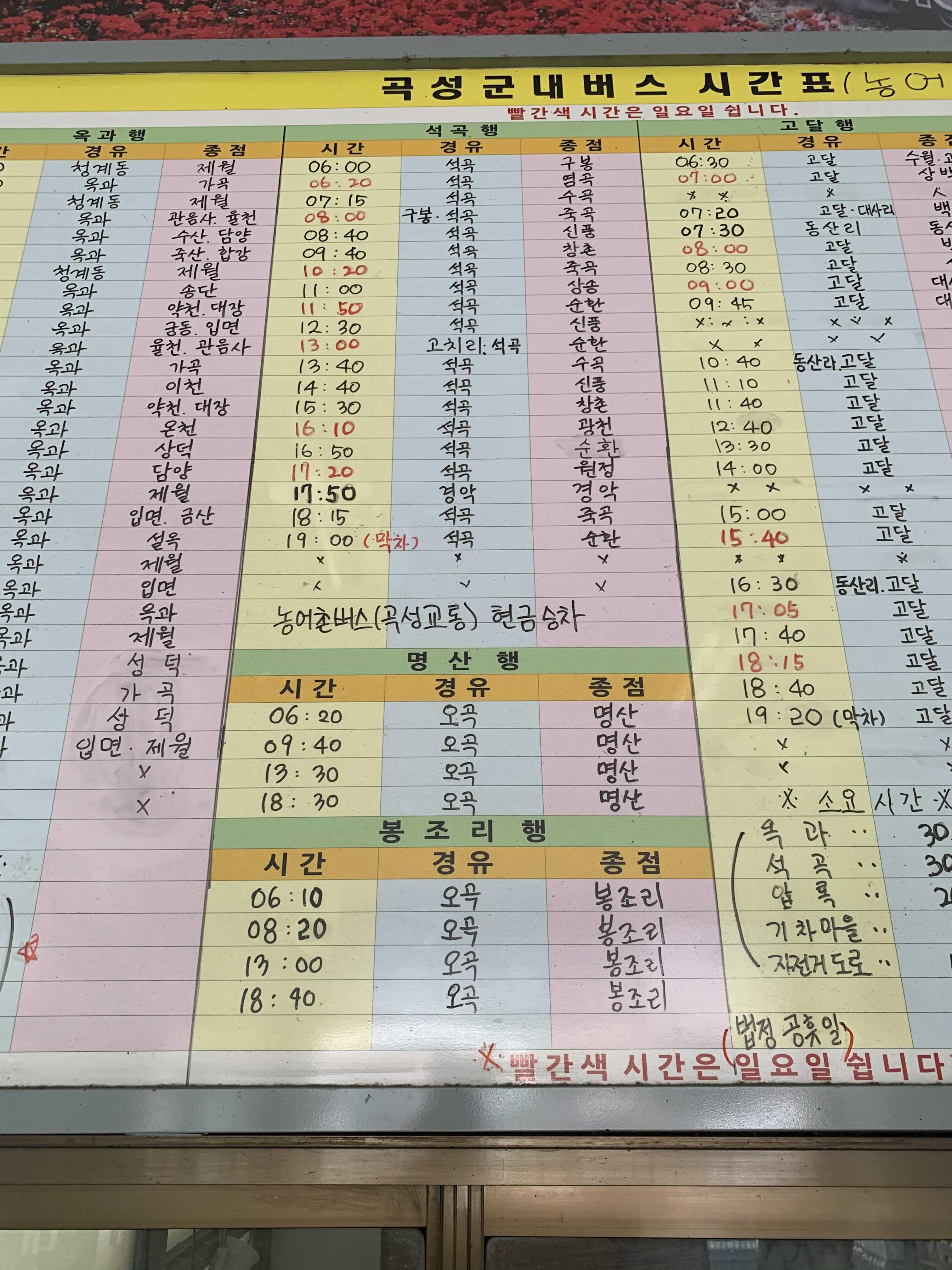 최근에 확인한 곡성 버스터미널 시간표입니다.