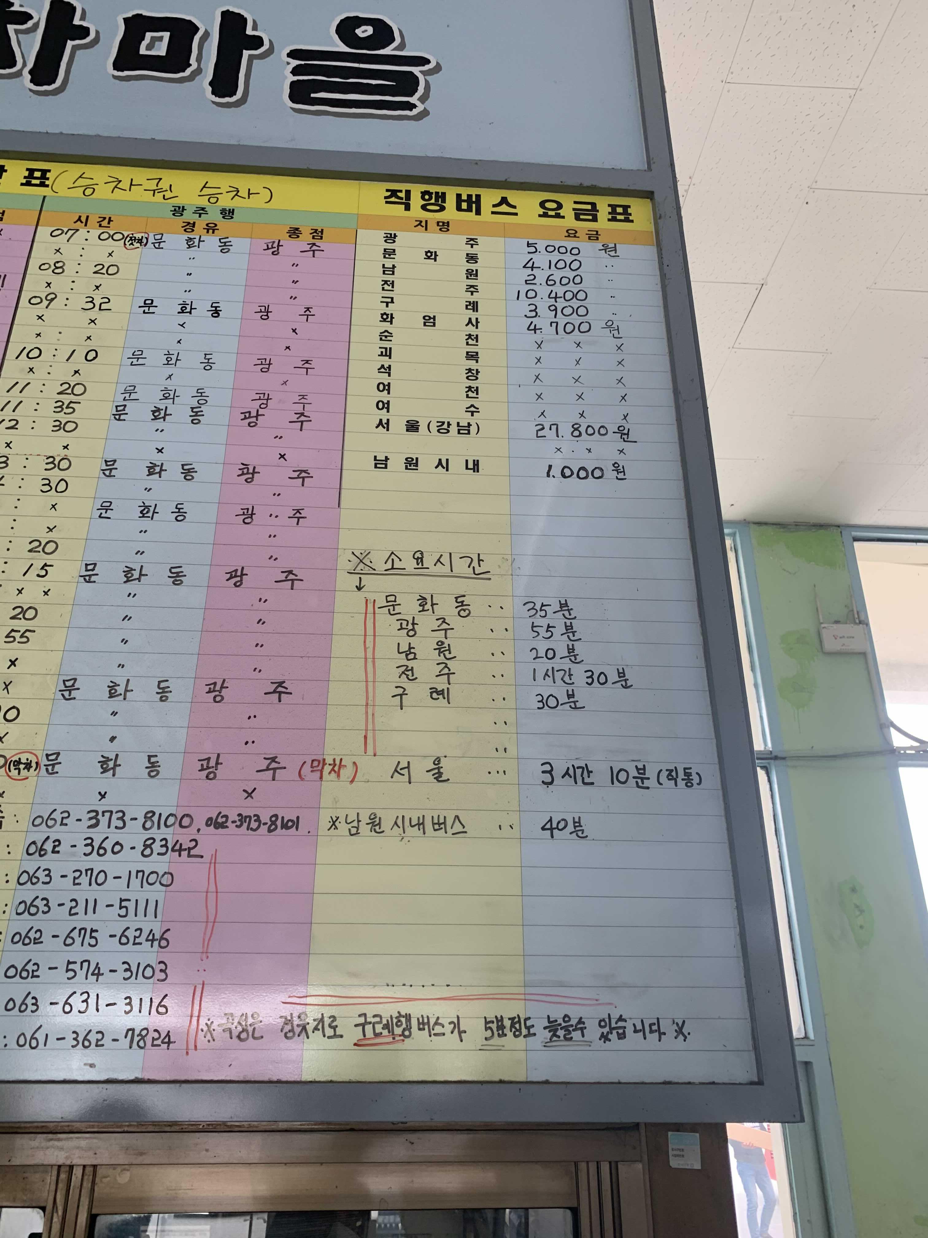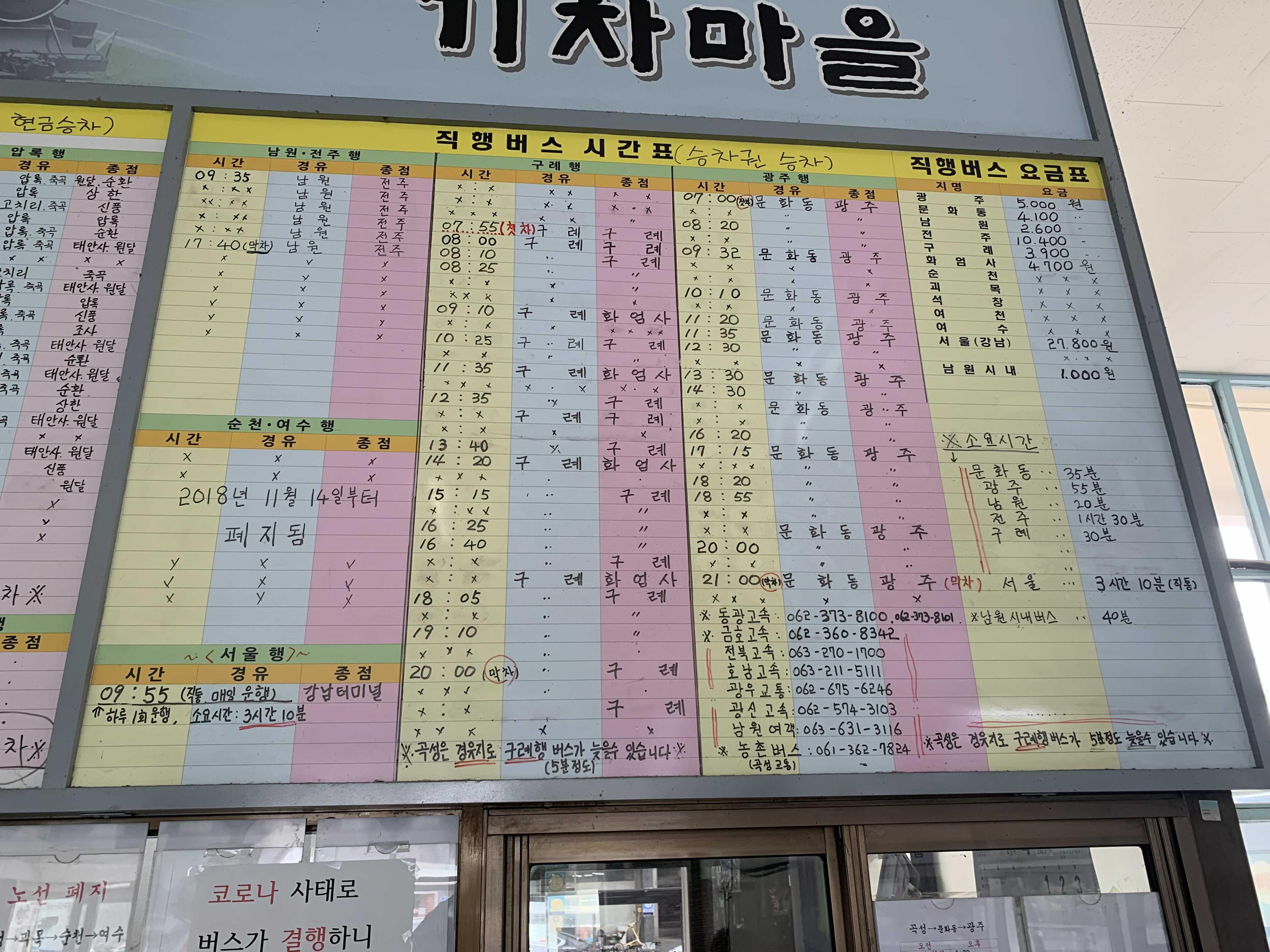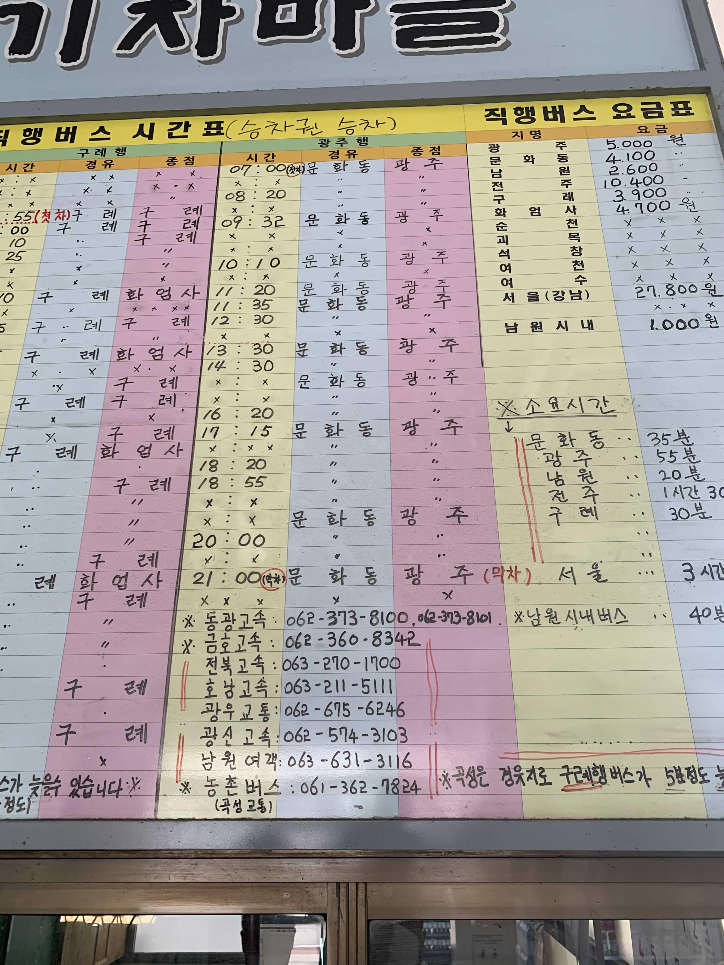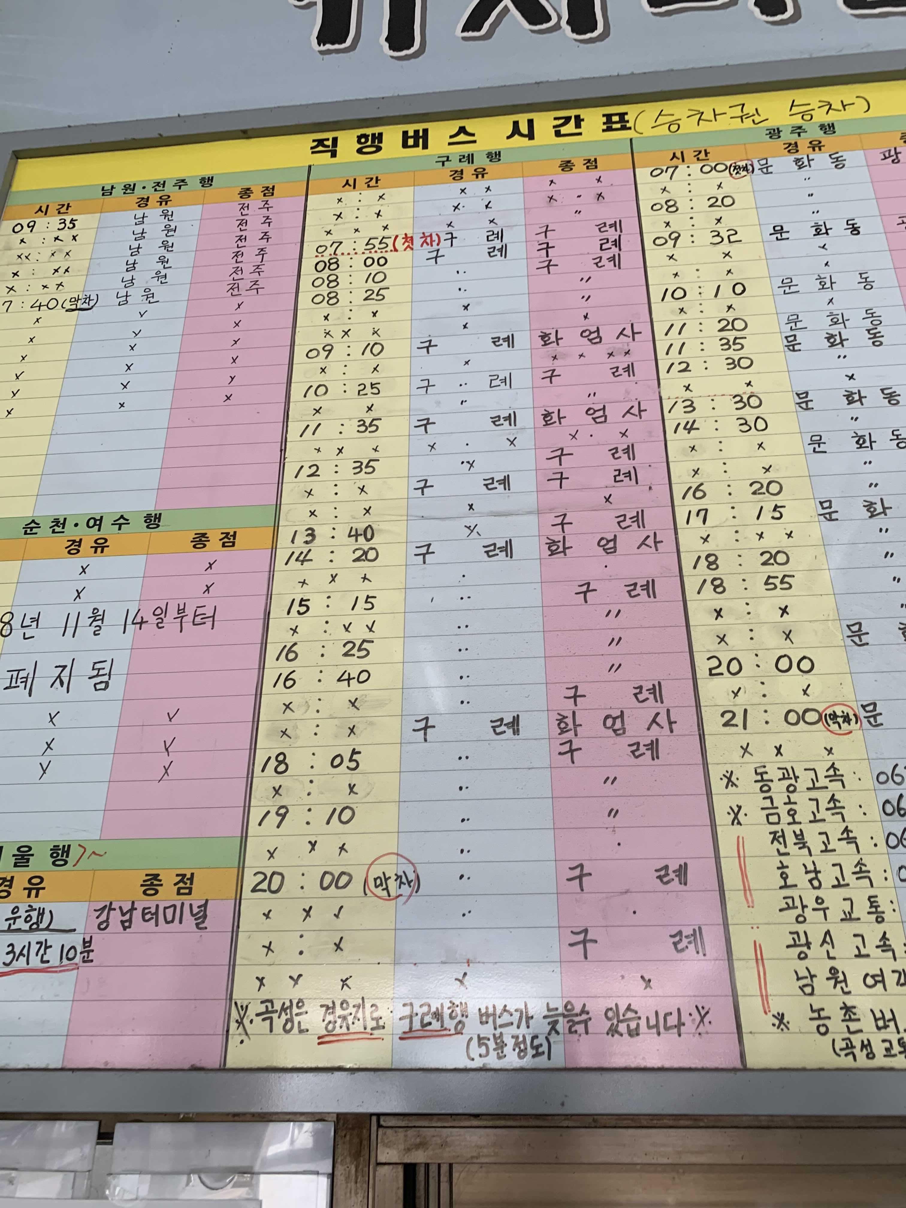 최근에 확인한 곡성 버스터미널 시간표입니다.