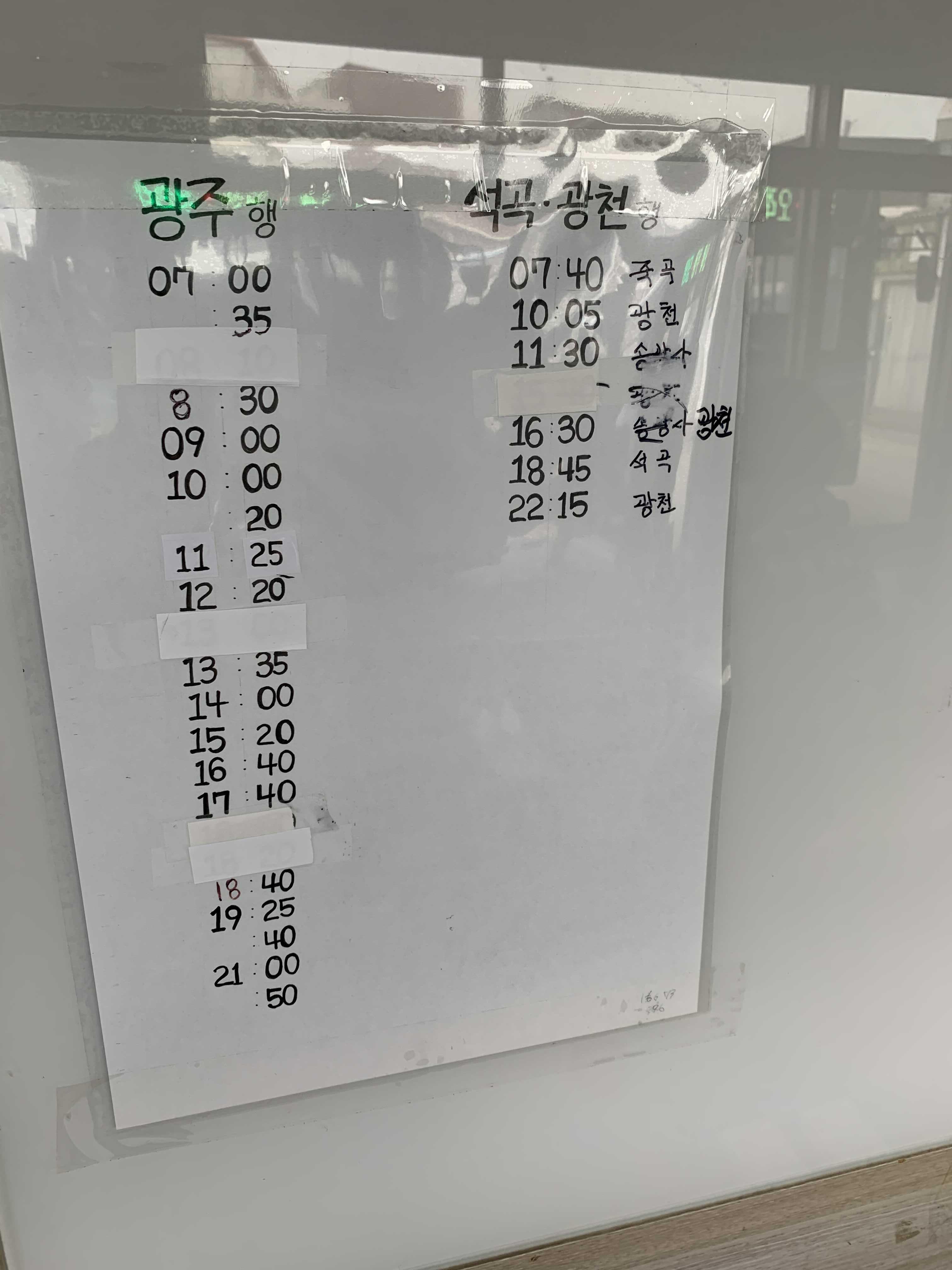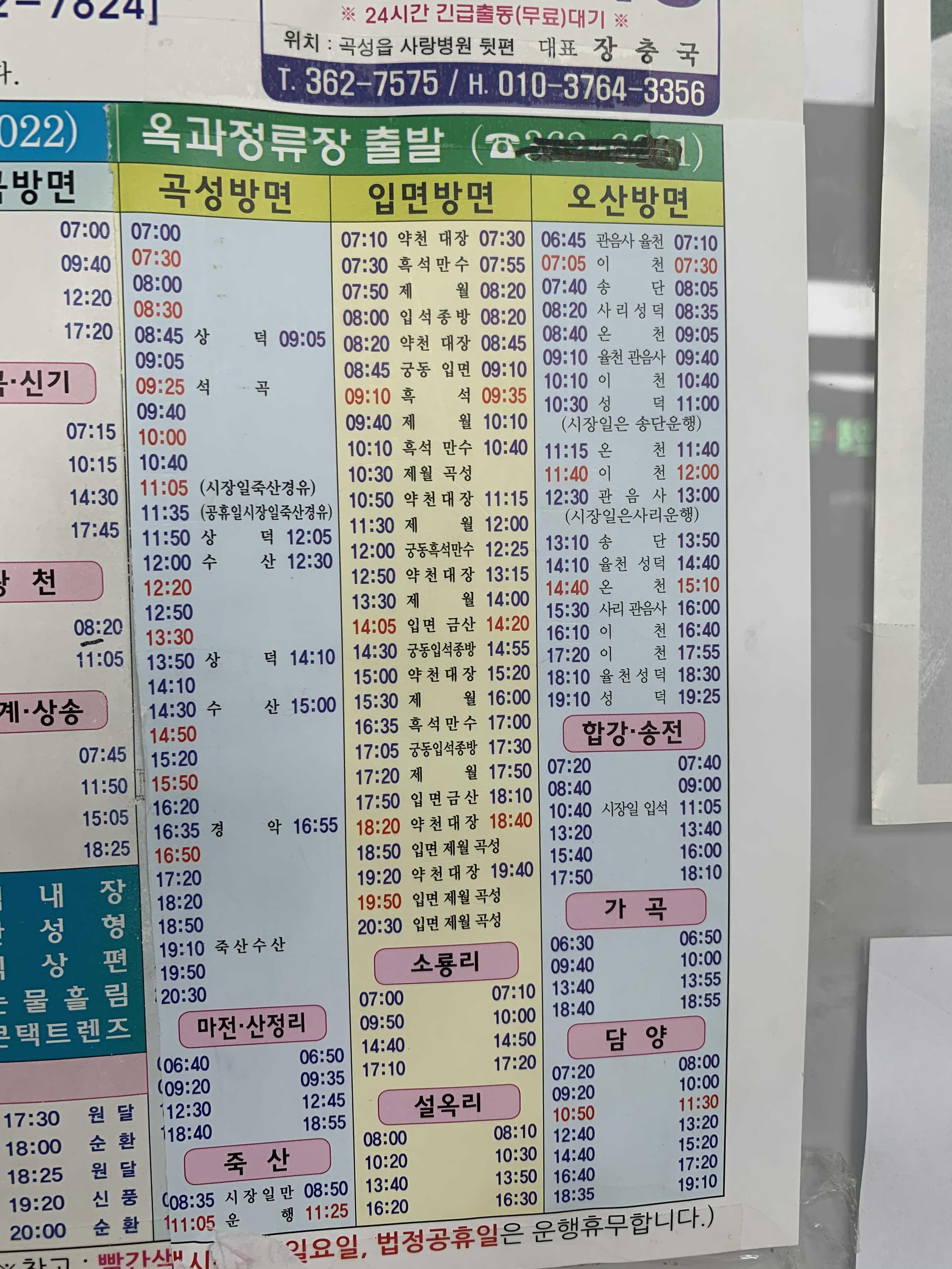 곡성 옥과 터미널 버스 시간표입니다. 옥과에는 전남과학대학교 옥과 캠퍼스가 있어서, 광주로 이동하는 버스노선과 곡성군청으로 향하는 군내버스를 운영하고 있습니다.