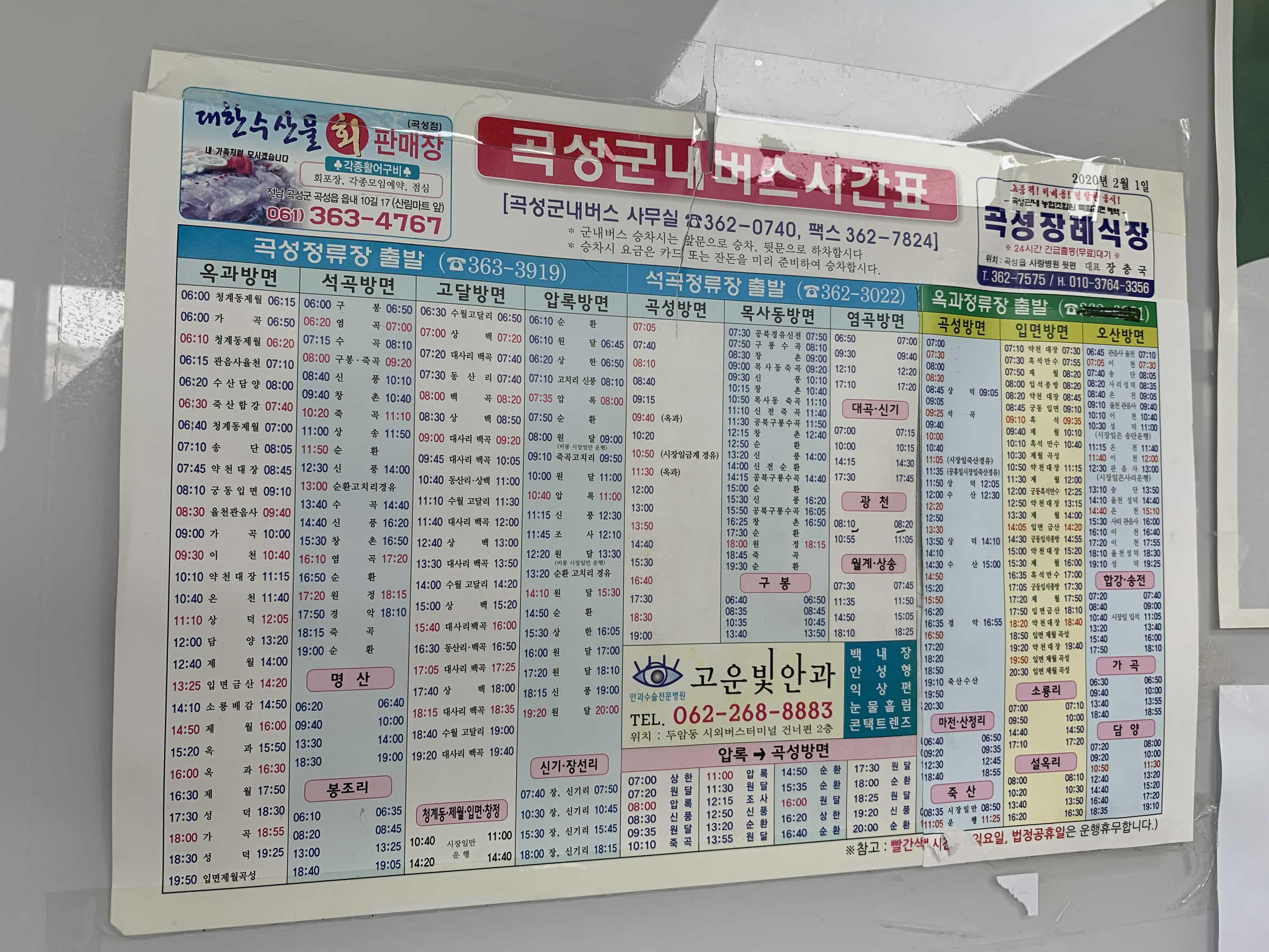 | 곡성버스터미널 시간표(2021년 04월 기준) (0) | 2021.04.24 |