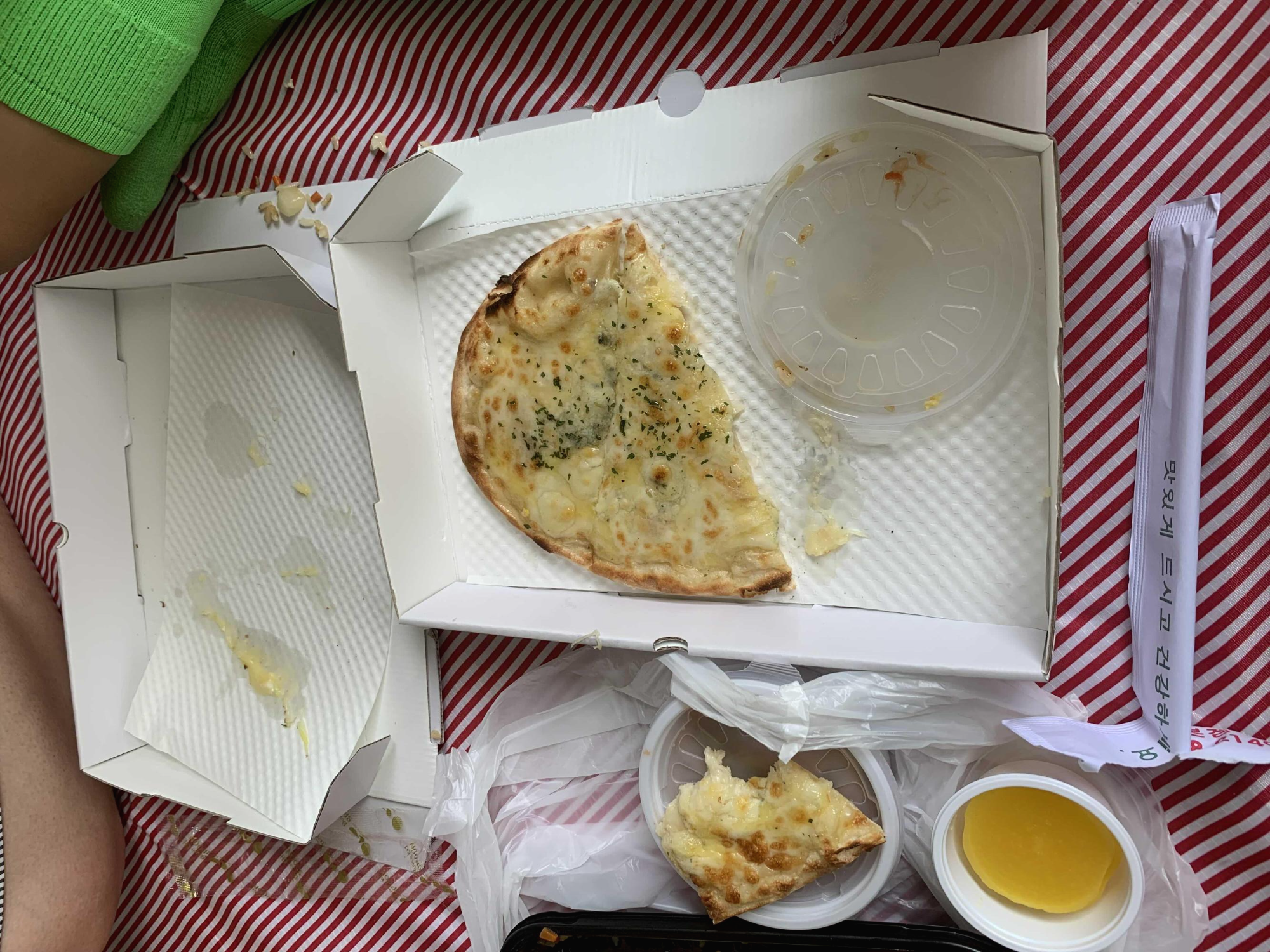 전북대 박물관 앞에 위치한 고 피자 방문 후기입니다. 점심시간 포장하여 박물관 앞 잔디에 돗자리 피고 먹으러 포장한 음식으로~ 1인 피자입니다.