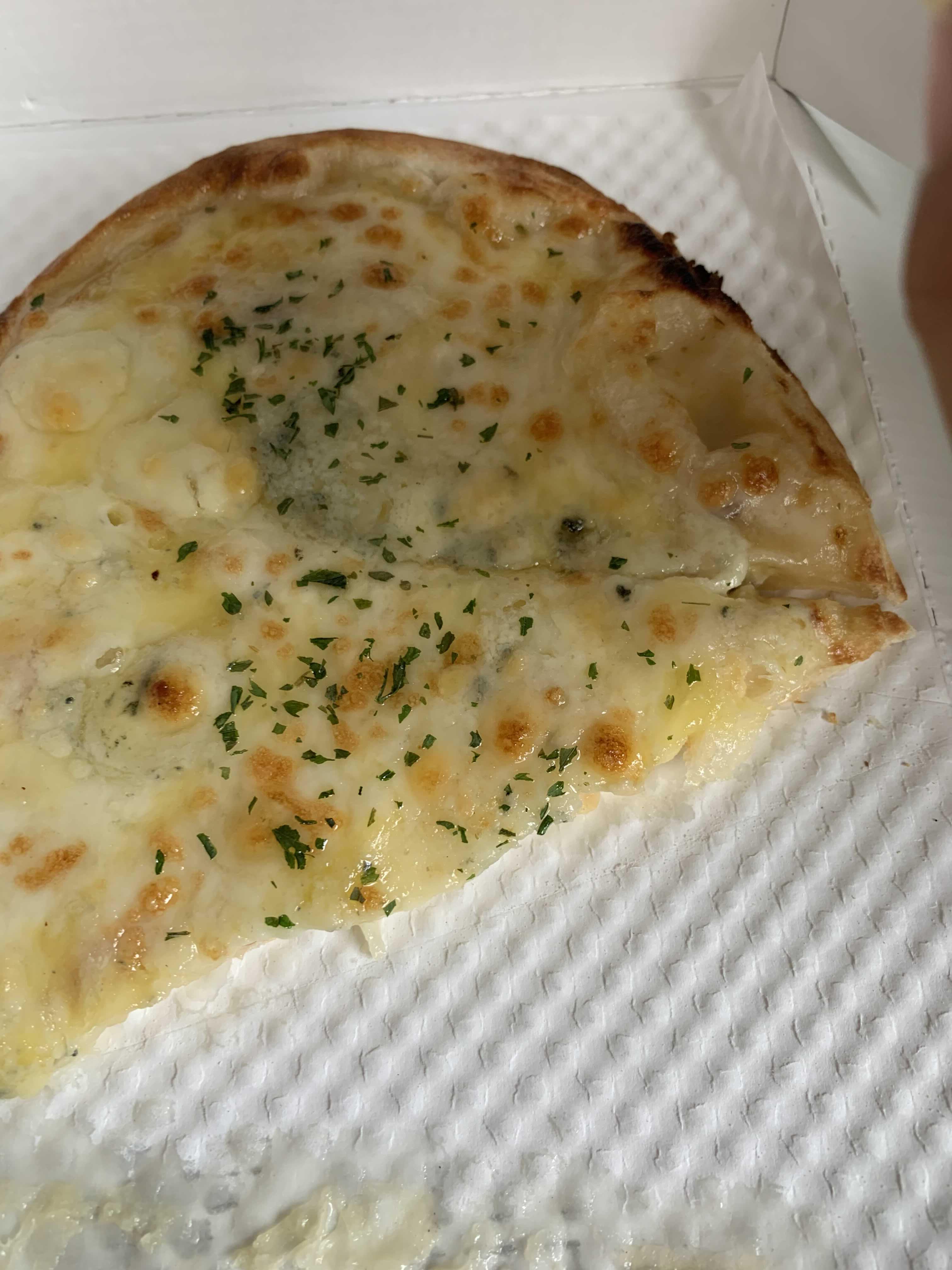 혼자 먹기 적당한 사이즈! 도우가 두툼하여 고구마 피자는 맛이 꽤 괜찮았습니다. 다만, 얇은 도우와 어울린 고르곤졸라 피자는 약간 아쉬웠습니다. 2개 피자 중 고구마 피자를 먼저 먹게 되더군요. 가볍게 포장해서 식당 앞 잔디에 돗자리 피고 먹기 좋은 음식이었습니다.