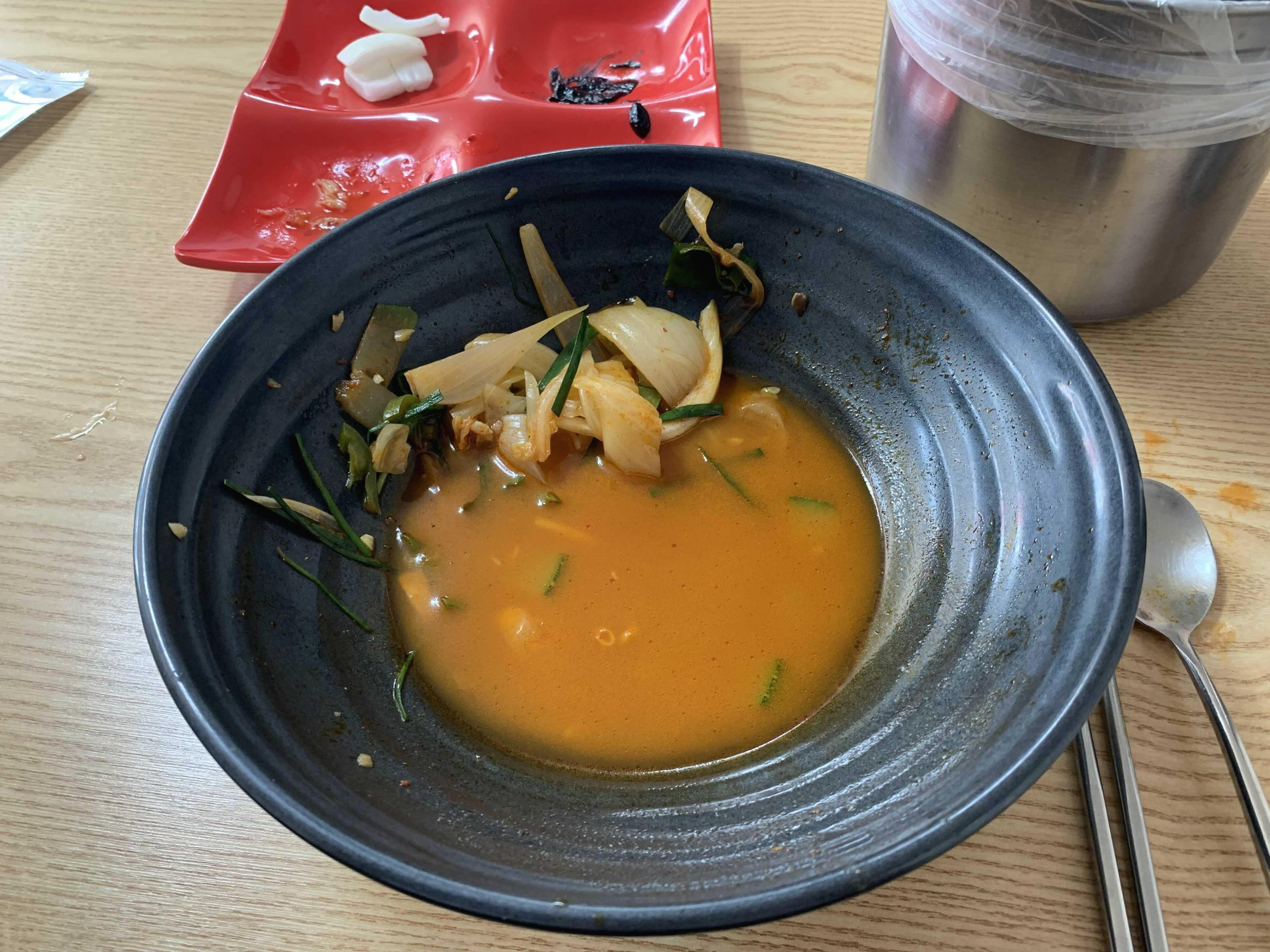 다른 테이블은 짬뽕이 아닌 간짜장을 주문하시더군요. 짬뽕보다는 이 중식당은 간짜장의 맛있나 봅니다. 짬뽕을 먹고 공깃밥을 말아서 먹는데.... 국물이 밥을 말어서 먹기에 부족한 느낌이라 공깃밥은 패스했습니다.