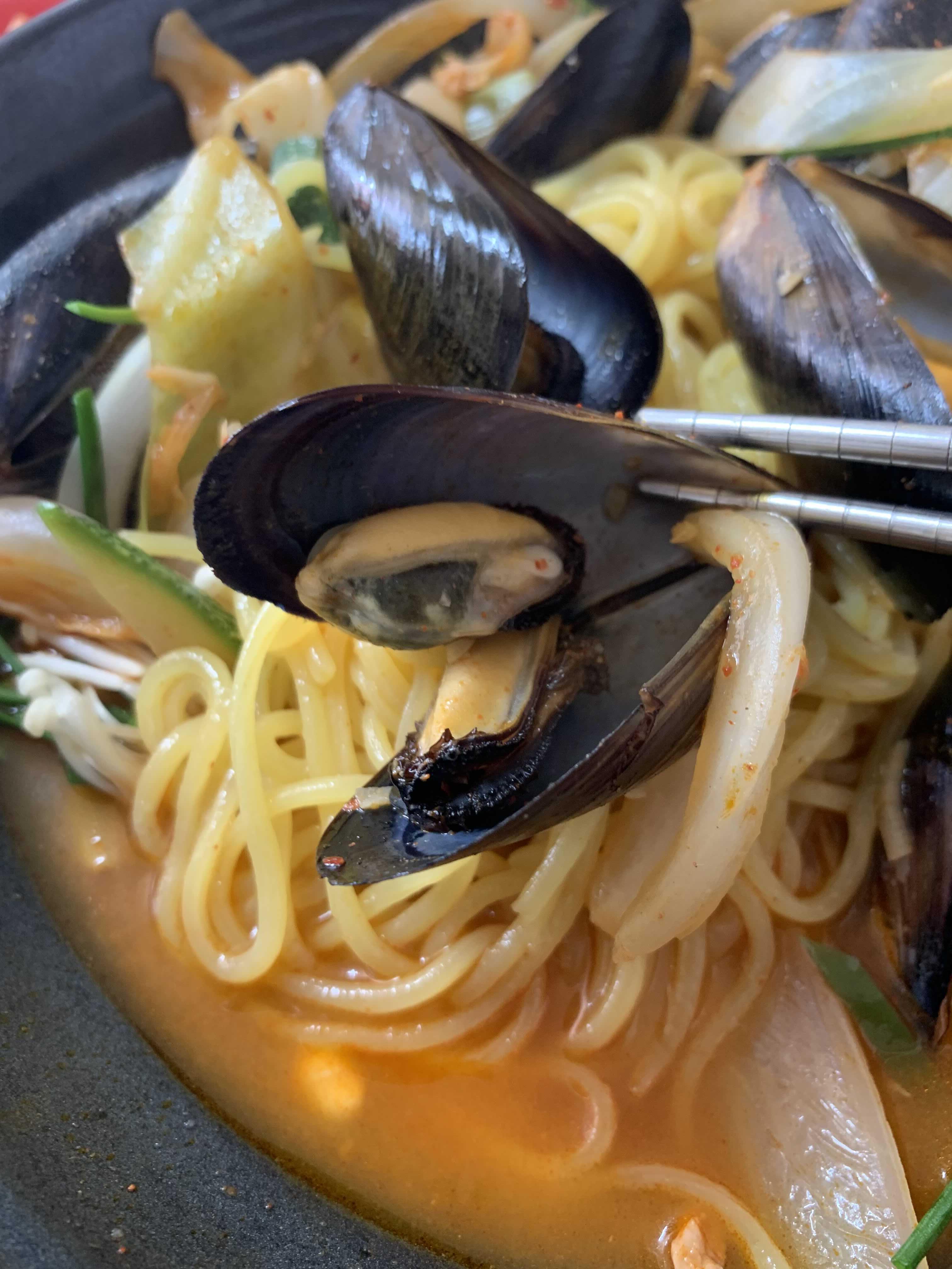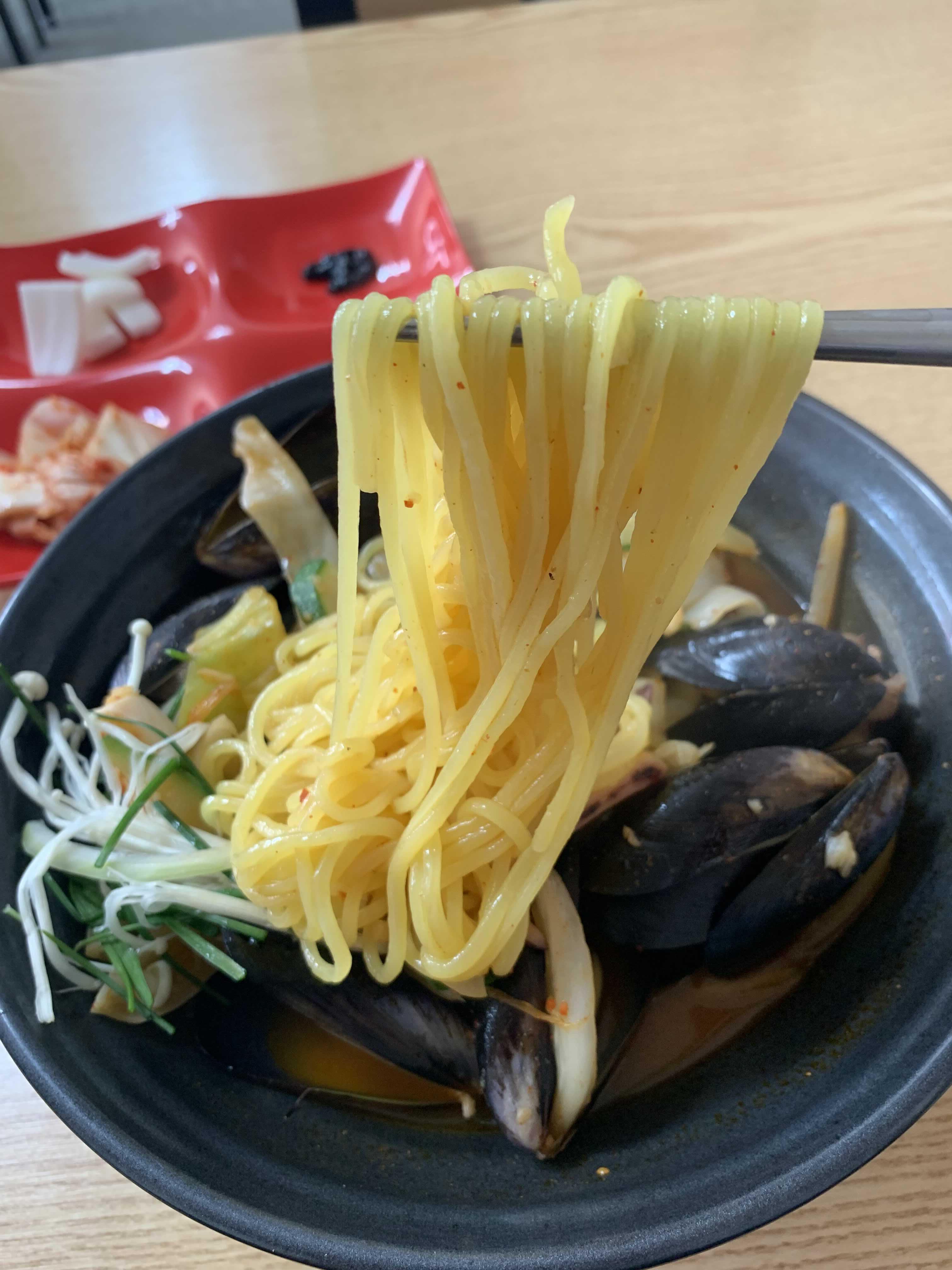 짬뽕에 들어간 홍합은 싱싱하니 좋더군요. 그 외 건더기로 오징어와 고기가 들어있는데, 고기가 들어간 짬뽕은 국물이 진하게 나오는데... 국물이 약하다 보니... 조금 맹한 느낌의 짬뽕이더군요. 첫 국물은 그렇게 맹숭맹숭한 느낌이었으나... 계속 먹다 보니 매콤함이 올라오더군요.