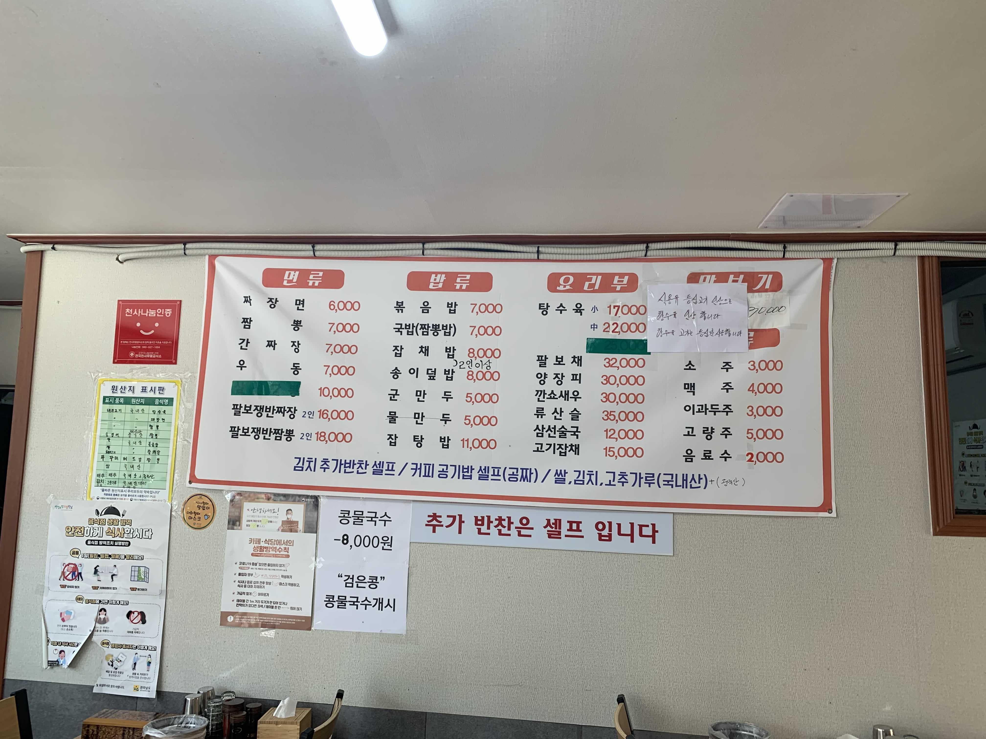식당에 들어서 메뉴판을 스캔하니 다양한 메뉴와 짬뽕이 눈에 들어오더군요. 첫 방문한 중식당은 언제나 짬뽕을 주문하기도 해서 짬뽕 한 그릇 주문했습니다. 시골에 위치한 중식당의 가격이 7,000원이면 저렴한 가격은 아니라... 나름 내용물을 기대하며 기다렸습니다.