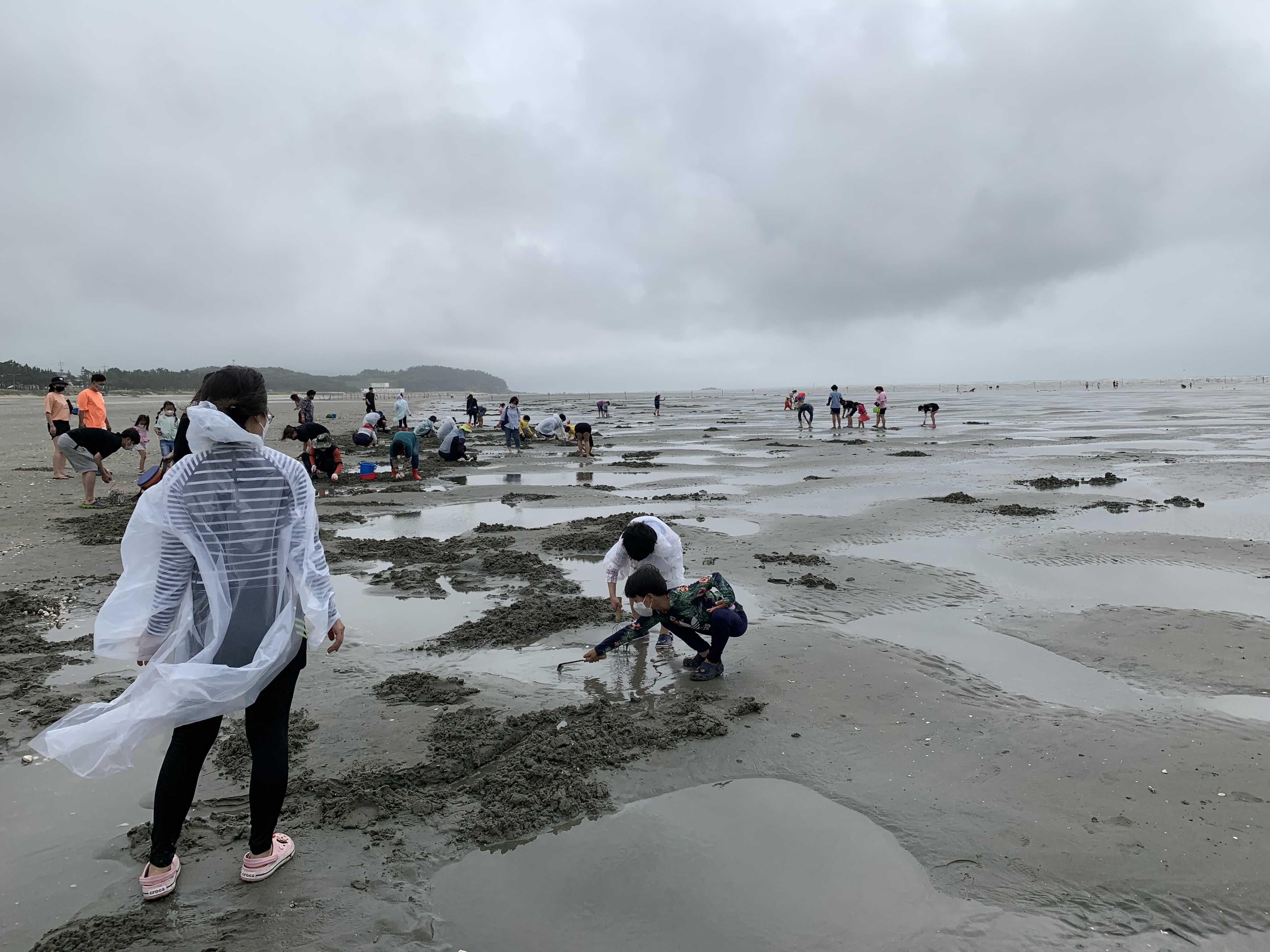 해수욕장에 도착시간이 간조라서... 해수욕장 느낌보다는 갯벌의 느낌이 강하게 느껴지더군요. 해수욕을 즐기기(?) 보다 조개를 캐는 사람들로 가득하더군요.