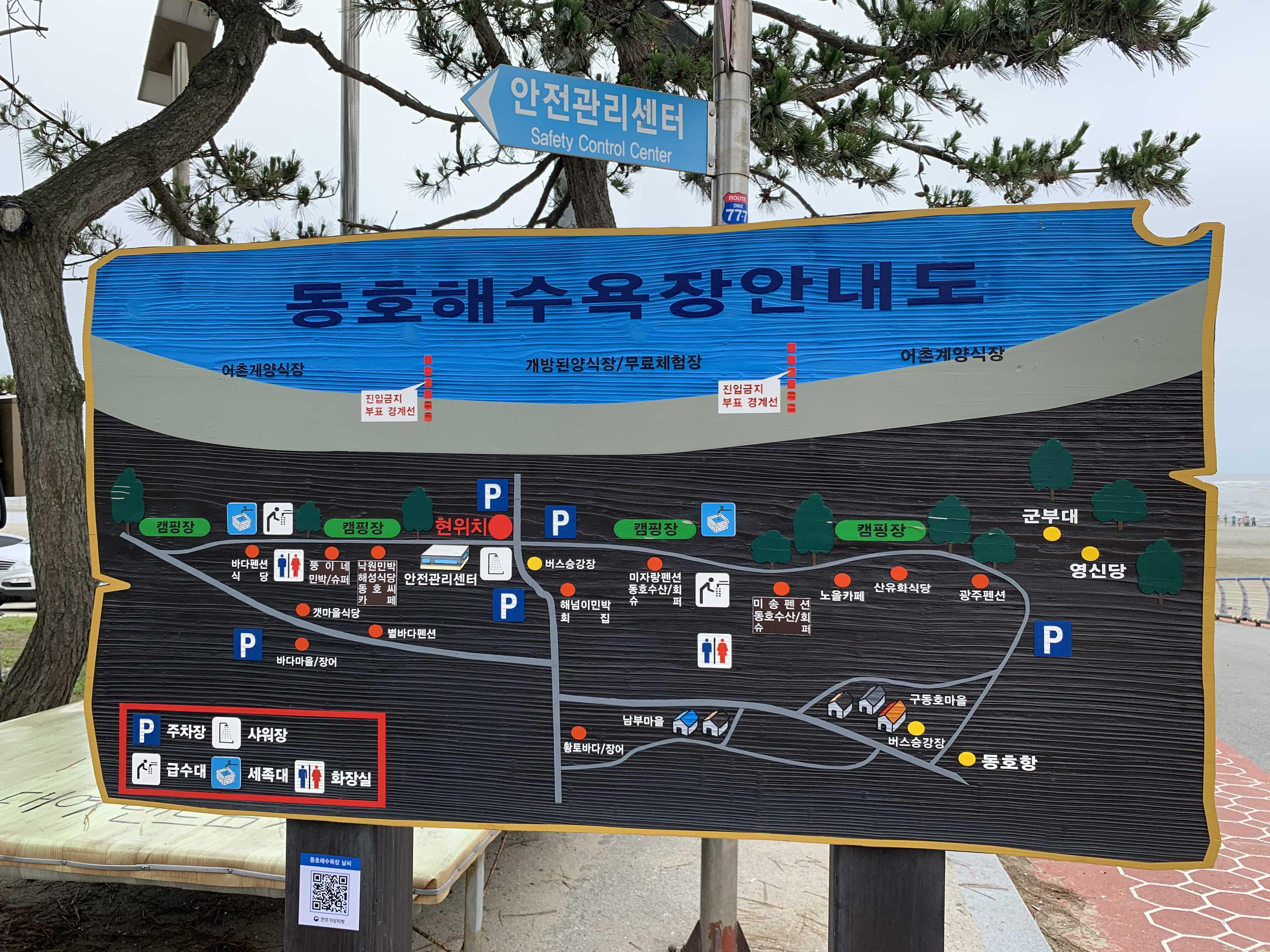해수욕장이 코로나의 여파인지, 시설물 공사의 여파인지.... 여러 편의시설이 사용금지 테이프가 설치되어 있었습니다. 해수욕장은 세면대와 화장실만 잘 구축되어서 괜찮은 해수욕장이죠. 최근에 가본 해수욕장 중 선유도 해수욕장이 잘 구축되고, 관리가 잘 되더군요. 동호해수욕장은 선유도 해수욕장에 비해 많이 관리나 시설들이 떨어지더군요.