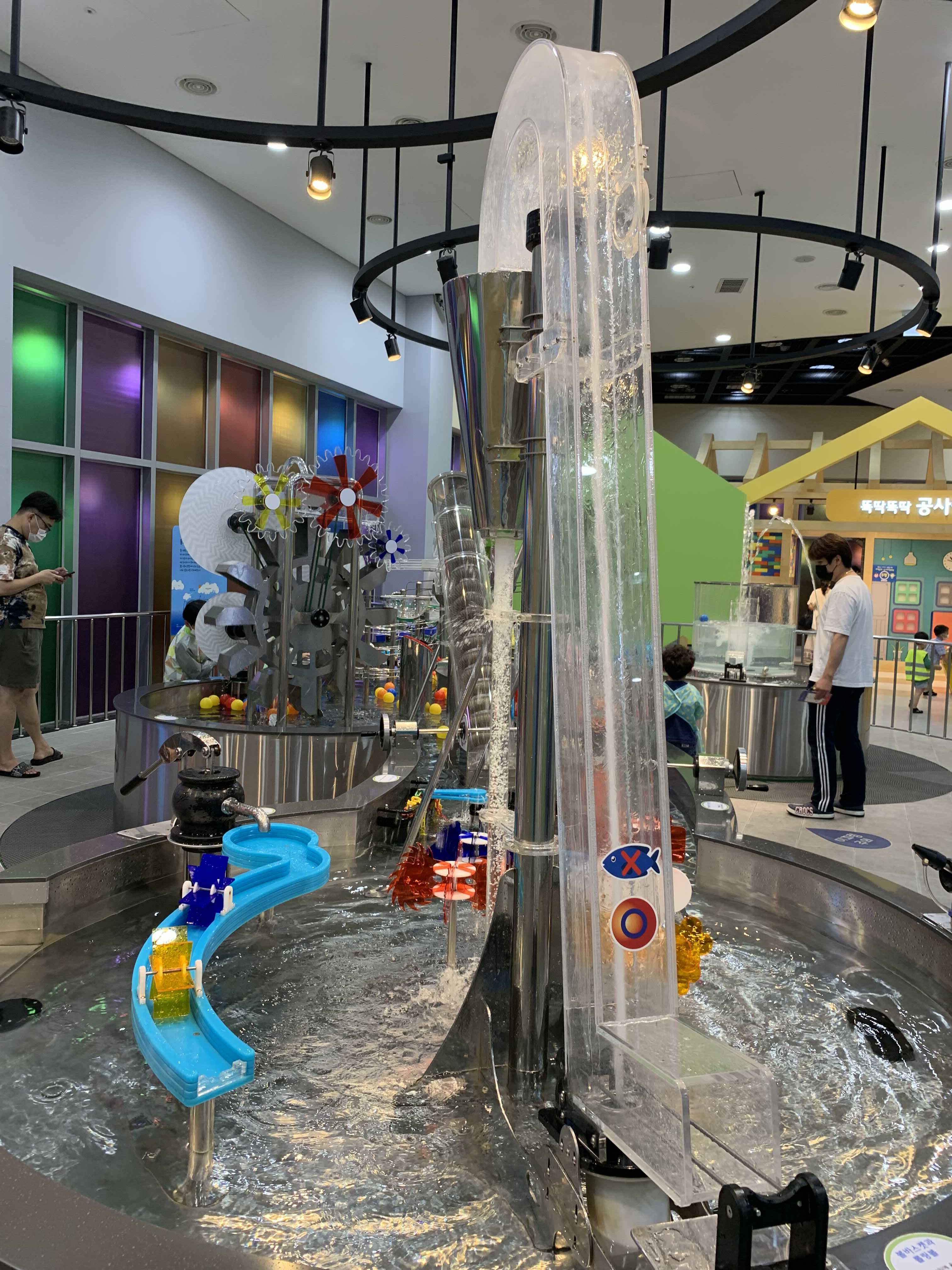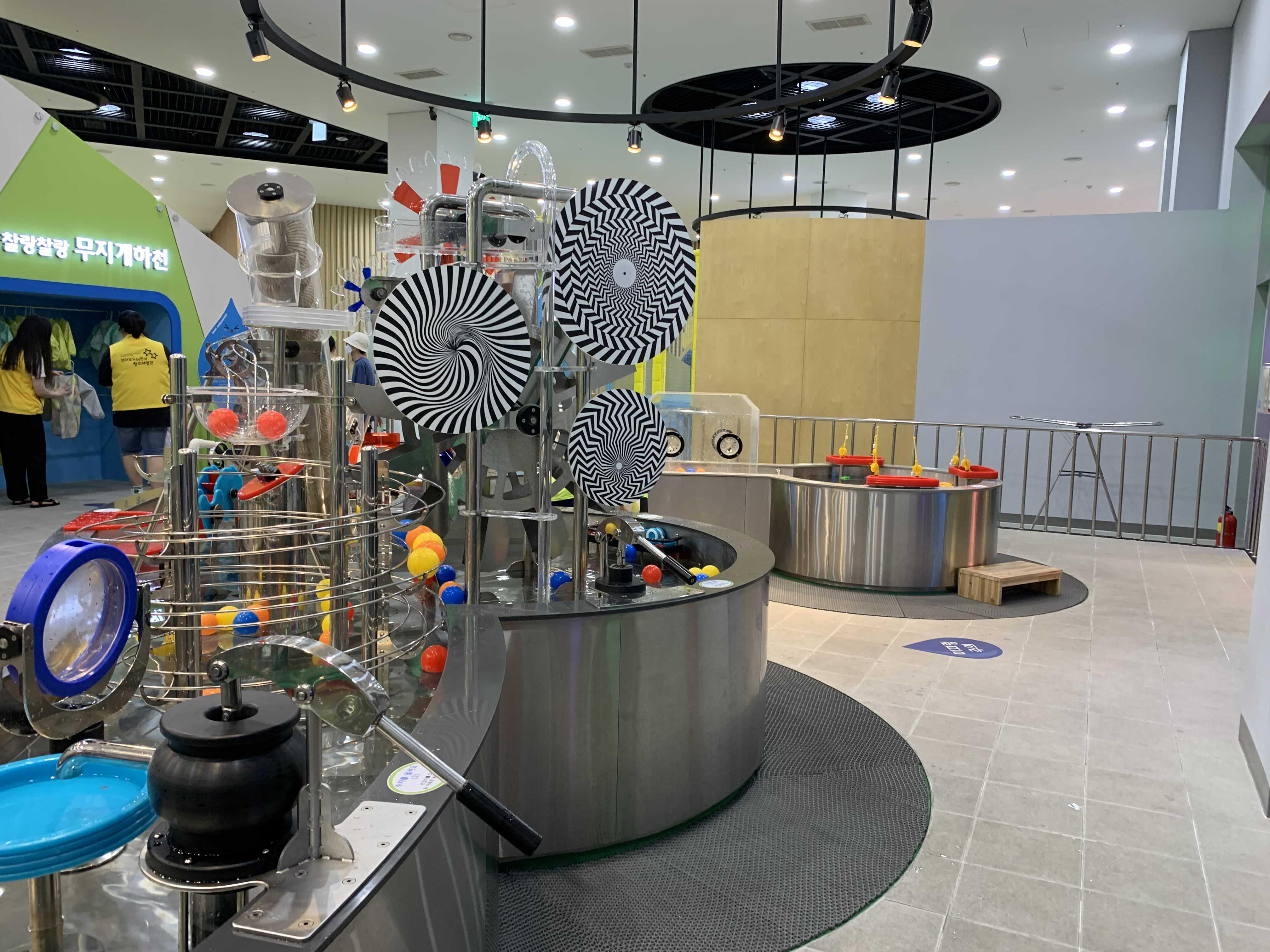 창의체험관 사전예약은 2가지가 있는데 하나는 1층의 VR체험관(우당탕탕 어드벤처), 하나는 2층에 있는 수공간(찰랑찰랑 무지개 하천)입니다. 수공간은 신기한 기기들이 있었는데... 몇몇 체험시설이 수리가 필요하더군요.