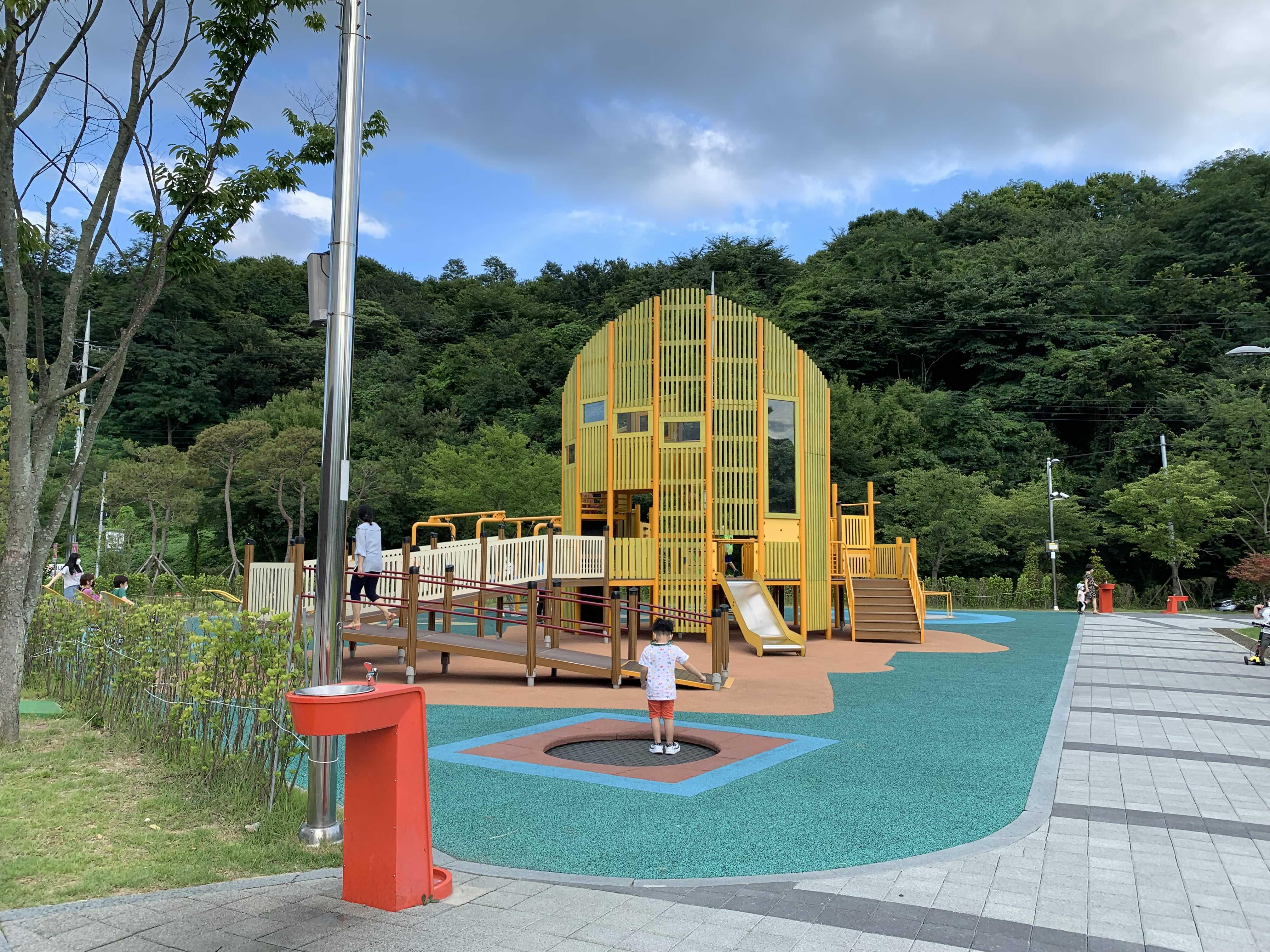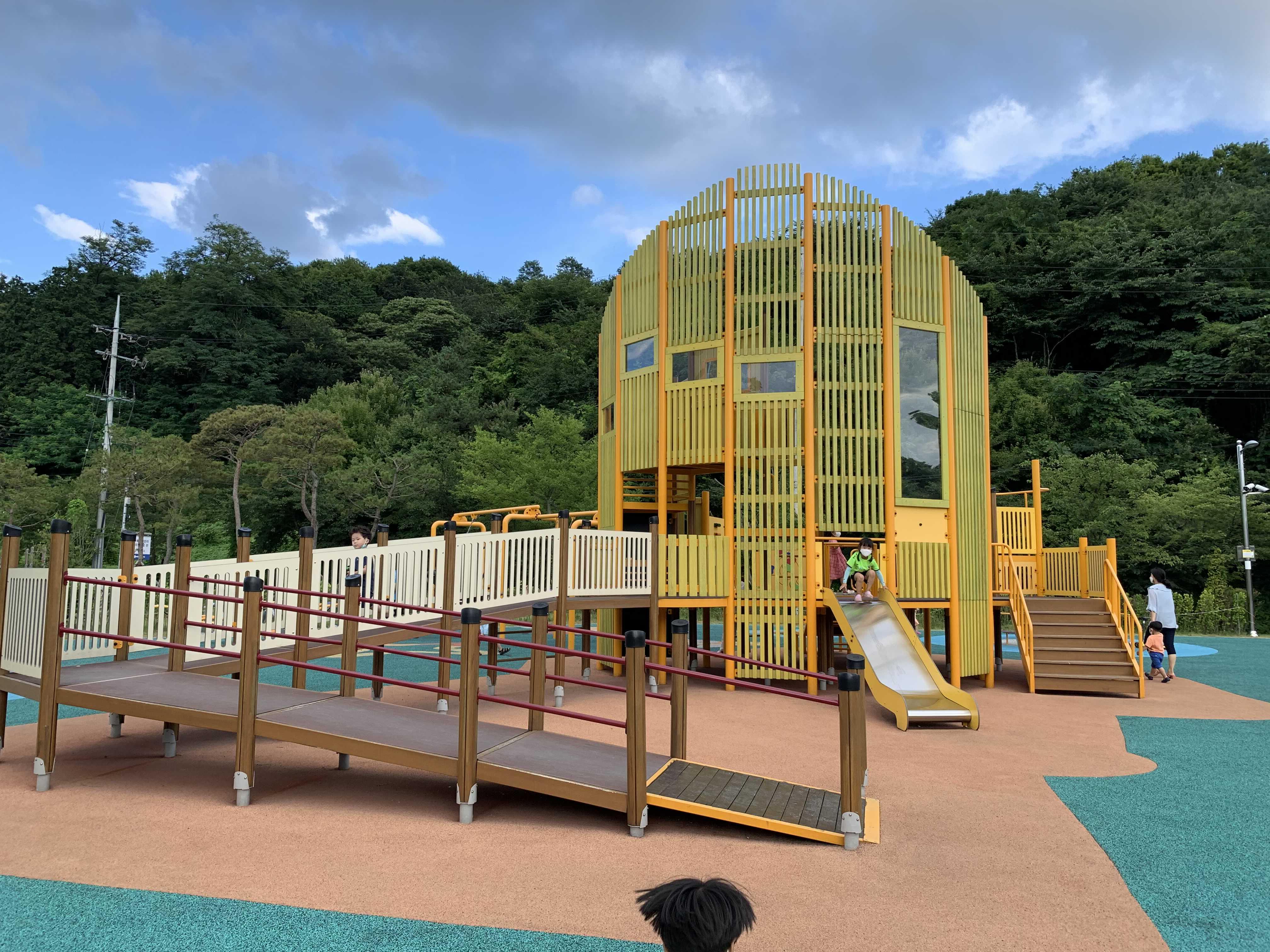 체험을 마치고 선물로 받은 창의체험관 배지^^ 그리고 아이들과 창의체험관 좌측에 위치한 놀이터!!! 실내 체험관보다 외부 놀이터를 더 좋아하는 아이들~~~ 아이들은 역시 밖에서 뛰어노는걸 더 좋아하더군요. 놀이터의 놀이기구가 일반 놀이터와 다르게 구성이 잘 돼 있더군요. 미끄럼틀로 올라가는 공간은 슬로프, 계단, 등반으로 구성하여 올라가는 방식의 다양성을 두었더군요.