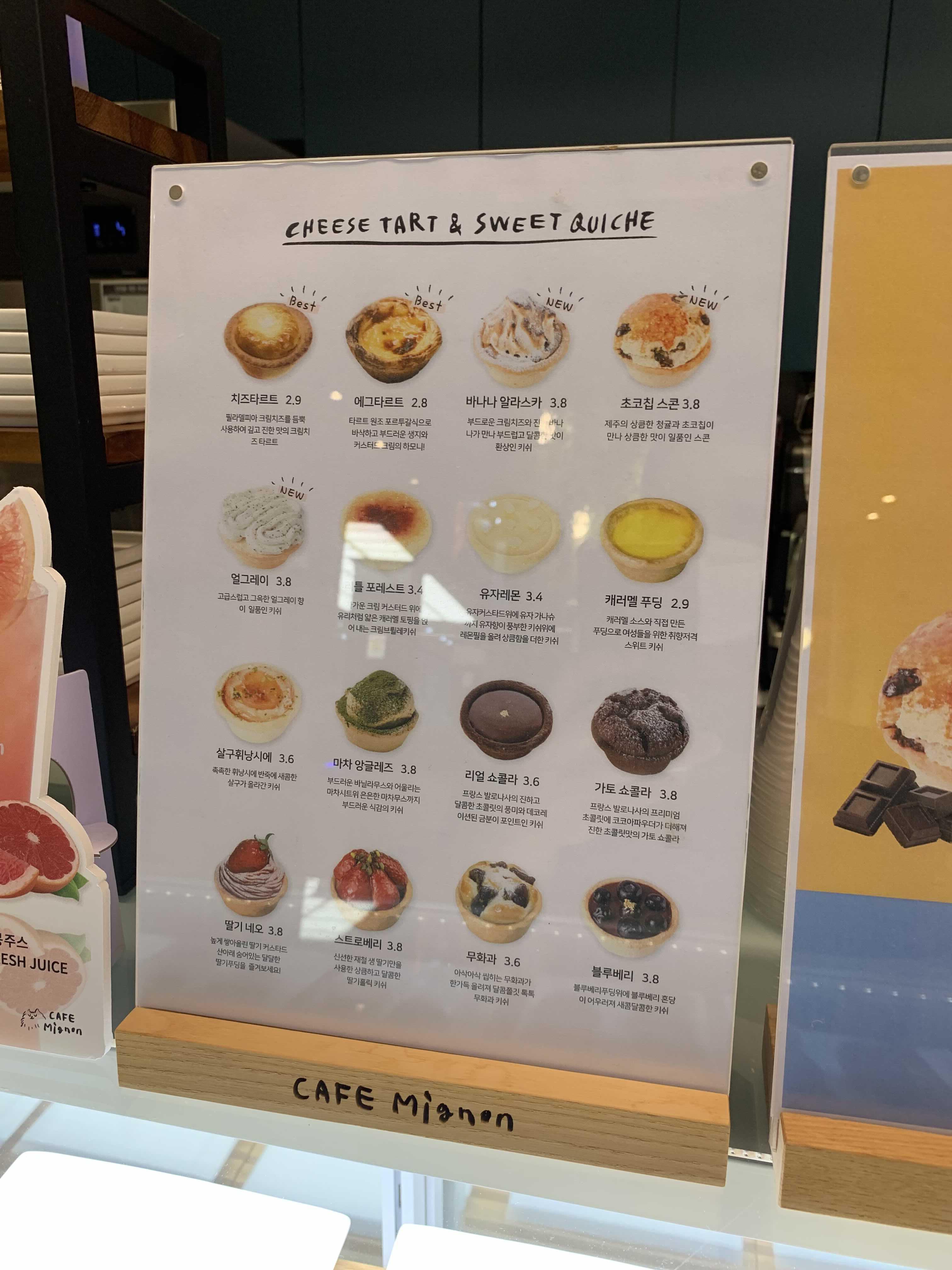 매장에 방문하여 쇼윈도에 전시된 상품을 아이가 주문! 해당 상품은 떨어졌다고 하더군요.ㅠㅠ 그래서 다른 제품으로 주문했습니다. 쿠키와 에그타르트 비슷한 디저트는 "키슈"라는 파이라고 하더군요. 참고로 키슈는 이렇게 작지 않습니다. 케이크 정도의 크기의 쿠키입니다.