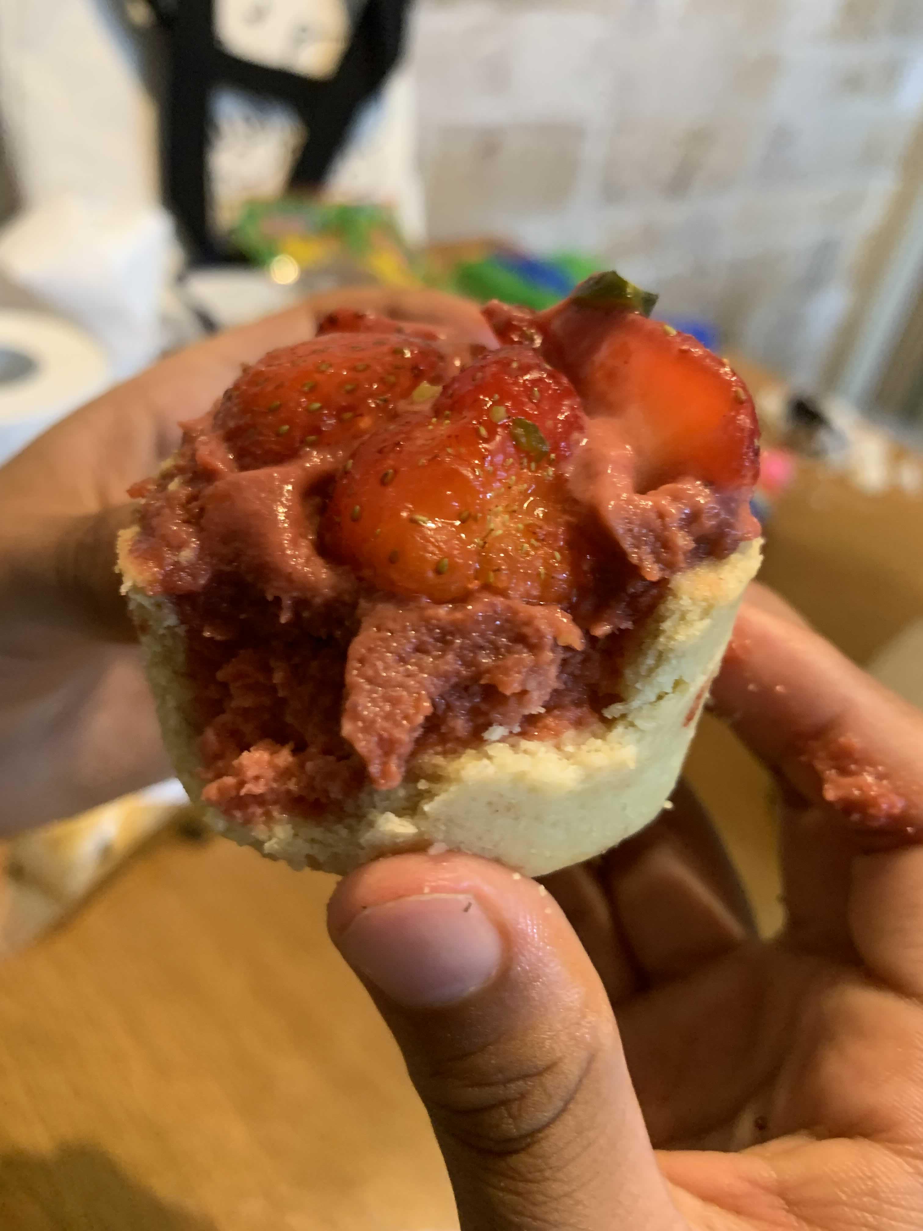 키슈라고 하기에는 너무 작고, 에그타르트 느낌이 강한 디저트 카페입니다. 너무 달달하며 물컹거리는 식감으로 성인 혼자 하나 먹기에는 무리! 2~3명이 하나 먹으며 달달함 느끼기에는 좋은 쿠키 같습니다.
