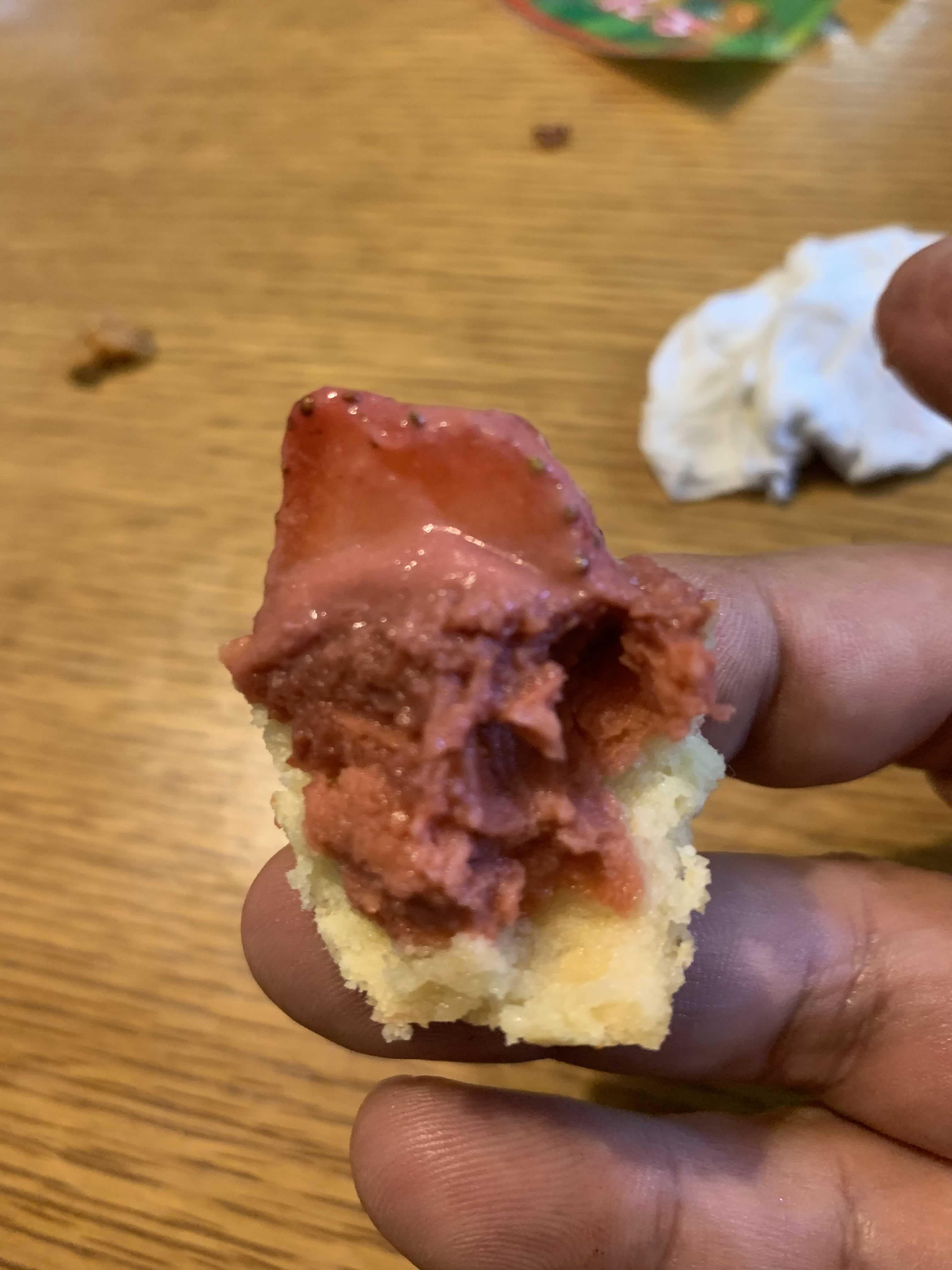 맛은.... 너무 달달한 맛! 아이들이 좋아할 만한... 그렇다고 엄청 좋아하지는 않을 맛이었습니다. 달달하기는 한데, 이 식감이 물컹한 느낌이라 아이들이 반절 먹고, 손을 놓더군요. 엄청 작은 사이즈이지만, 성인 혼자 하나 먹기에도 좀 부담스럽더군요. 하나 가지고 성인 2~3명이 나누어 먹으면 좋겠더군요.