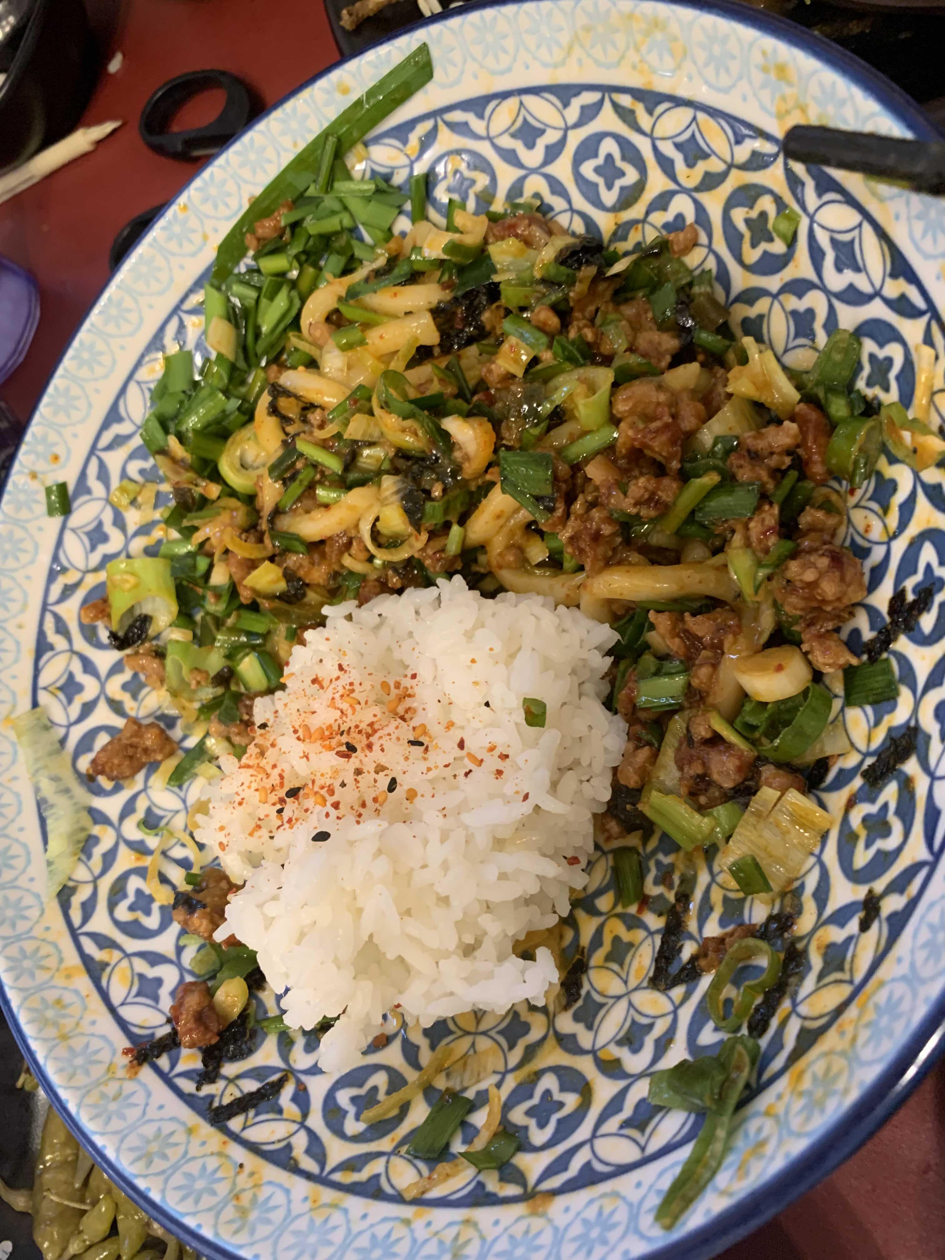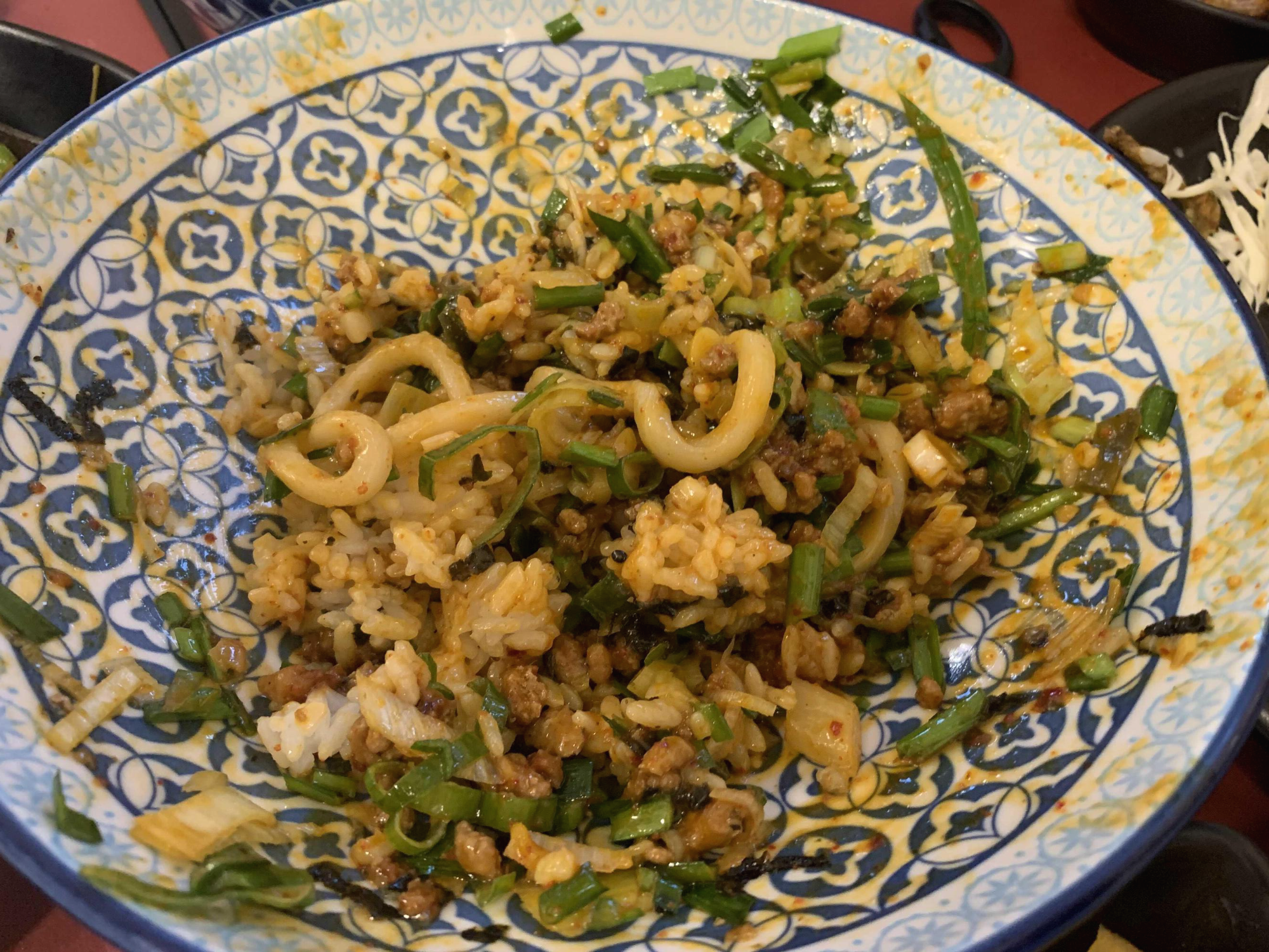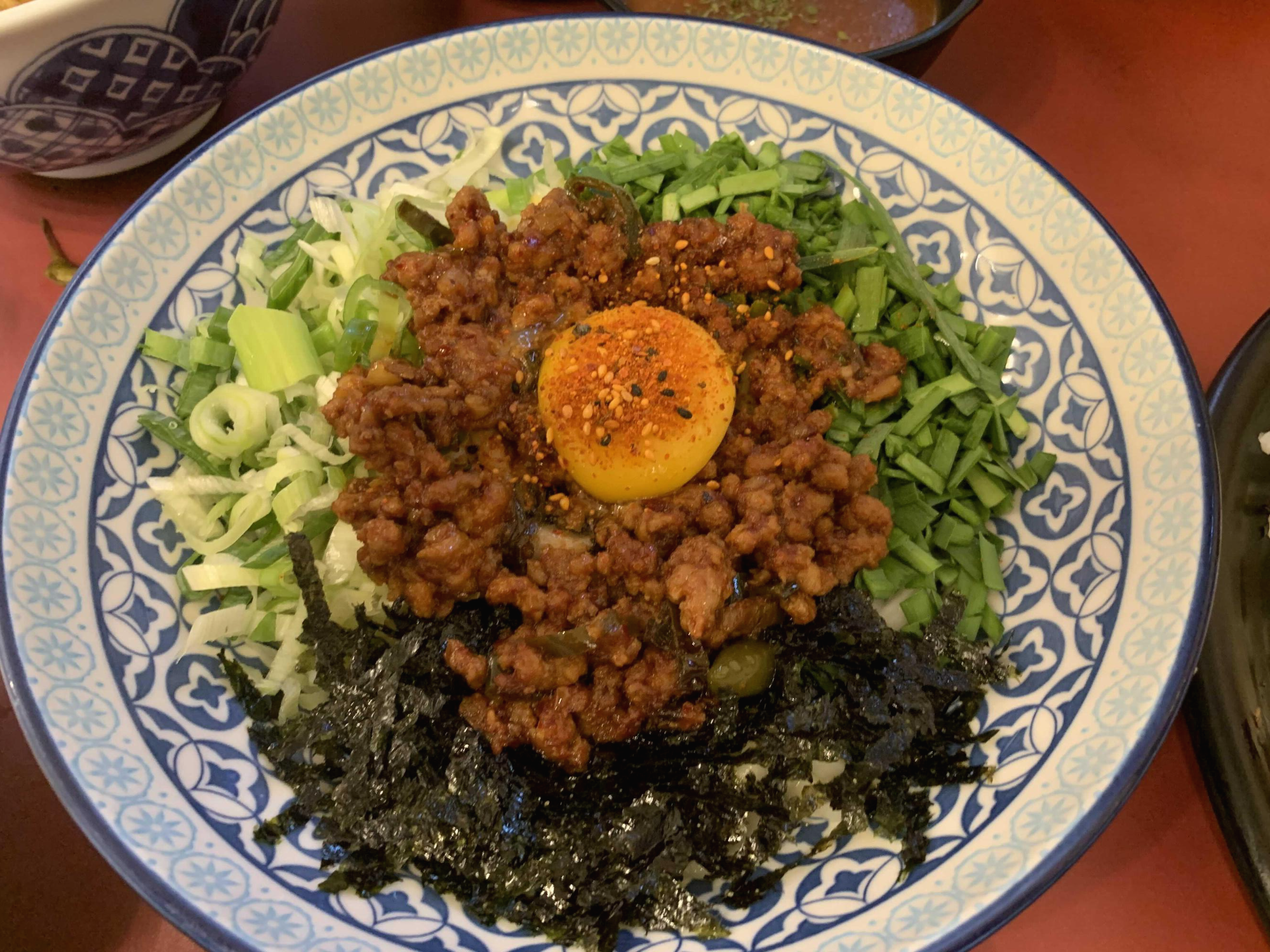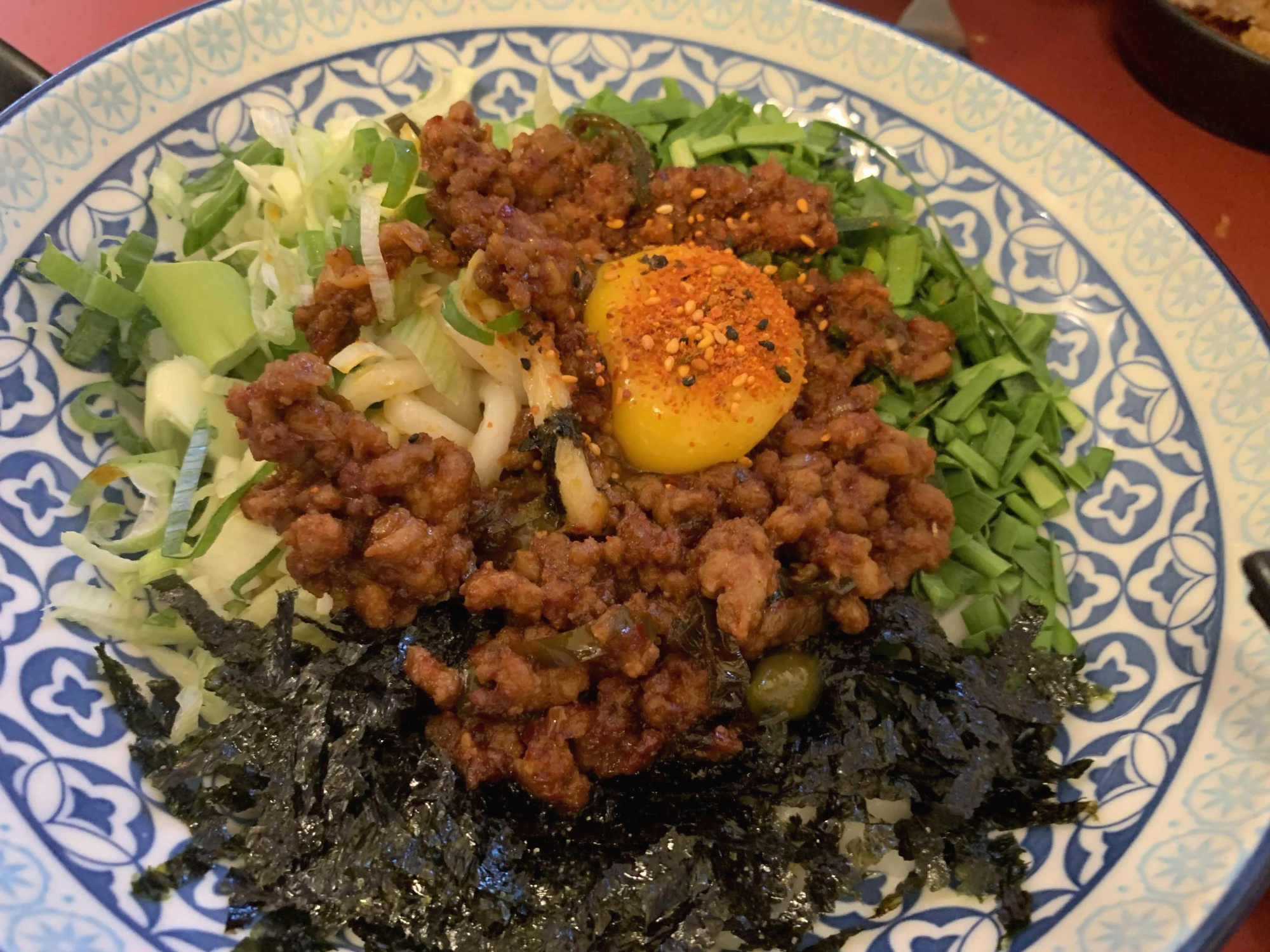 마제 소바!!! 궁금증을 많았던 마제 소바는 돼지고기 양념소스와 가락국수 면을 비벼먹는 스타일의 음식이더군요. 달걀노른자가 올려져 비린맛이 느껴질 거라 먹기 전 생각했었는데.... 매콤한 돼지고기 소스와 먹으니 담백함이 극에 달하더군요. 마제 소바의 아쉬운 점이 있다면 생부츠와 생파!!! 뜨거운 음식에 생부츠 생파가 올려져 있다면 숨이 죽고 목 넘김이 좋았을 듯싶었는데.... 그 생파! 생부츠는 목 넘김에서 약간 거북스럽게 느껴지더군요. 그렇다고 음식 먹기에는 심할 정도는 아니고요.ㅎㅎ