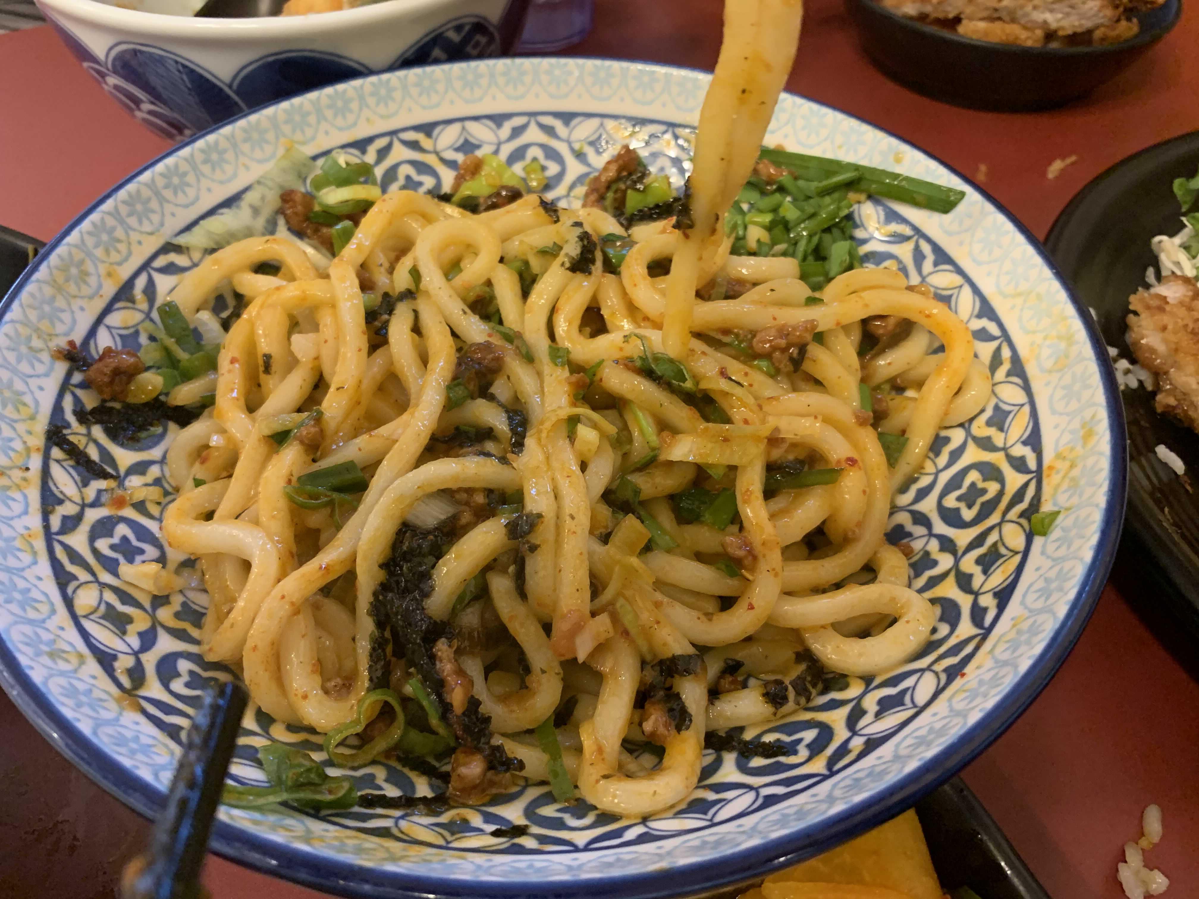 메뉴판 없이 포스기로 메뉴를 보니.... 이 식당의 주메뉴가 무엇인지 모르겠더군요. 그래서, 점원에게 물어보니 돈가스, 텐동, 마제 소바 3가지 메뉴가 잘 나간다고 하시더군요. 그래서 3가지 모두 주문했습니다. 돈가스와 텐동을 알겠는데.... 마제 소바? 마제는 일본어로 "마제루(混ぜる) - 썩다" 뜻으로 뭘 썩어 먹는 음식인가 보더군요.