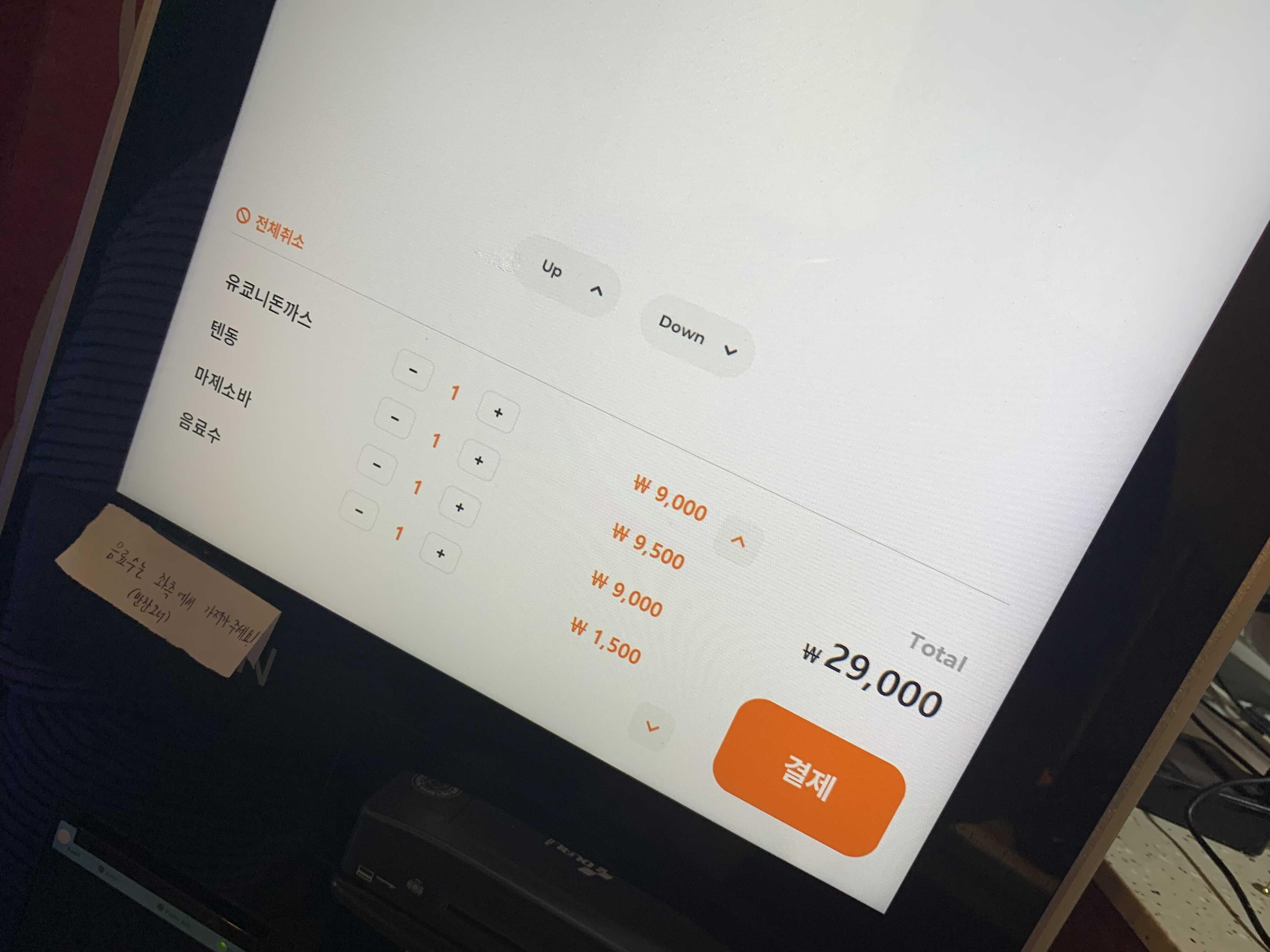 메뉴판을 이야기하니 포스기에서 주문하면 된다고 하시네요.^^ 포스기가 안쪽에 있어!!! 첫 방문한 손님에게는 어떻게 주문하는지 물어보게 되고, 사장님 입장에서는 첫 방문인지 재방인지.... 주문 방법만 관찰해도 알 수 있겠더군요. 포스기가 있다 하여도 식당 내부에 액자로 메뉴판이나 메뉴판 책자가 있었으면 좋겠더군요.