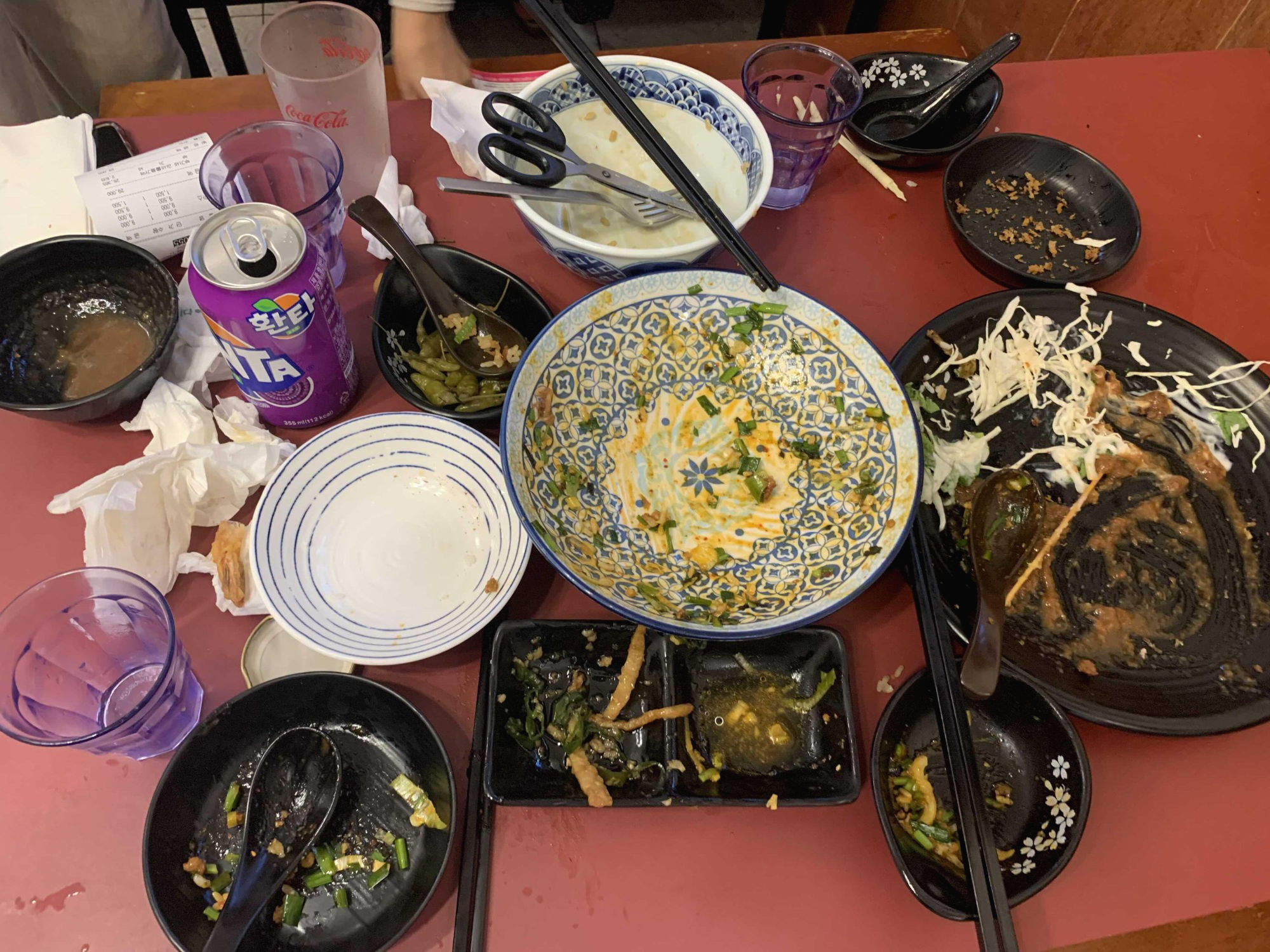 마제 소바의 가락국수 면을 다 먹고 함께 나온 공깃밥을 비벼 먹으니!!! 한 끼 식사가 완성되더군요. 가락국수 면만 있었다면.... 가격 비싸다고 생각했겠지만, 밥이 함께 나와 비벼 먹으니... 가성비 값 음식이 되더군요. 마제 소바 면이 굵은 가락국수 면이 아닌 일반 얇은 면이면 더 좋겠다는 생각이 들더군요. 큰아 아이가 가락국수 면을 워낙에 좋아해서.... 패스!!