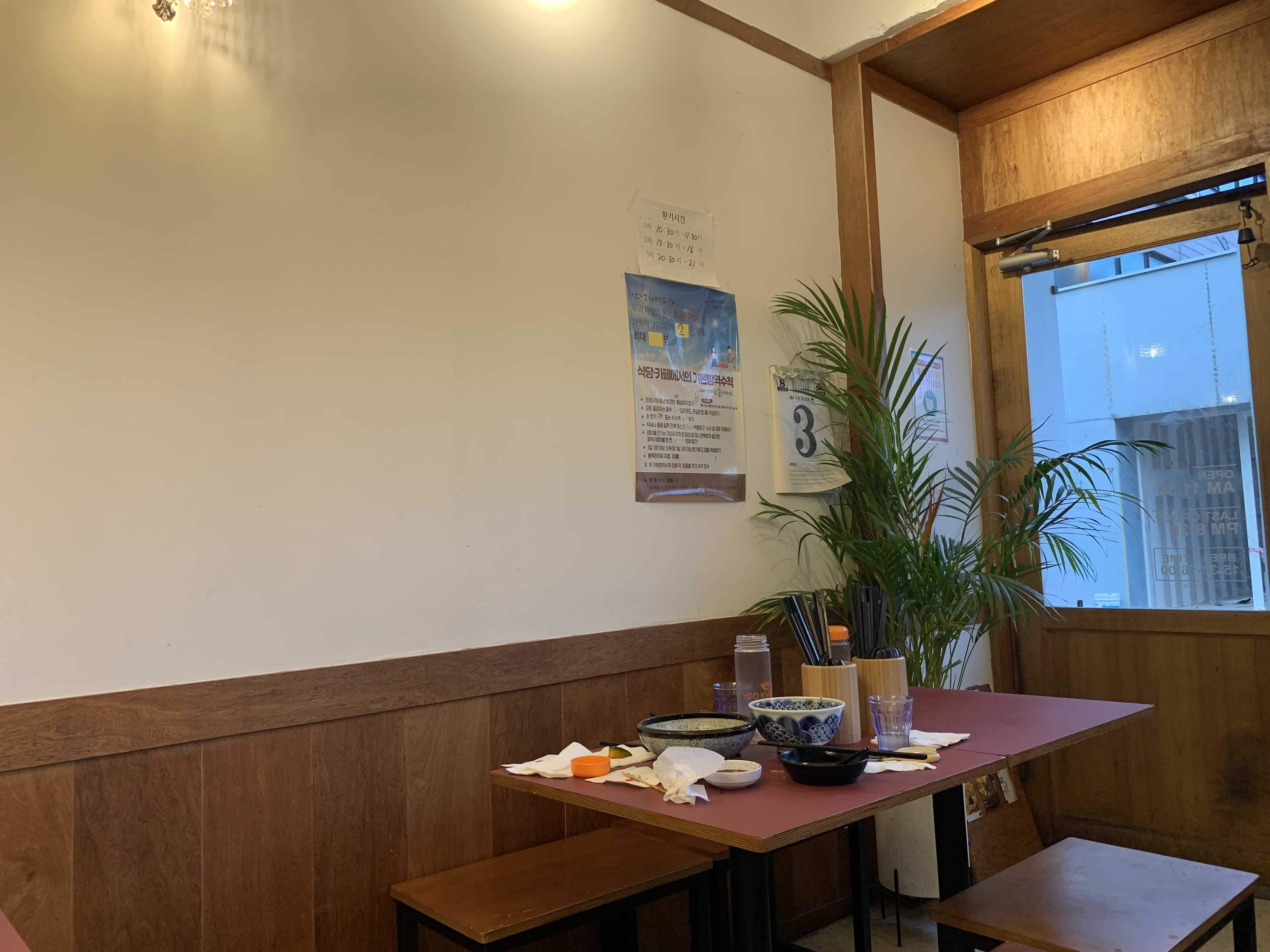 식당 내부는 그리 넓지가 않은 식당입니다. 테이블은 8개 정도 준비되어 있고 식당에 방문했을 때 혼밥을 여러 명이 드시더군요. 혼밥 식당으로도 유명하나 봅니다. 테이블에 앉아 계속 기다리는데도.... 메뉴판을 안 주시더군요.