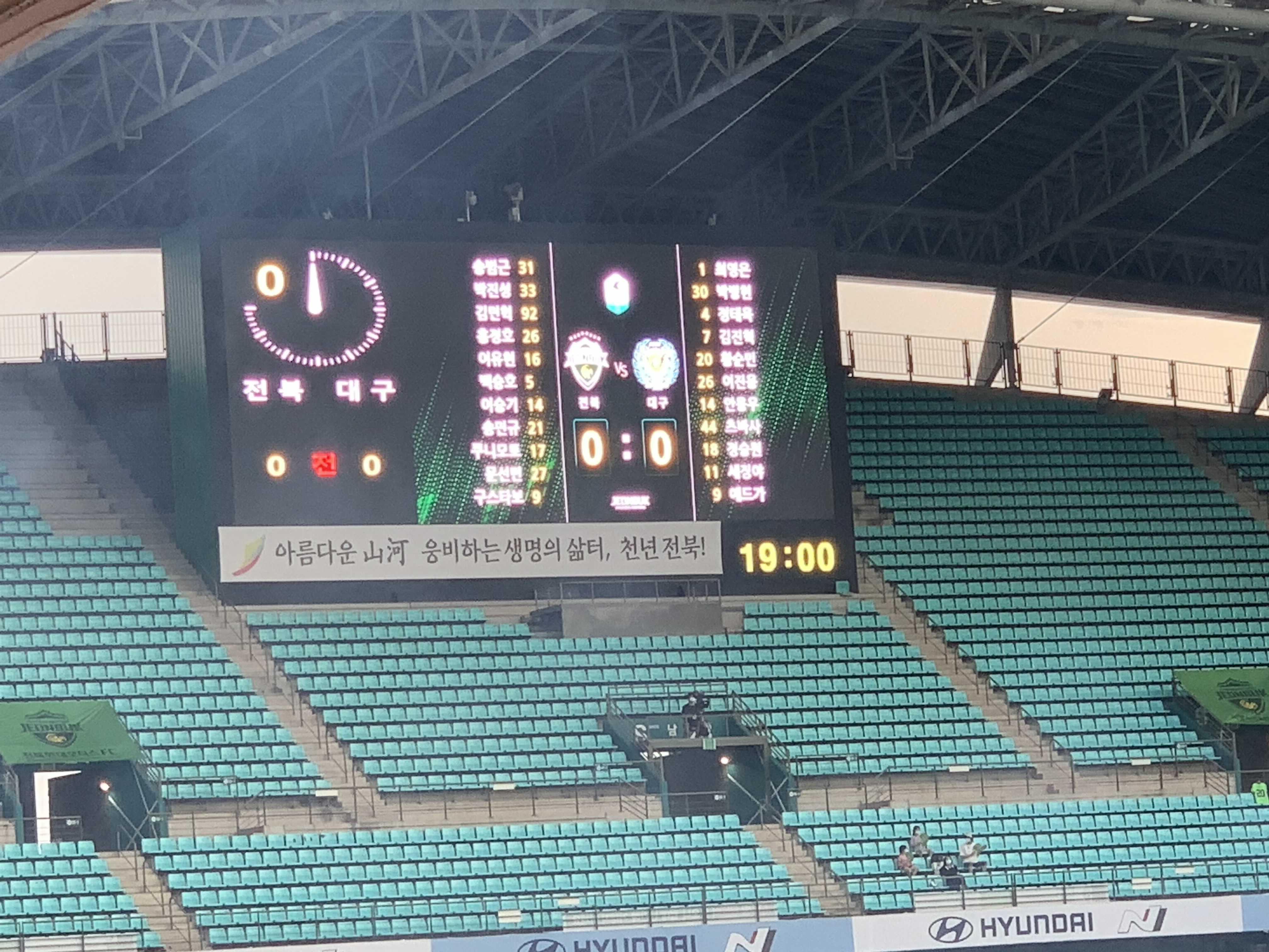전반전 총평! 전북 현대의 공격축구로 즐겁게 경기를 관람할 수 있었습니다. 대구는 역시 세징야!!! 그리고 츠바사 선수도 눈에 잘 들어오더군요. 대구는 선수도 선수지만..... 조직적으로 축구를 한다? 축구는 잘 모르지만.... 암튼 잘함, 실점은 했지만 경기력은 좋았네요.