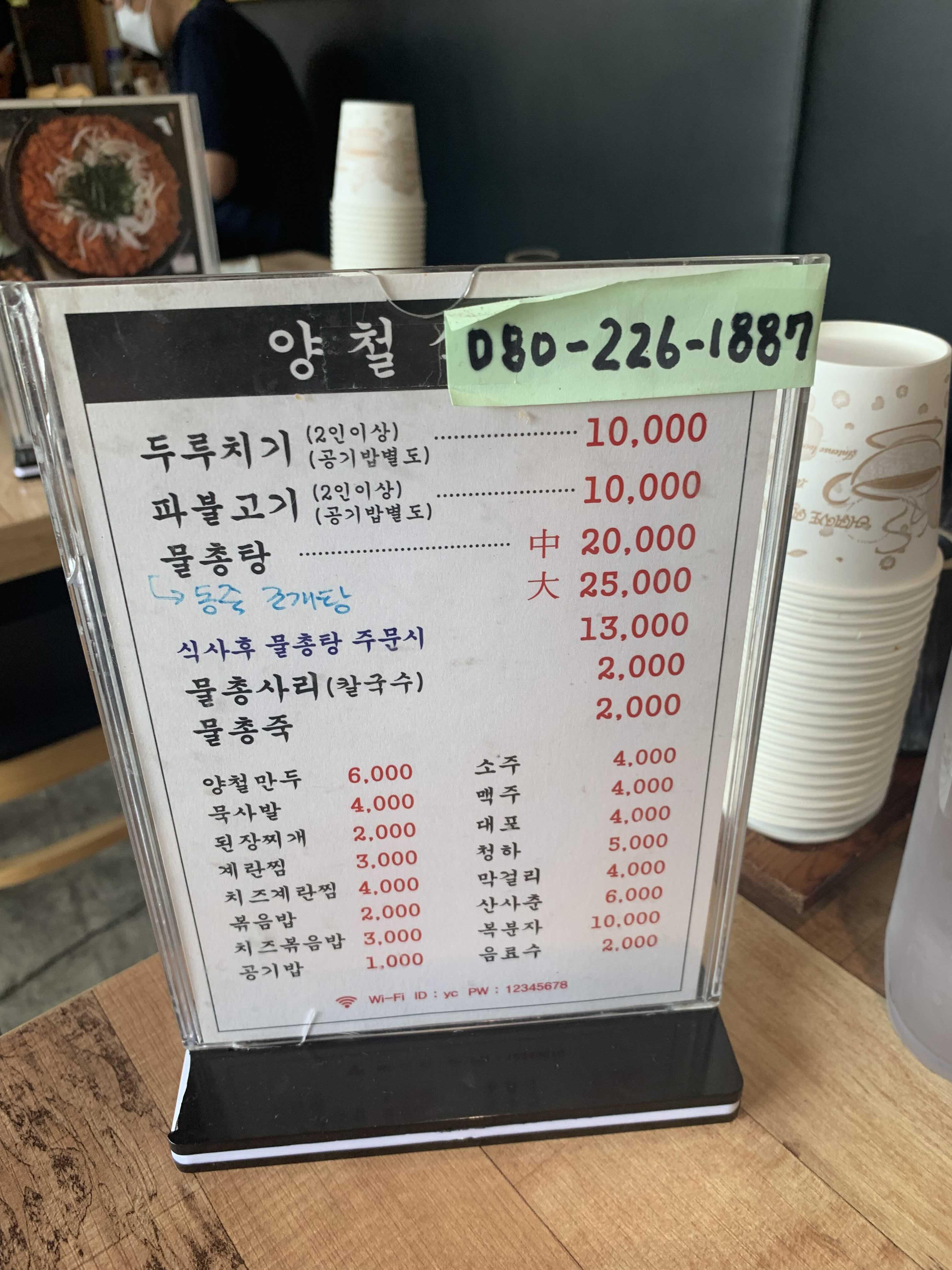 자리에 앉아 메뉴를 주문하지도 않았는데, 바로 기본 세팅을 해주시더군요. 주메뉴는 두루치기, 파불고기, 물총탕?(조개탕) 3가지이며, 주문하며 식당 대표 메뉴/잘 나가는 메뉴를 물어보니 두루치기, 파불고기가 대표며 비슷하게 나간다고 하시더군요. 다른 테이블은 보니 두루치기를 많이 드셔서, 두루치기를 주문했습니다.