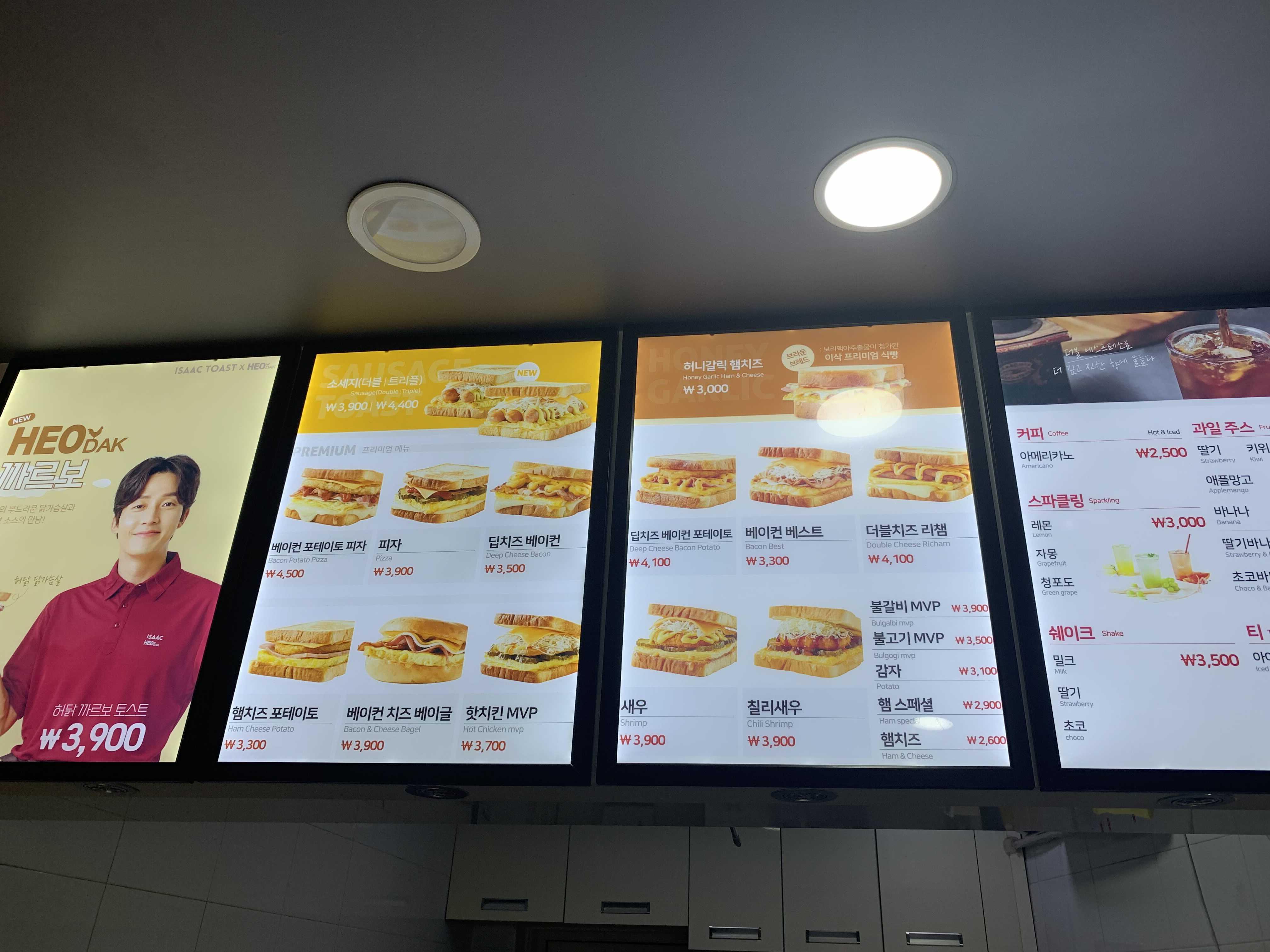 매장에 방문하여 햄치즈 토스트를 찾아보는데..... 안보이더군요. 잘 안 팔리는 메뉴라서 그런지? 새로운 메뉴를 매장에서 전면에 내세우고 싶어서 그런지는 모르겠네요. ㅎㅎ