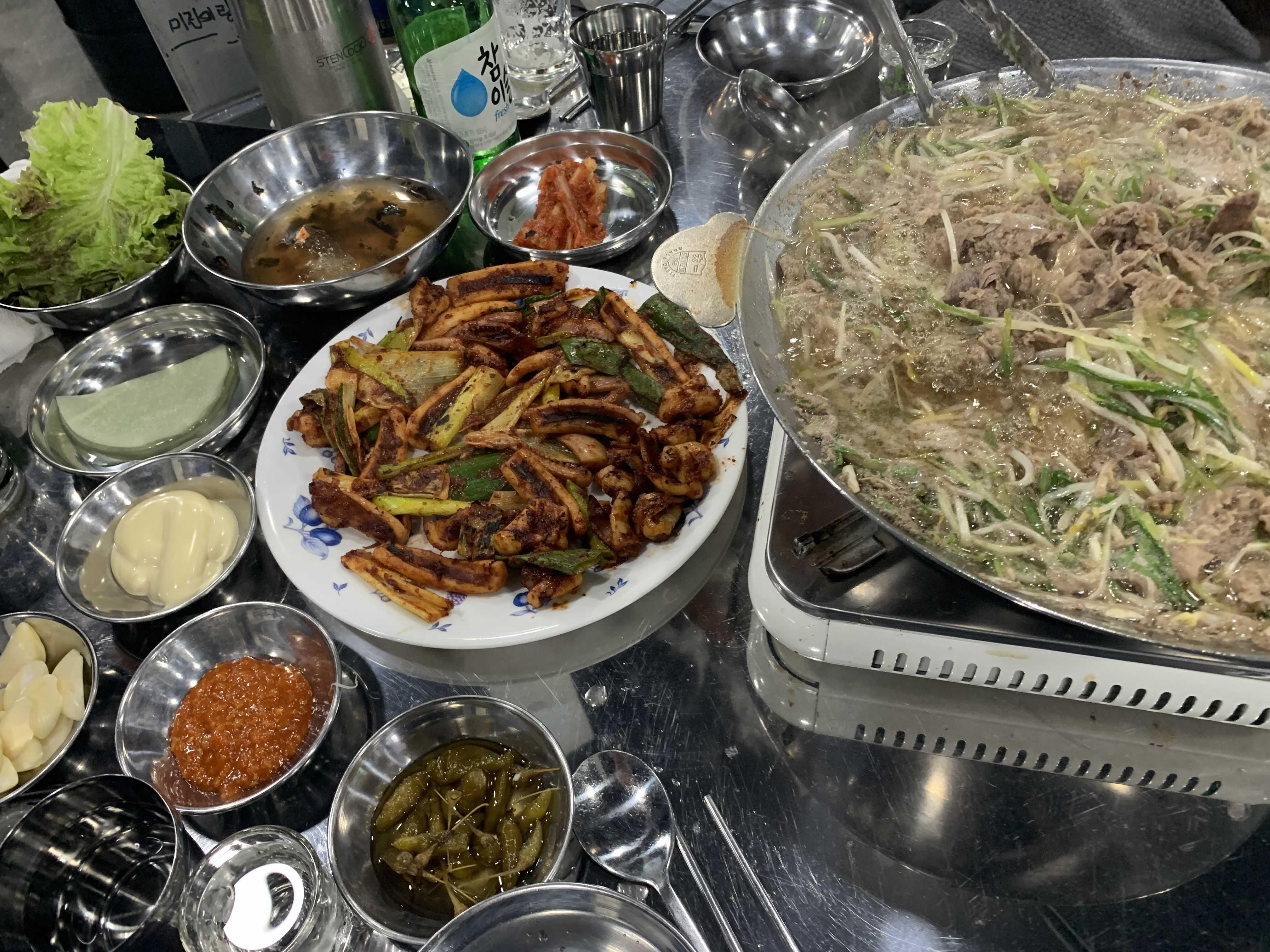 불고기를 어느 정도 다 먹을 때쯤 오징어 불고기를 넣어서 육수 맛을 보니 기존에 달달했던 육수는 불향이 느껴지는 매콤한 육수로 변하더군요.