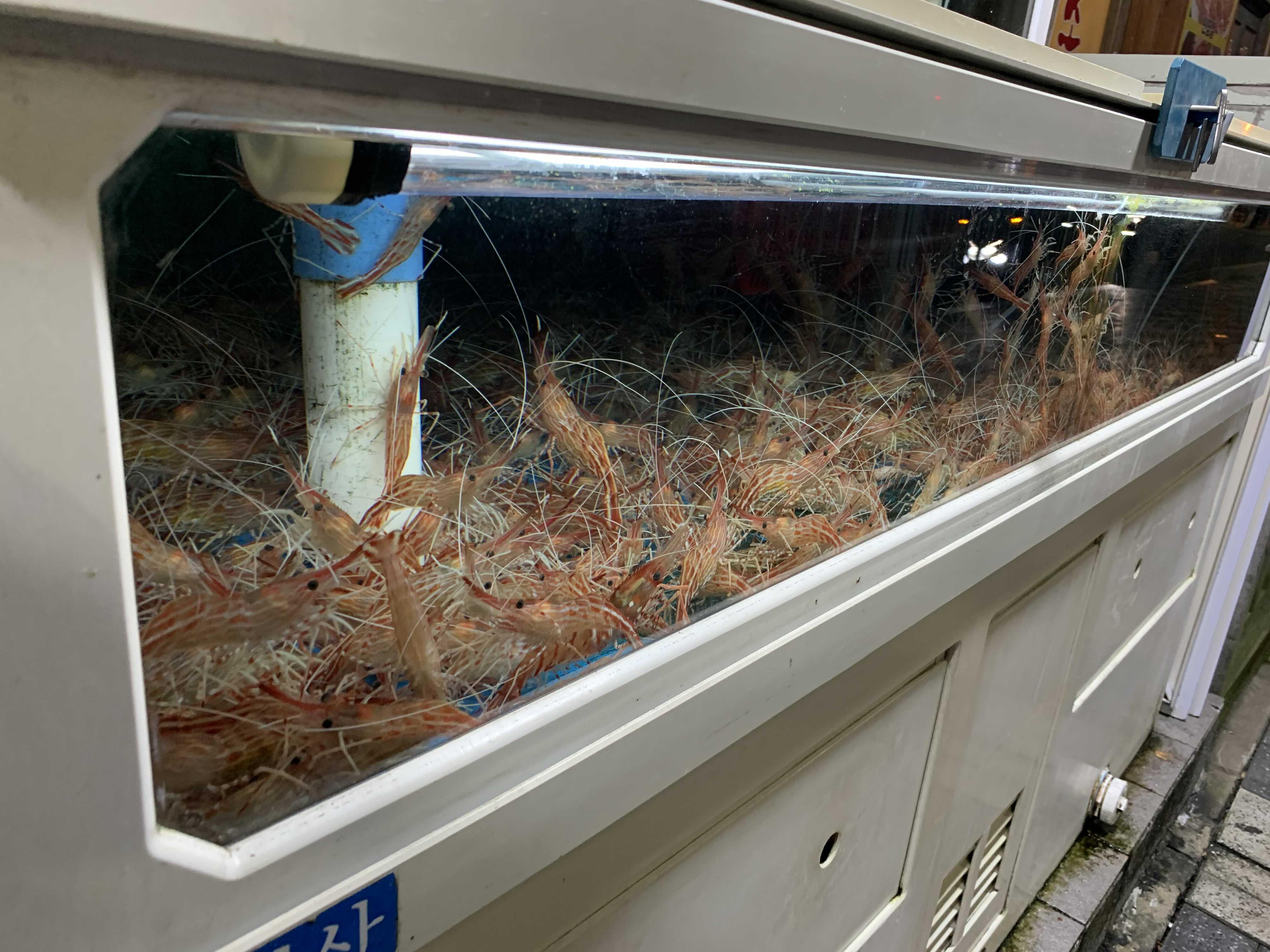매장 앞 수족관이 보이는데..... 싱싱한 새우가 다잡아 봐라? 이런 느낌을 주고 있더군요. 새우가 참 싱싱해 보며, 먹기도 전에 군침이 돌았습니다. 이미 저녁을 맛있게 먹은 상태인데..... 후식으로 먹기에는 너무 과한 후식이 되었네요.