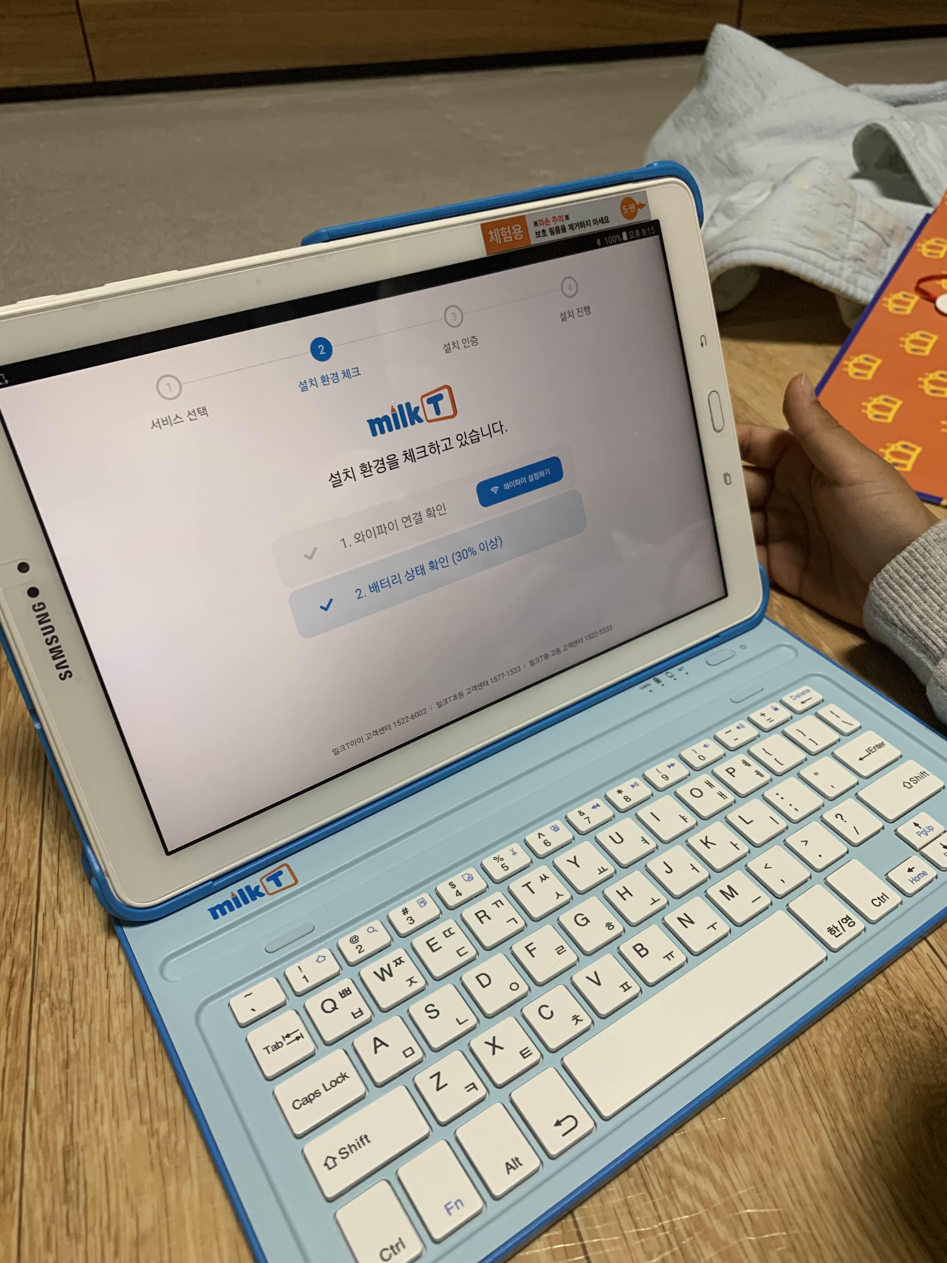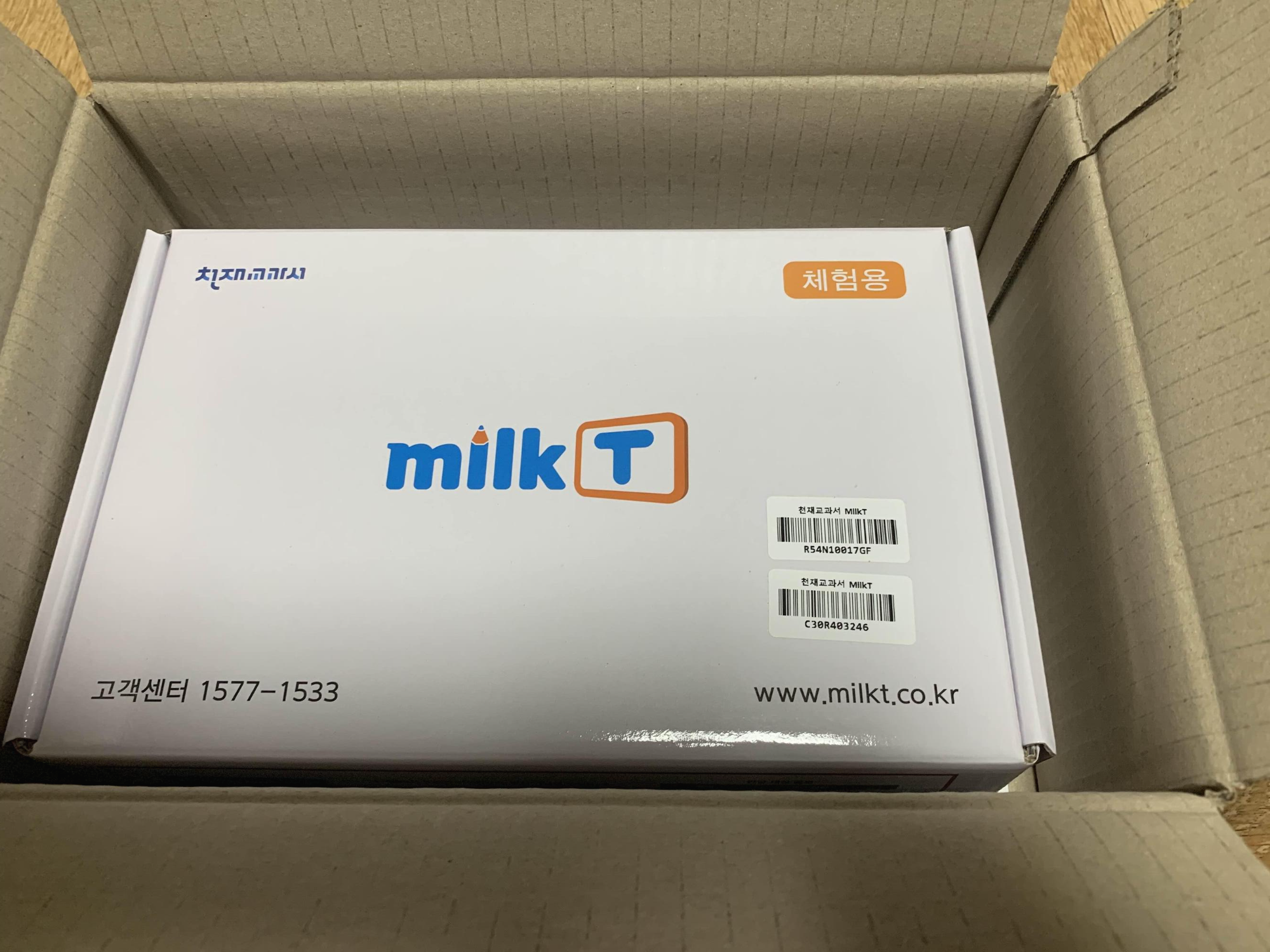 이번 초등학교 입학을 준비하는 아이 학습용? 겨울방학 놀이용으로 신청하게 된 밀크 T입니다. 10일 사용하는 체험판으로 신청하였고, 어떠한 콘텐츠로 구성되고 혼자서도 학습이 가능한지 살펴보려고 신청하게 되었네요.