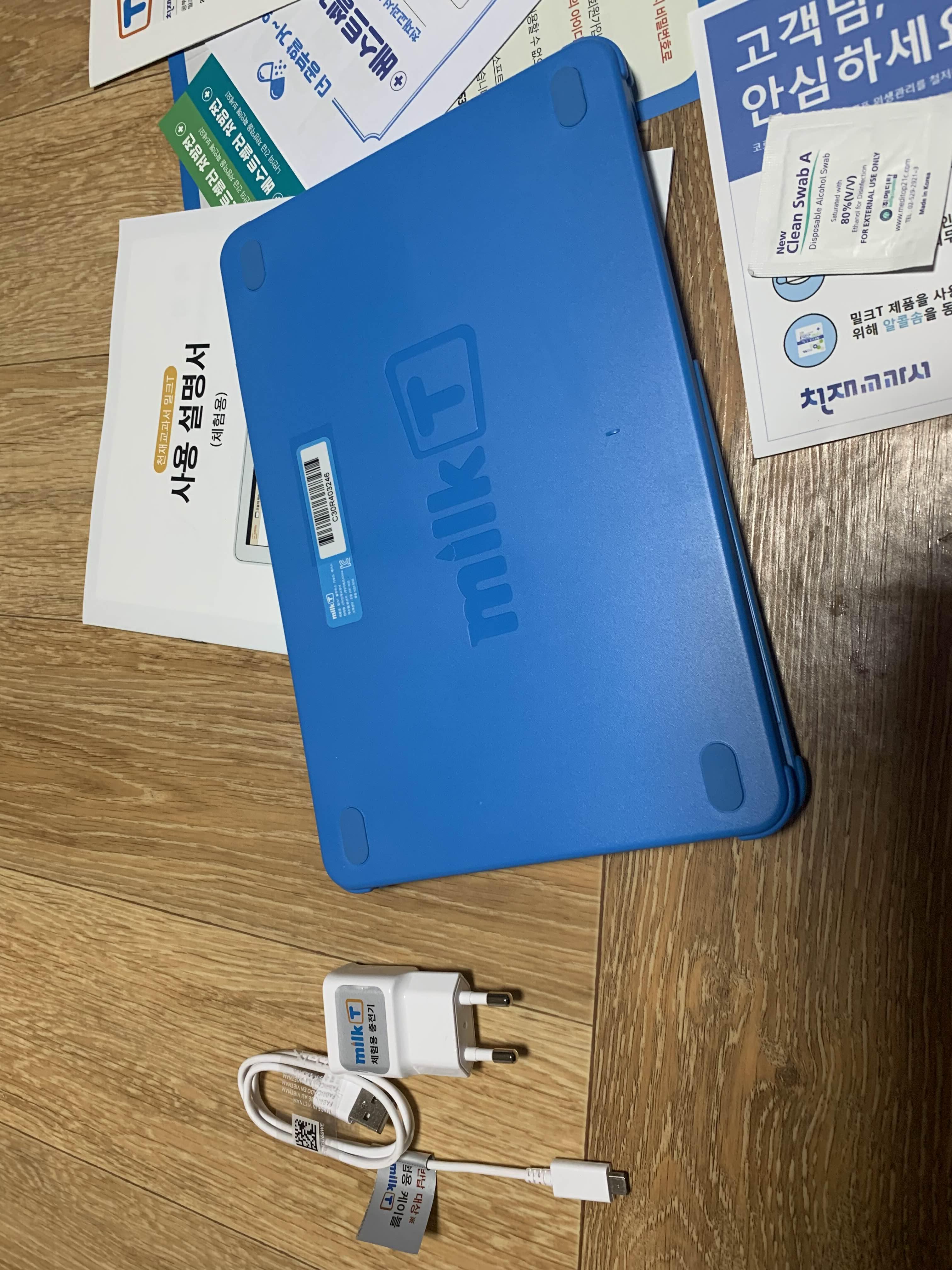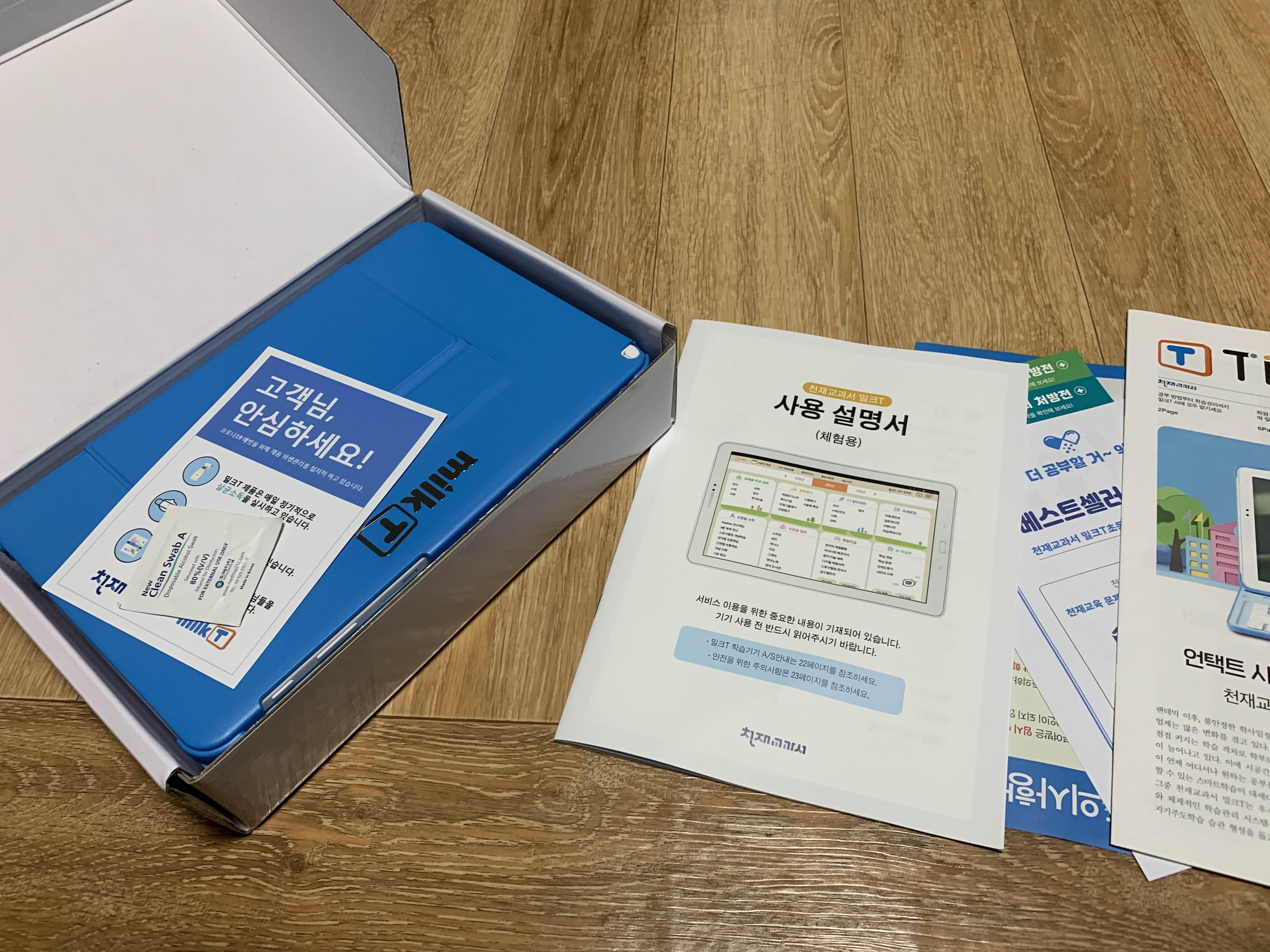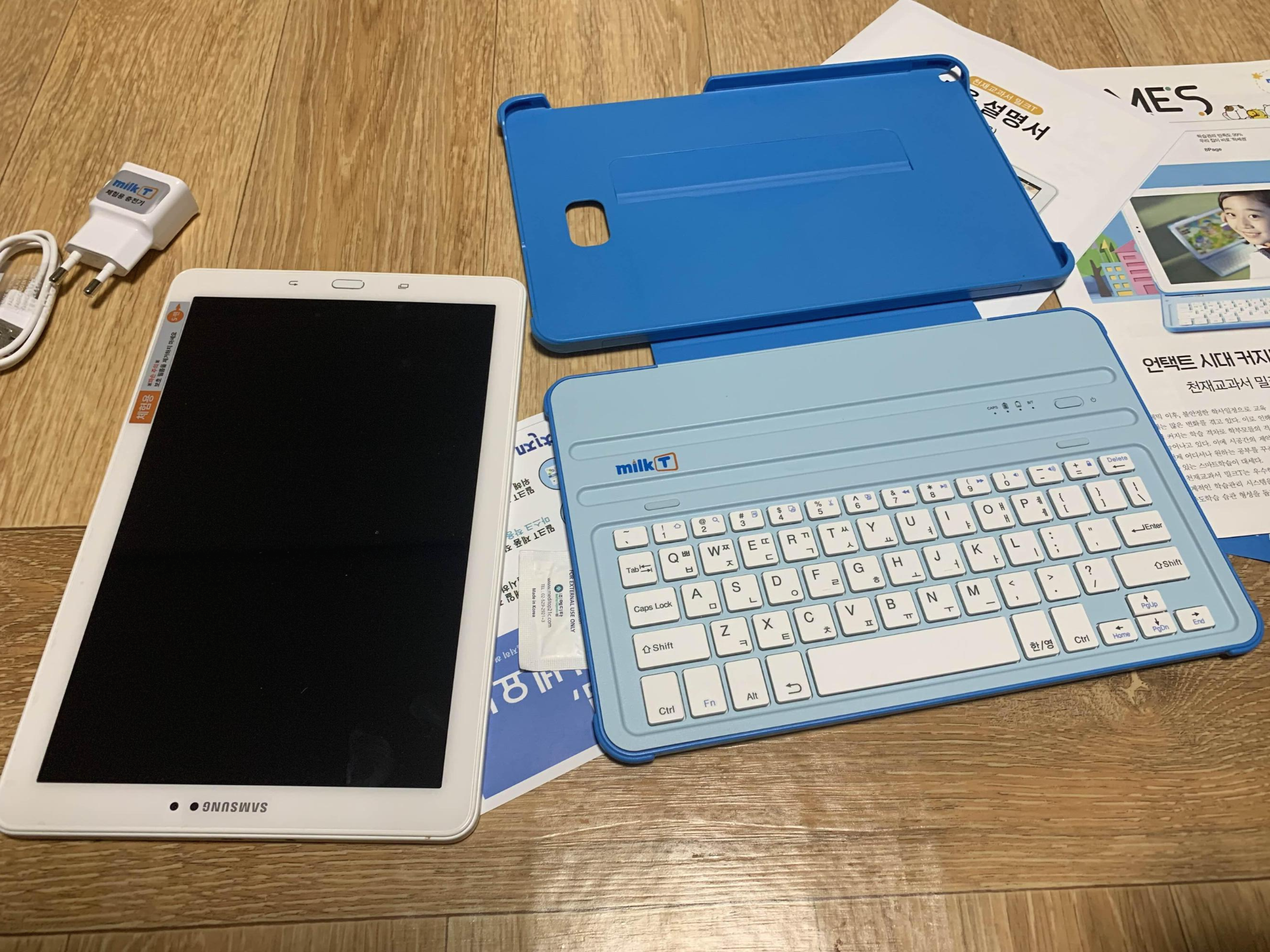 밀크 T 체험 물품을 오픈하여 열어보니... 교제가 아닌, 갤럭시탭이 들어있더군요. 케이스를 열어보니 삼성 갤럭시탭 SM-T580 모델로 2016년도 제품이더군요. 학습용 콘텐츠를 운영하기에는 충분한 사양이긴 하나.... 학습용으로 사용하기에 펜 기능이 불편하더군요.