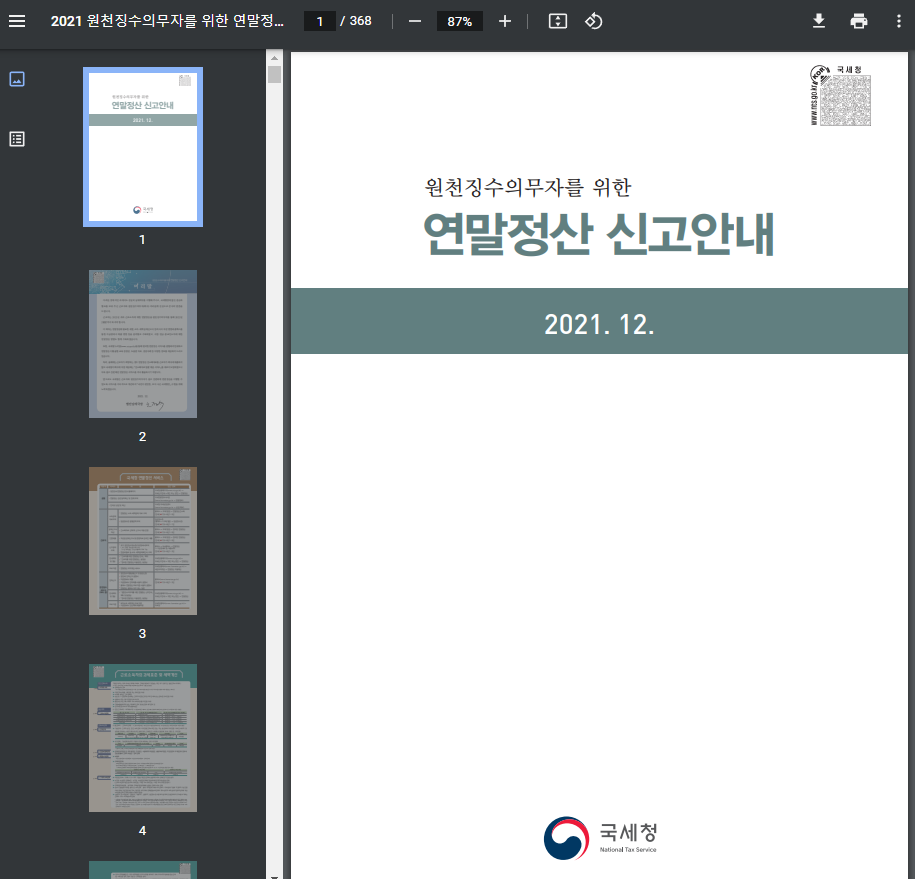 매년 국세청은 연말정산 신고안내 책자를 발간합니다.