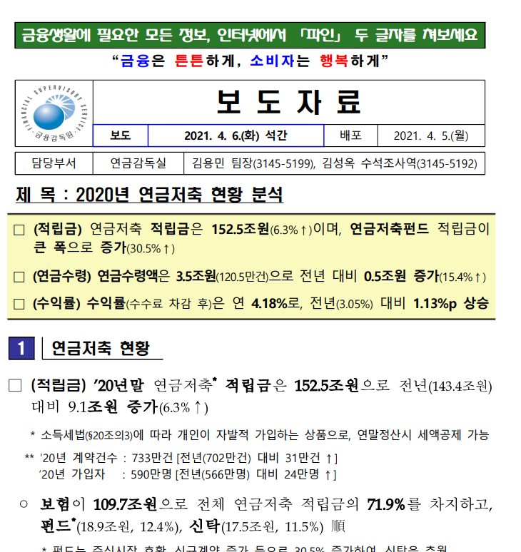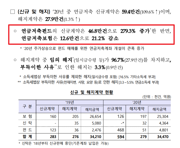 2020년 연금저축 현황 분석 상세보기