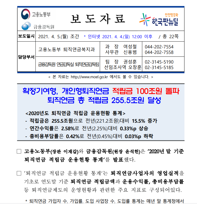 퇴직연금 현황자료는 금융감독원의 "토직 연금 적림금 운용현황 통계" 자료를 참고하세요.