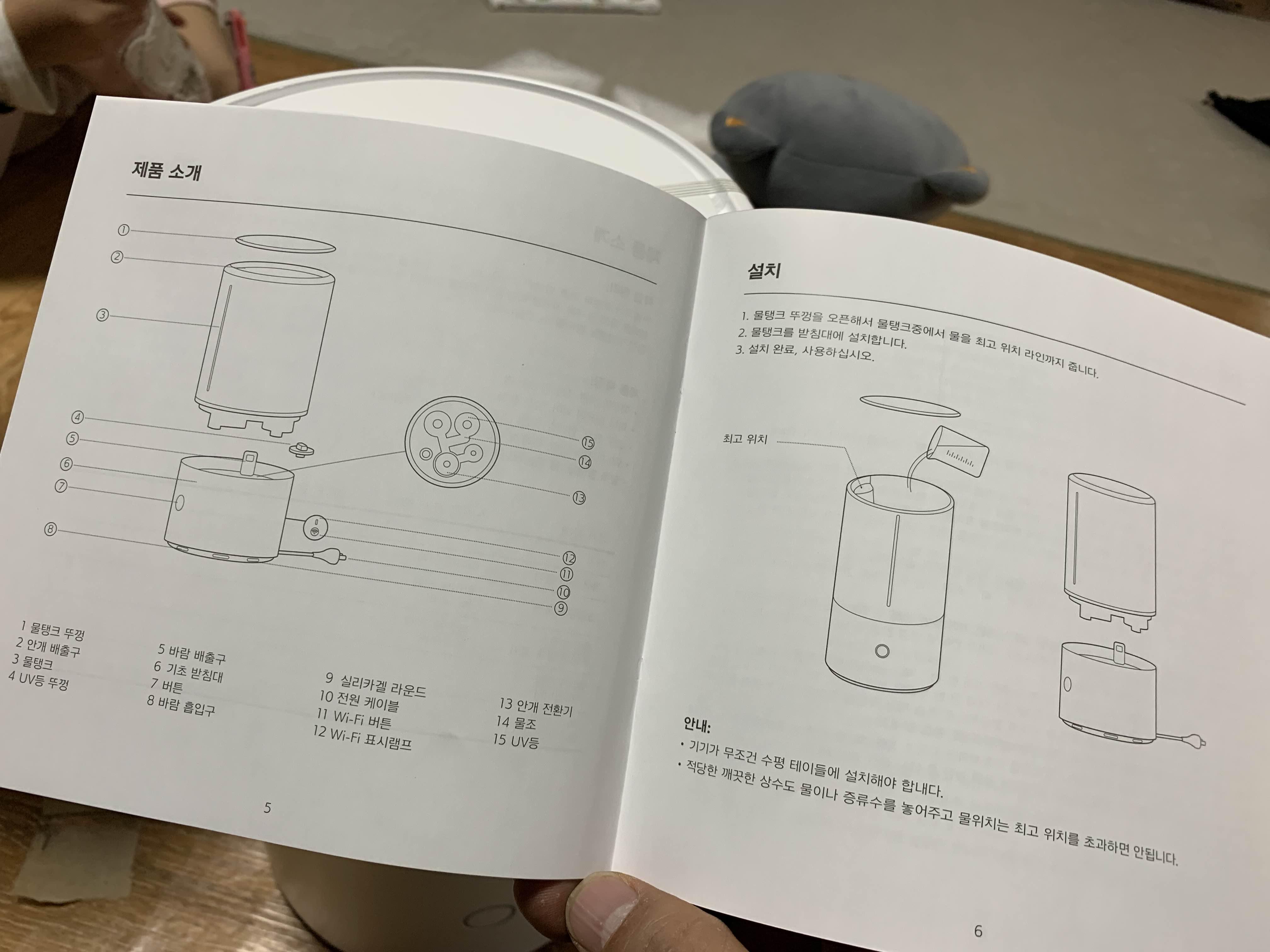 사용설명서가 한글로 되어 있지만, 사용설명서 없어도 될 정도로 전원 연결하고 물 부어주고 전원 버튼 눌러주면 끝!!! 아주 간단히 사용 가능합니다.