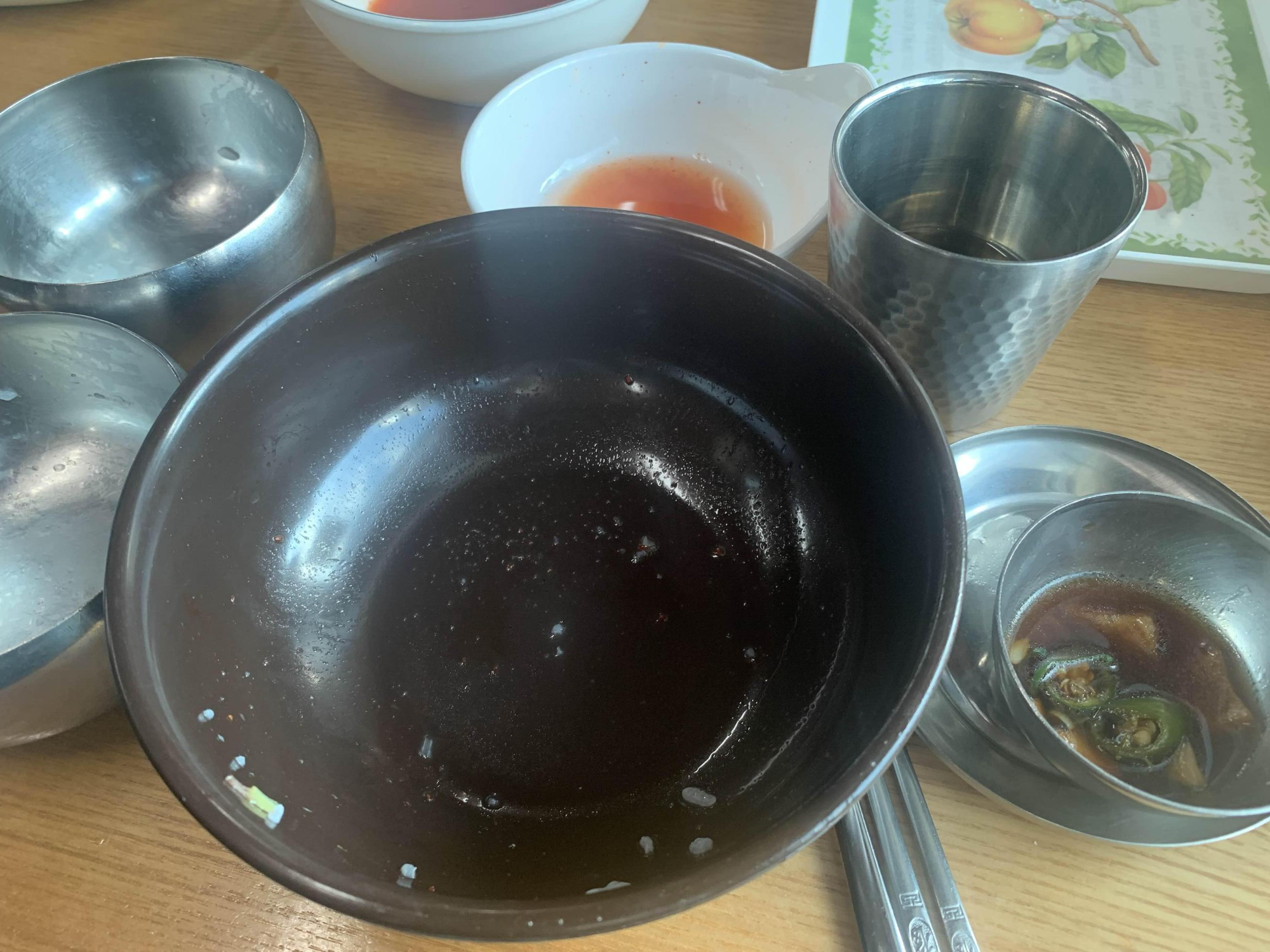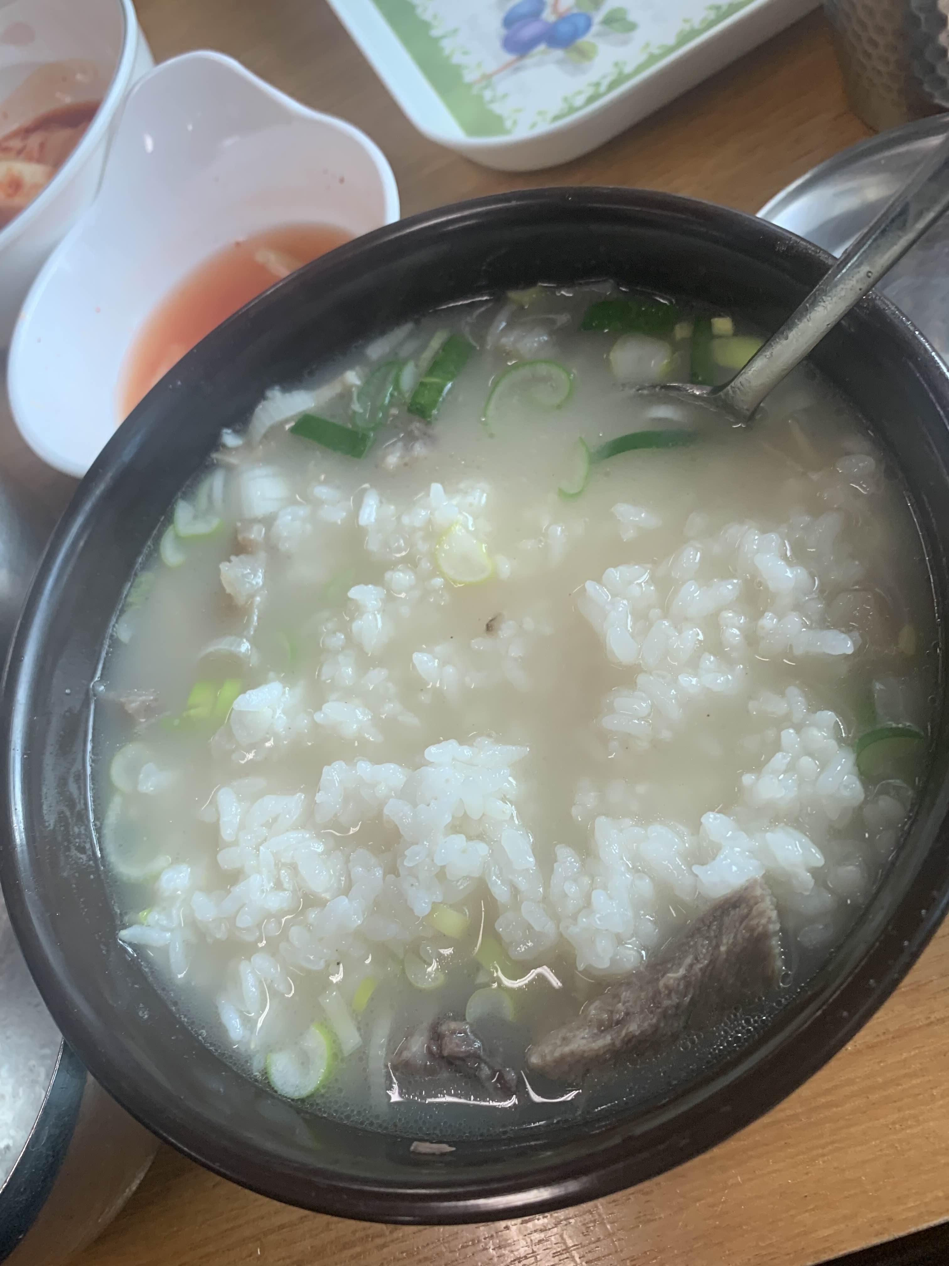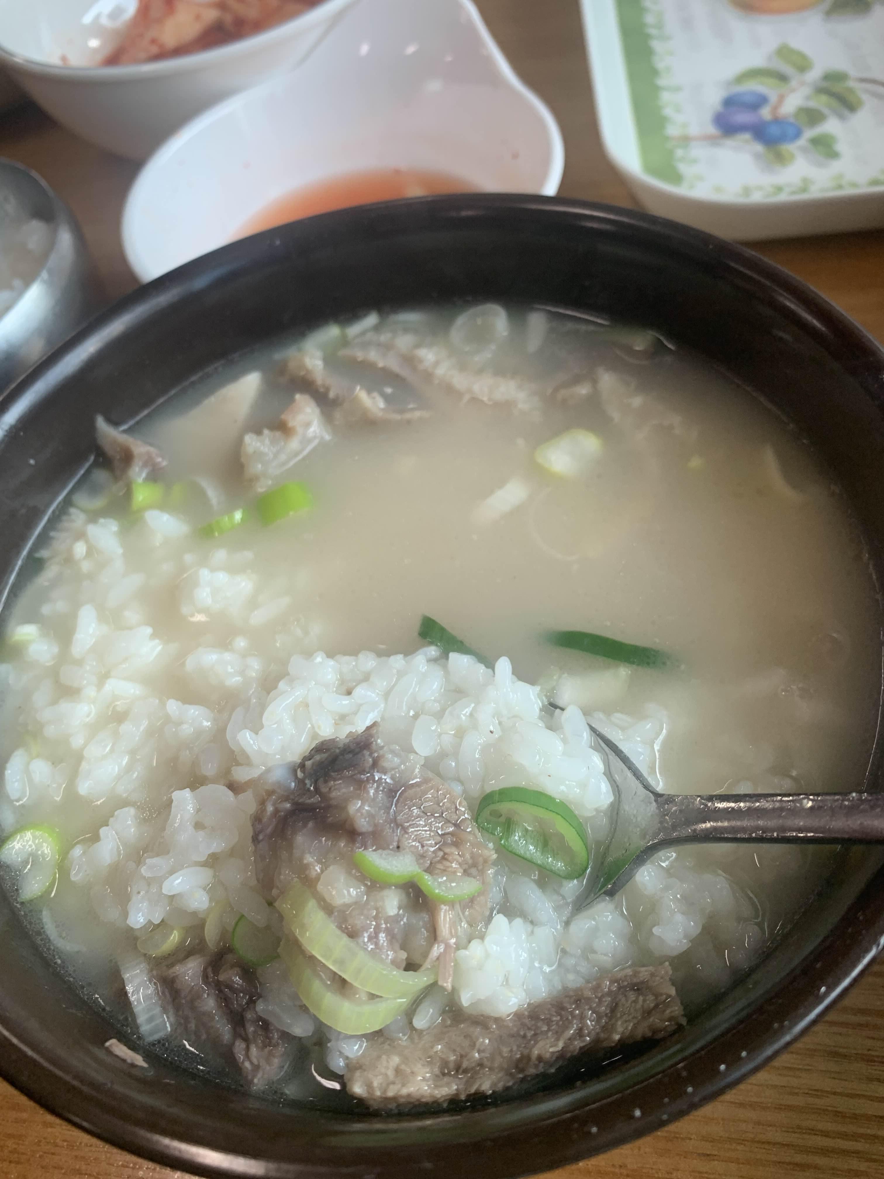 이렇게 곰탕을 마시든 먹다 보니, 어느 순간 곰탕의 뚝배기는 바닥을 드러냈습니다. 아침에 너무 출출하기도 해서 공깃밥을 추가해서 먹었는데... 아침식사 햇밥이라 입으로 쑥쑥 들어가 버렸네요.ㅎㅎ