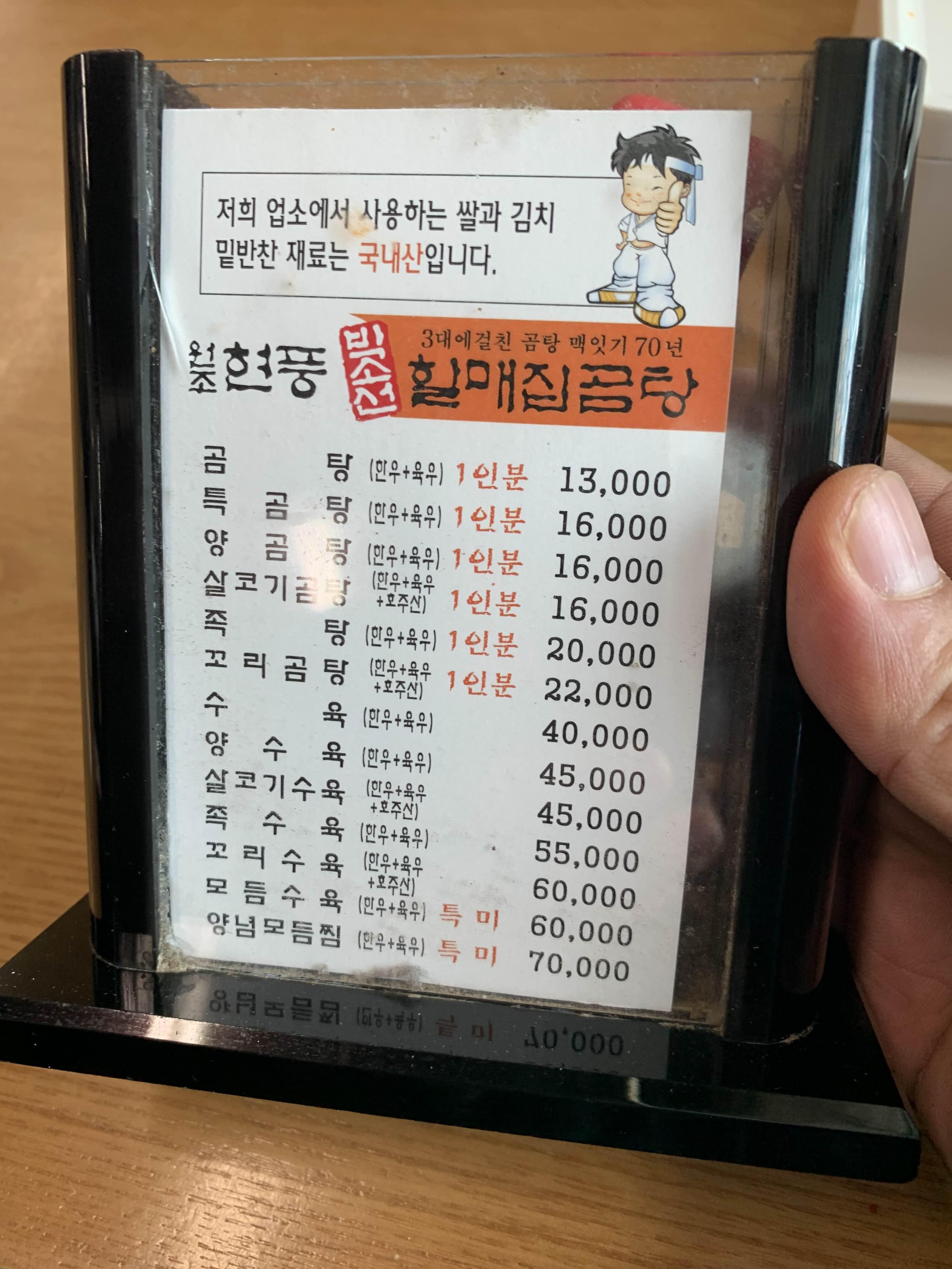 간단한 아침식사를 위해 식당에 들어섰는데, 가격을 보다 깜놀 했습니다. 곰탕 보통이 1인분 13,000원으로 아침 식사로는 좀 비싼? 많이 비싼 곰탕 식당에 들어서게 되었네요.ㅎㅎ