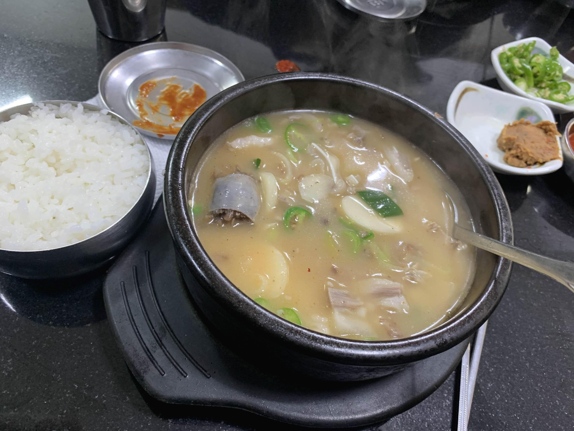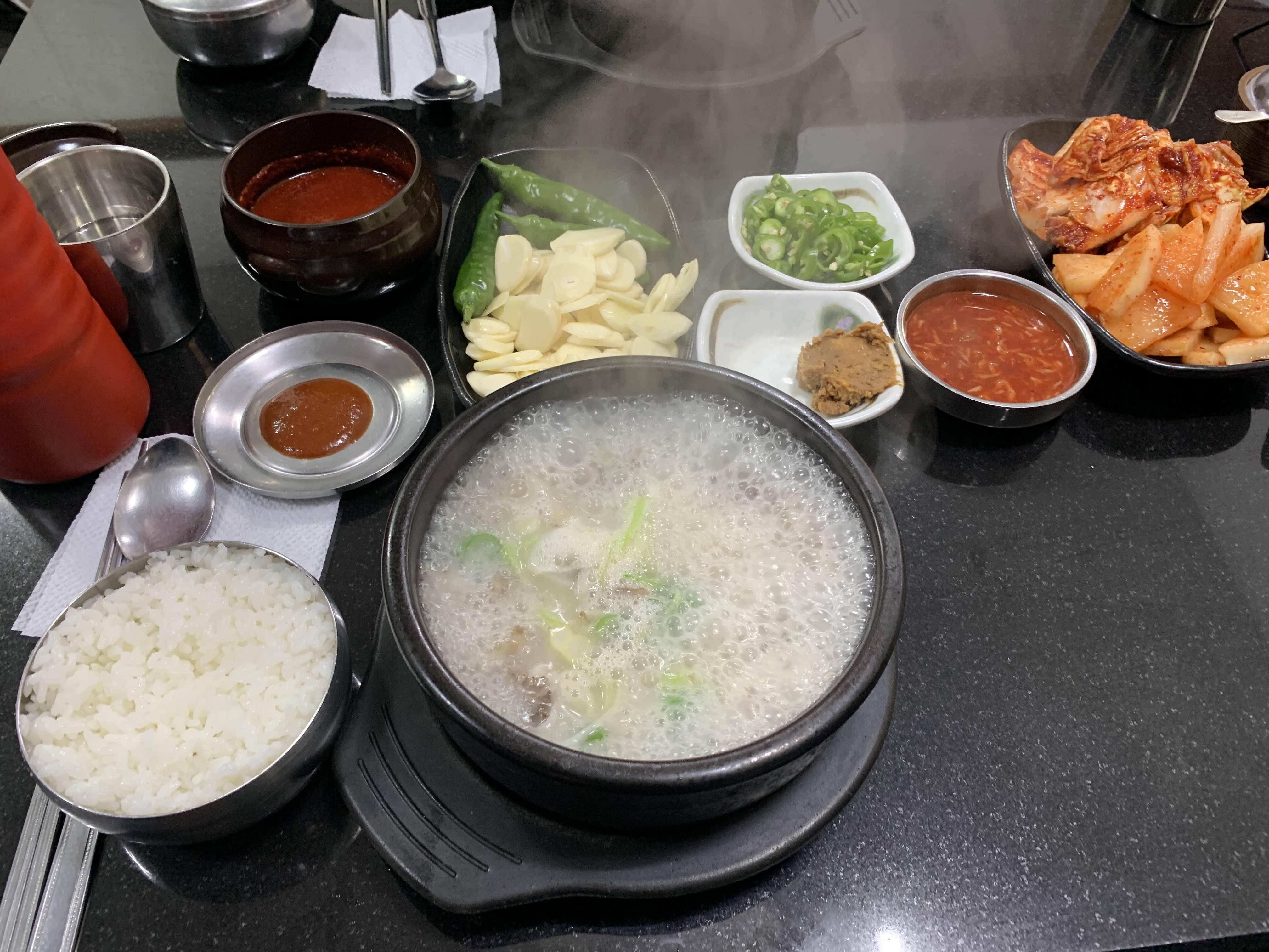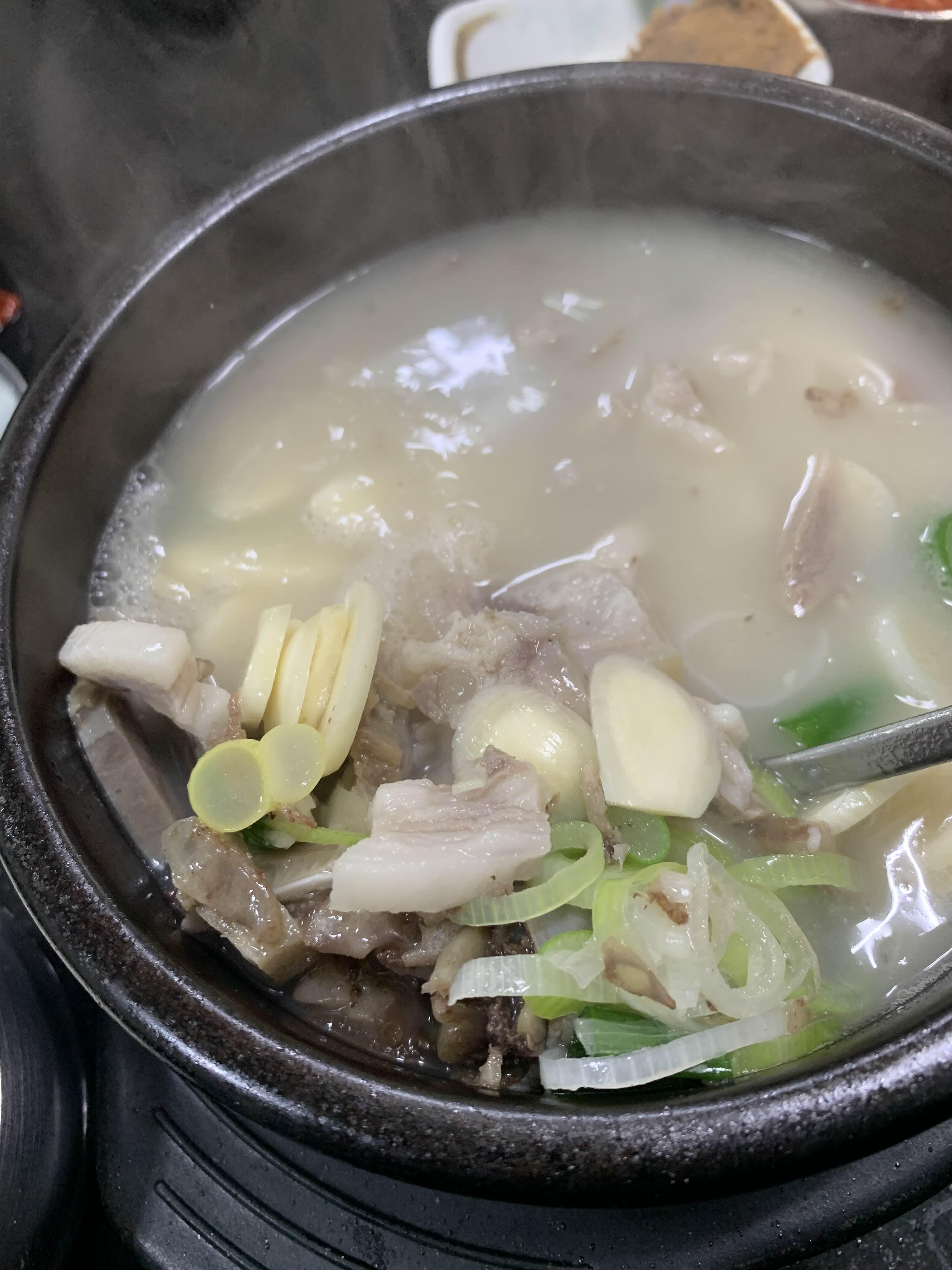 순댓국이 나오면 바로 마늘 투하!!! 그리고, 기호에 맞추어 후추/고추와 얼큰 양념장을 소량을 넣어주면 끝^^ 마늘을 넣은 순댓국 일반적으로 맛보는 순댓국의 끈적이는 묵직함은 사라지고 깔끔한 국물을 맛보기 좋습니다. 깔끔한 국물에 얼큰 양념장 소량을 투하하면 땀이 줄 루르 흐르는 해장국이 완성됩니다.