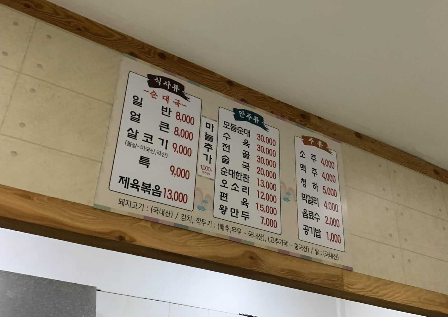 다른 순댓국 식당과 다른 포인트가 바로 마늘입니다. 편 마늘의 많은 양!!! 이 마늘은 몽땅 넣어서 먹는 순댓국 이 식당의 특징입니다. 예전에는 추가로 마늘을 더 주문하여 마늘 국 비슷하게 먹었던 기억도;;;; 지금은 마늘 추가 1,000원이라는 메뉴판 가격표가 눈에 들어옵니다. ㅎㅎ