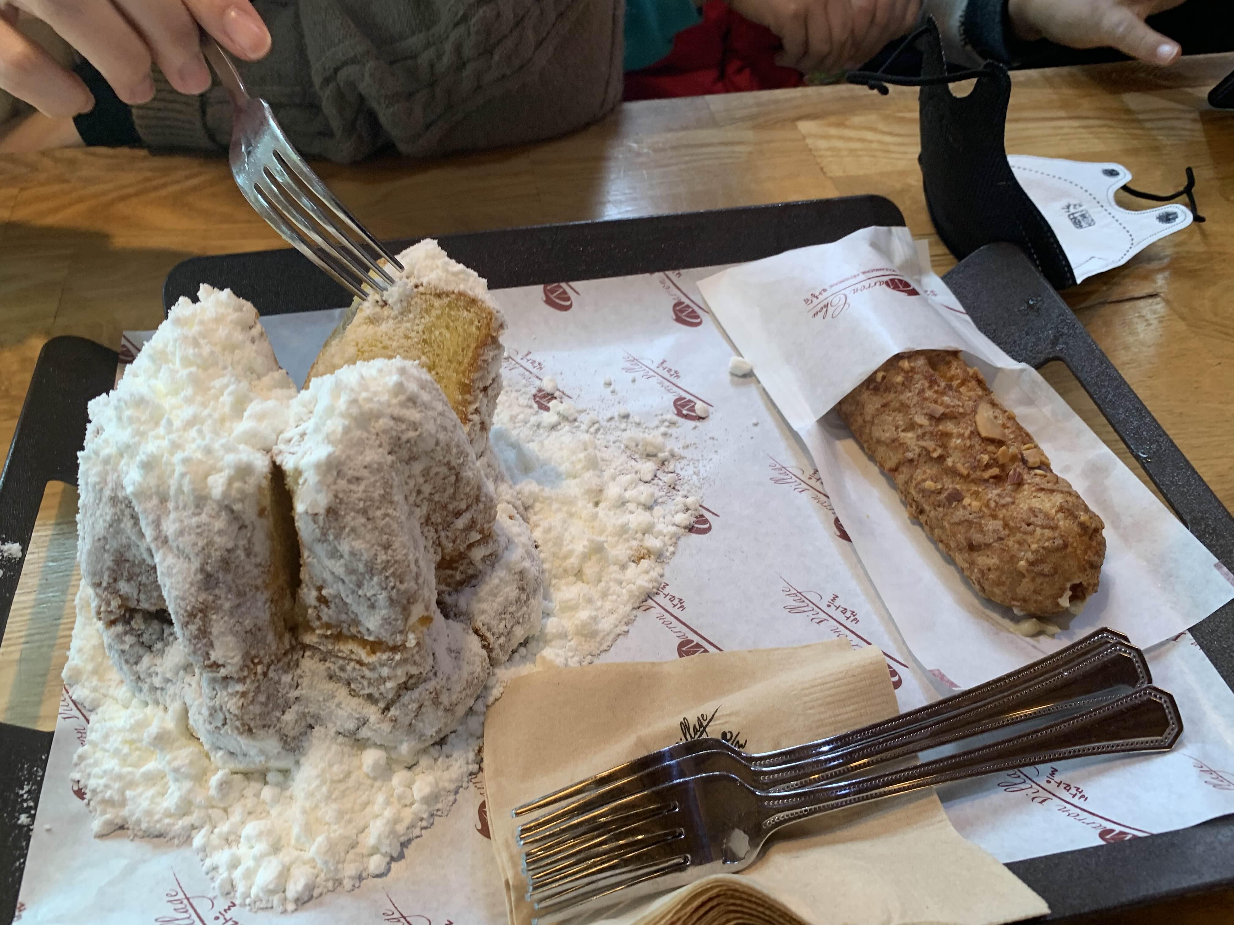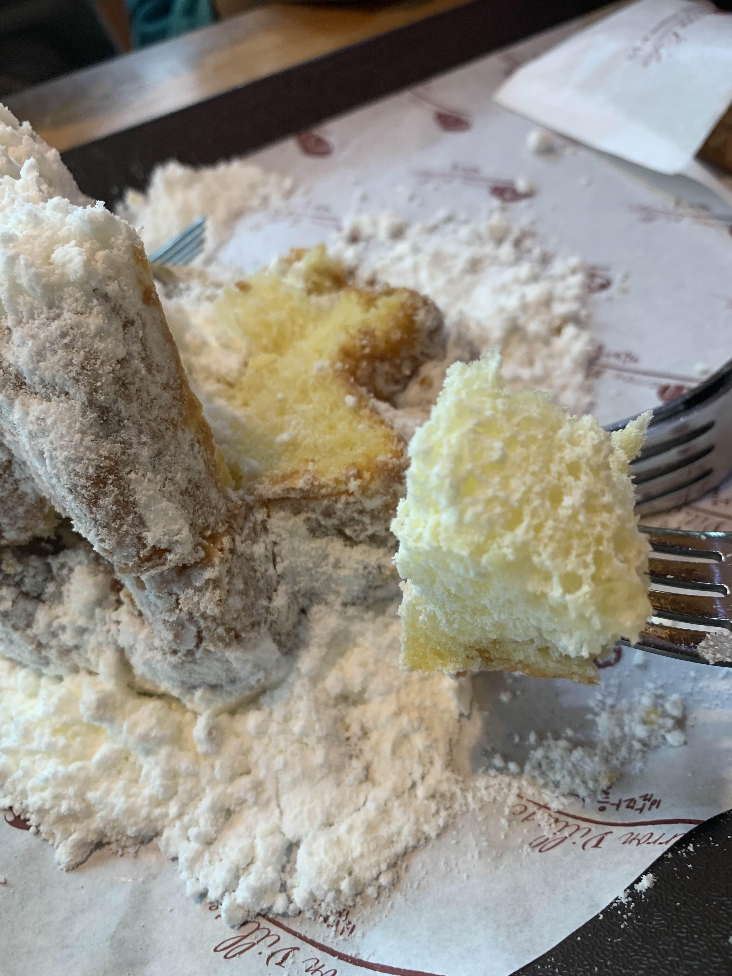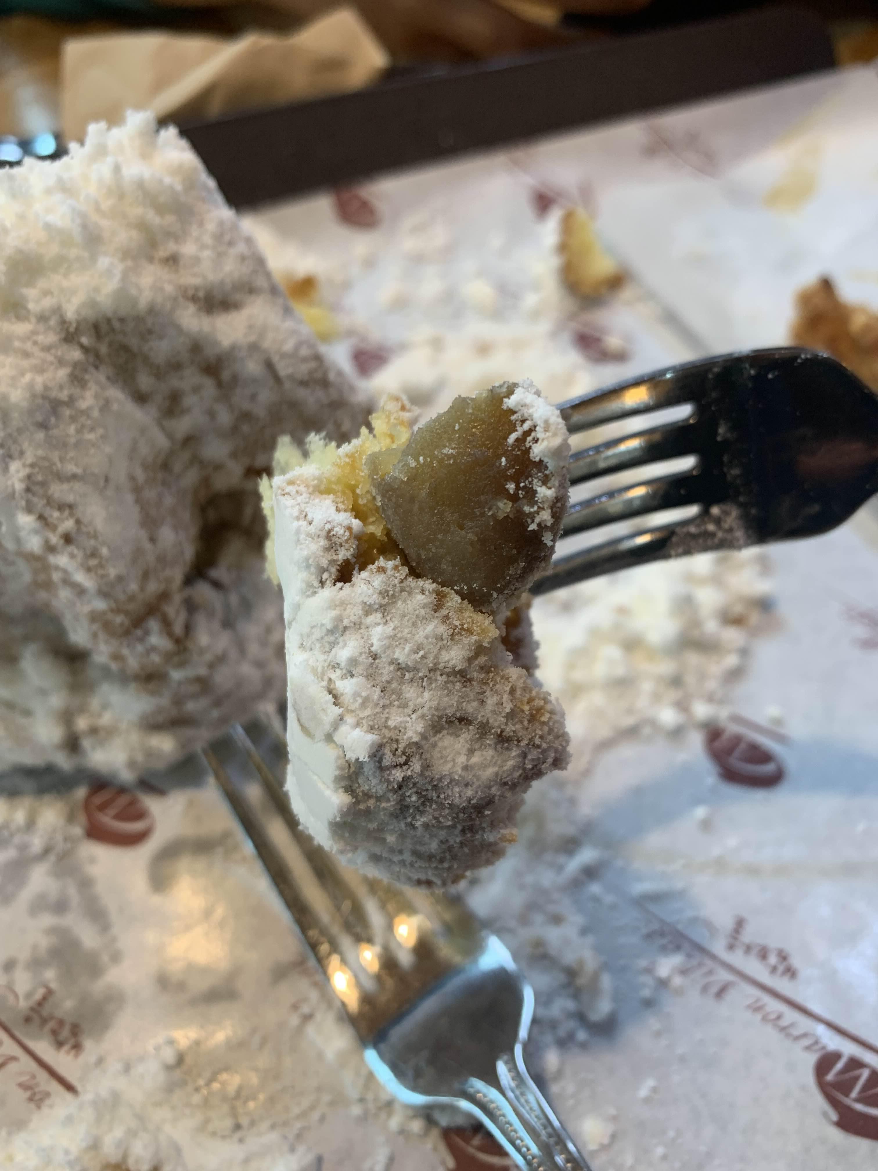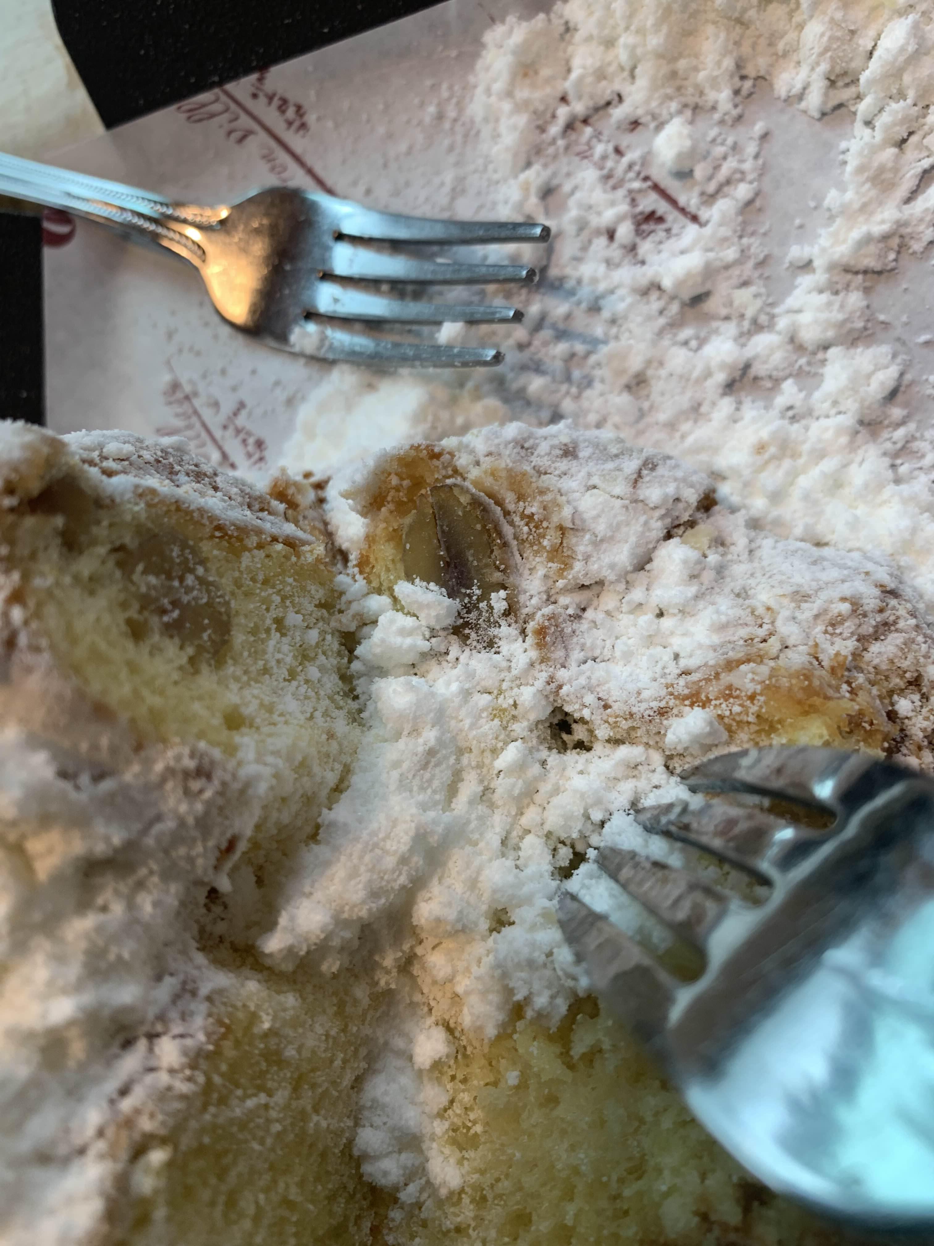 밤 팡도르 위 눈꽃 설탕? 이 위에 두툼하게 올라가 있는데... 빵은 먹으며 함께 먹으니 달달하고 부드러워 맛이 좋더군요. 위 빵 부분을 먹으며 밤? 은 어디에 들어있지 하며 먹다 보면, 밥은 아래쪽에 깔려 있더군요.
