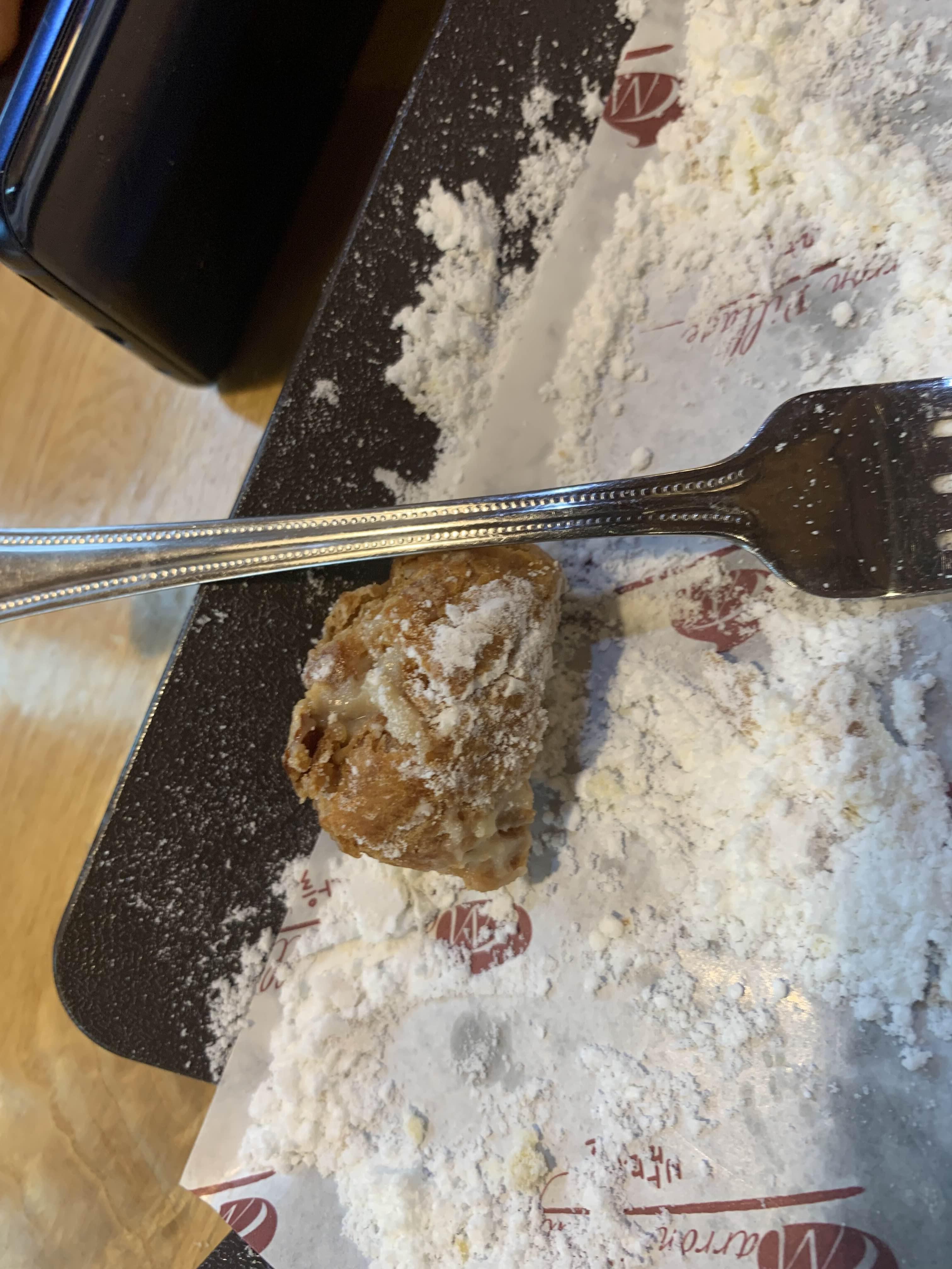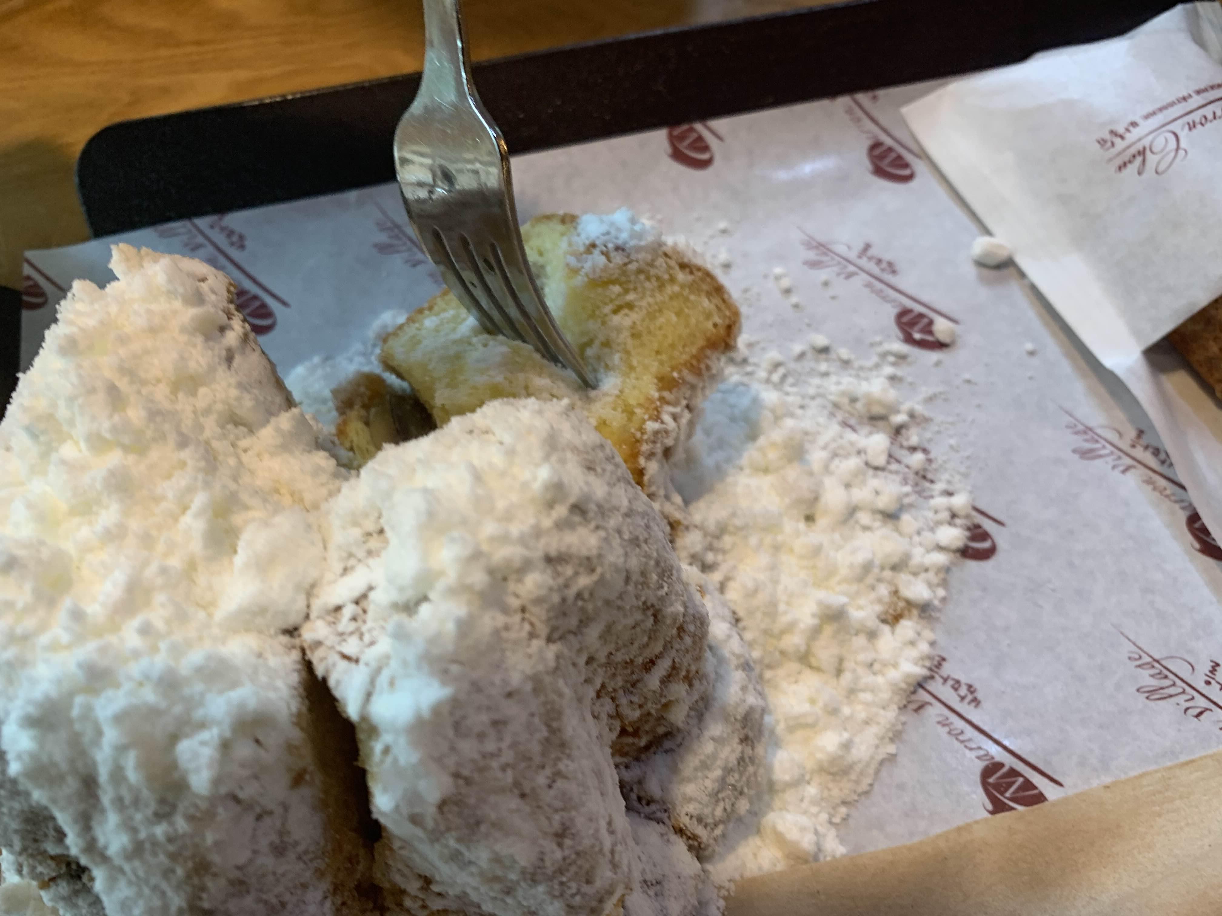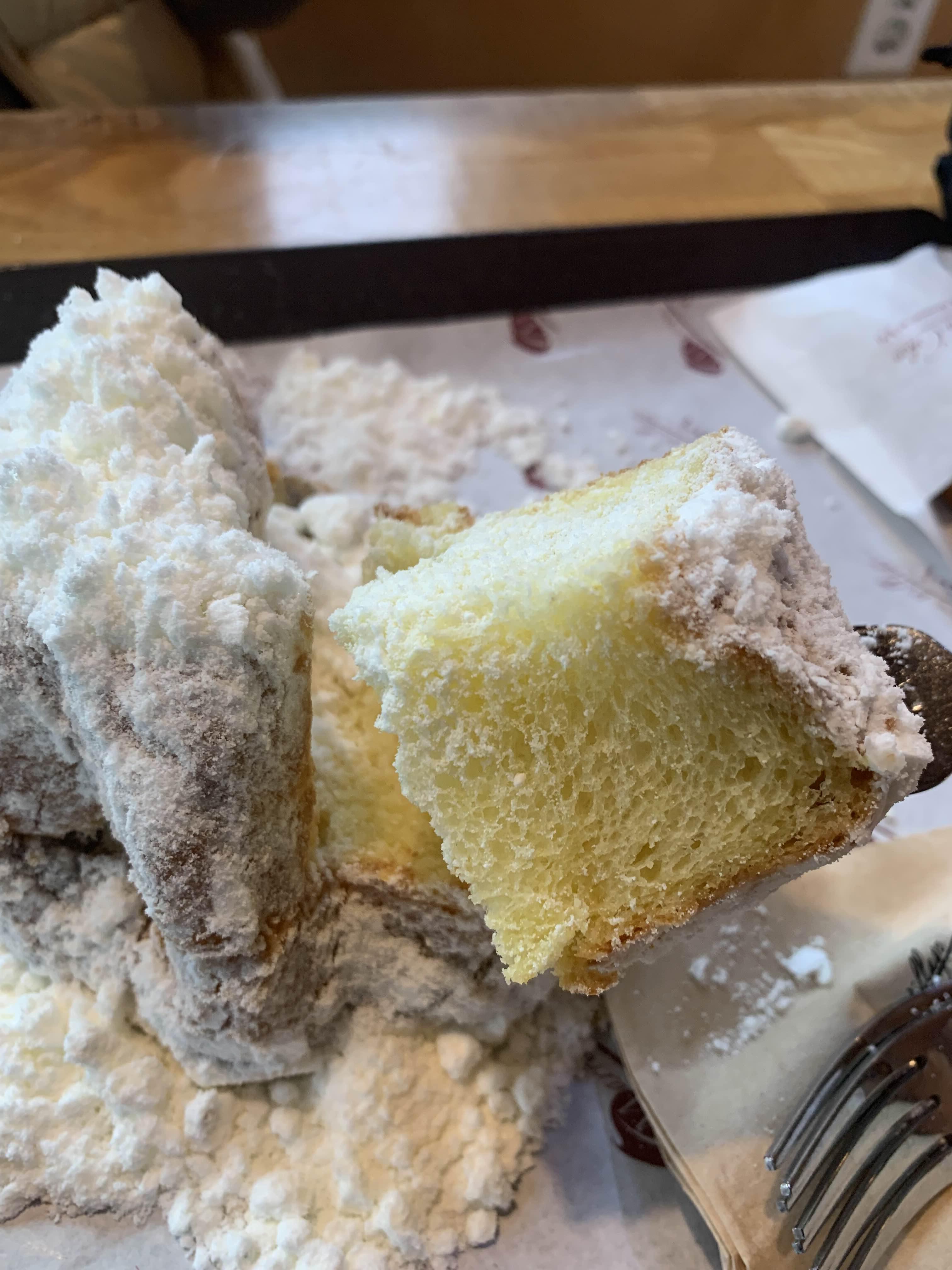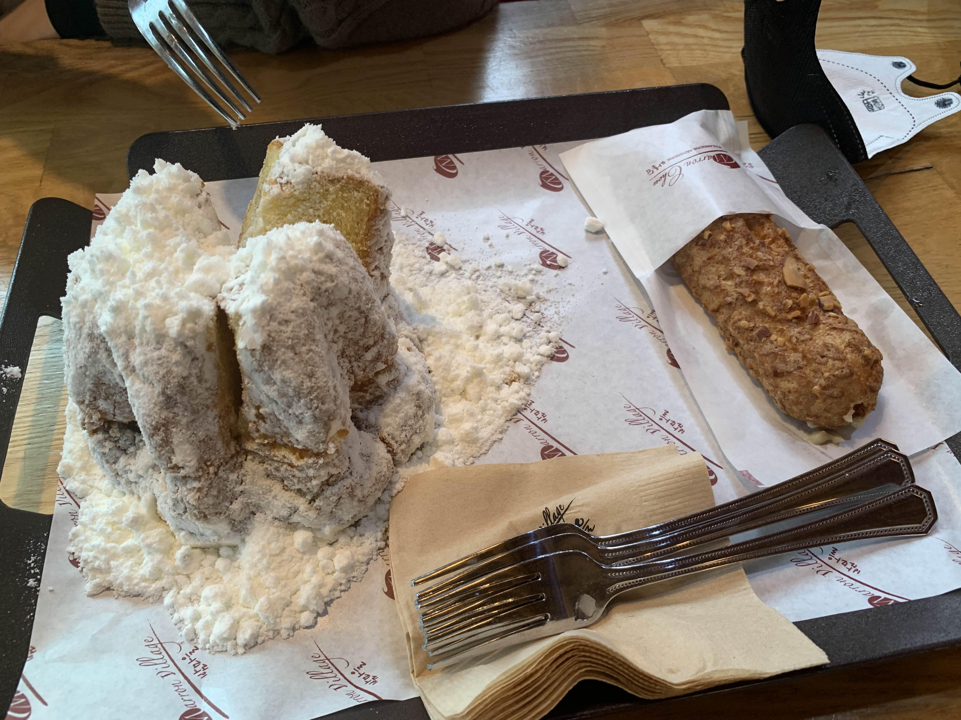 밤 팡도르 위 눈꽃 설탕? 이 위에 두툼하게 올라가 있는데... 빵은 먹으며 함께 먹으니 달달하고 부드러워 맛이 좋더군요. 위 빵 부분을 먹으며 밤? 은 어디에 들어있지 하며 먹다 보면, 밥은 아래쪽에 깔려 있더군요.