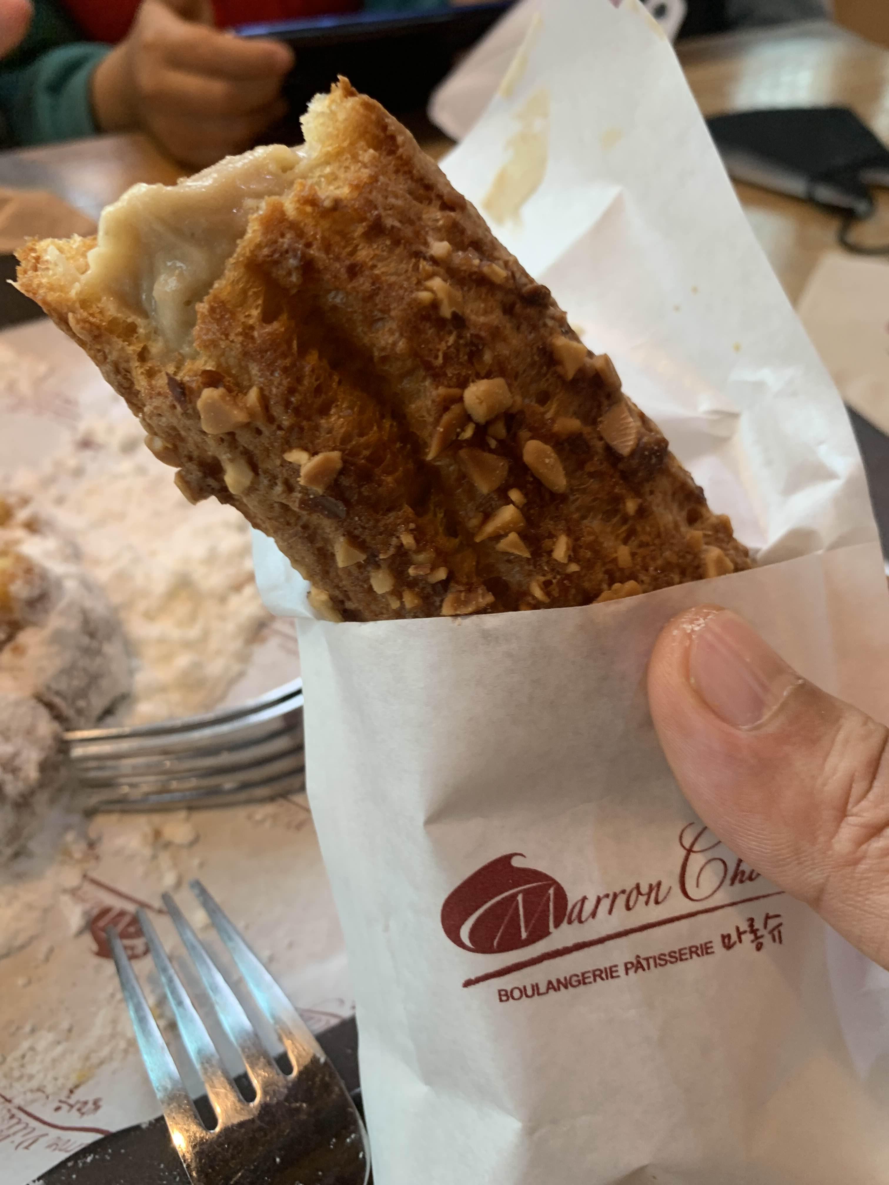 공주 특산물 "밤" 이용한 빵 2가지를 맛보았습니다. 밤 팡도르는 어른이나 아이들이 모두 좋아할 만한 맛이었습니다. 그 외 빵은 호불호가 갈리는 맛이었습니다.