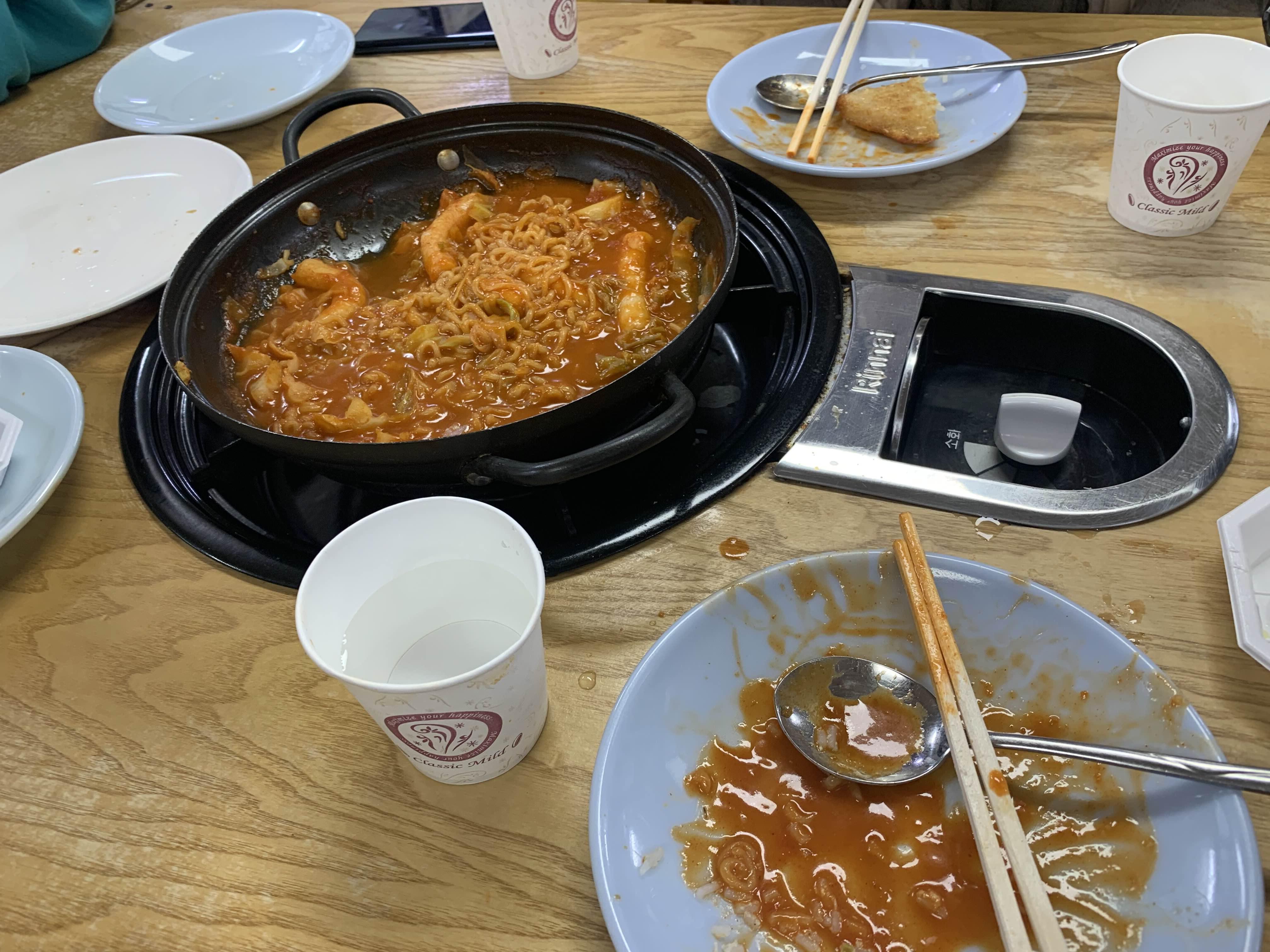 비가 내려서 인지? 시간 때가 애매해서 그런지 식당 내부에는 손님이 한 팀도 없더군요. 식당 내 손님이 있으면, 다른 테이블 메뉴를 빠르게 스캔하고 메뉴를 선정하는데^^ 손님이 없어, 많이 나가는 메뉴를 물어보았습니다. 모두 잘 나간다고 하시더군요. 모두 잘 나간다는 말씀을 해주시면...... 대략 대표 메뉴가 없다는 대답처럼 들려서, 좋아하는 답변은 아닌데.ㅎㅎ 그냥 잘 팔리는 메뉴라도 알려주셨으면^^ 메뉴는 라볶이와 군만두 하나씩 주문했습니다.