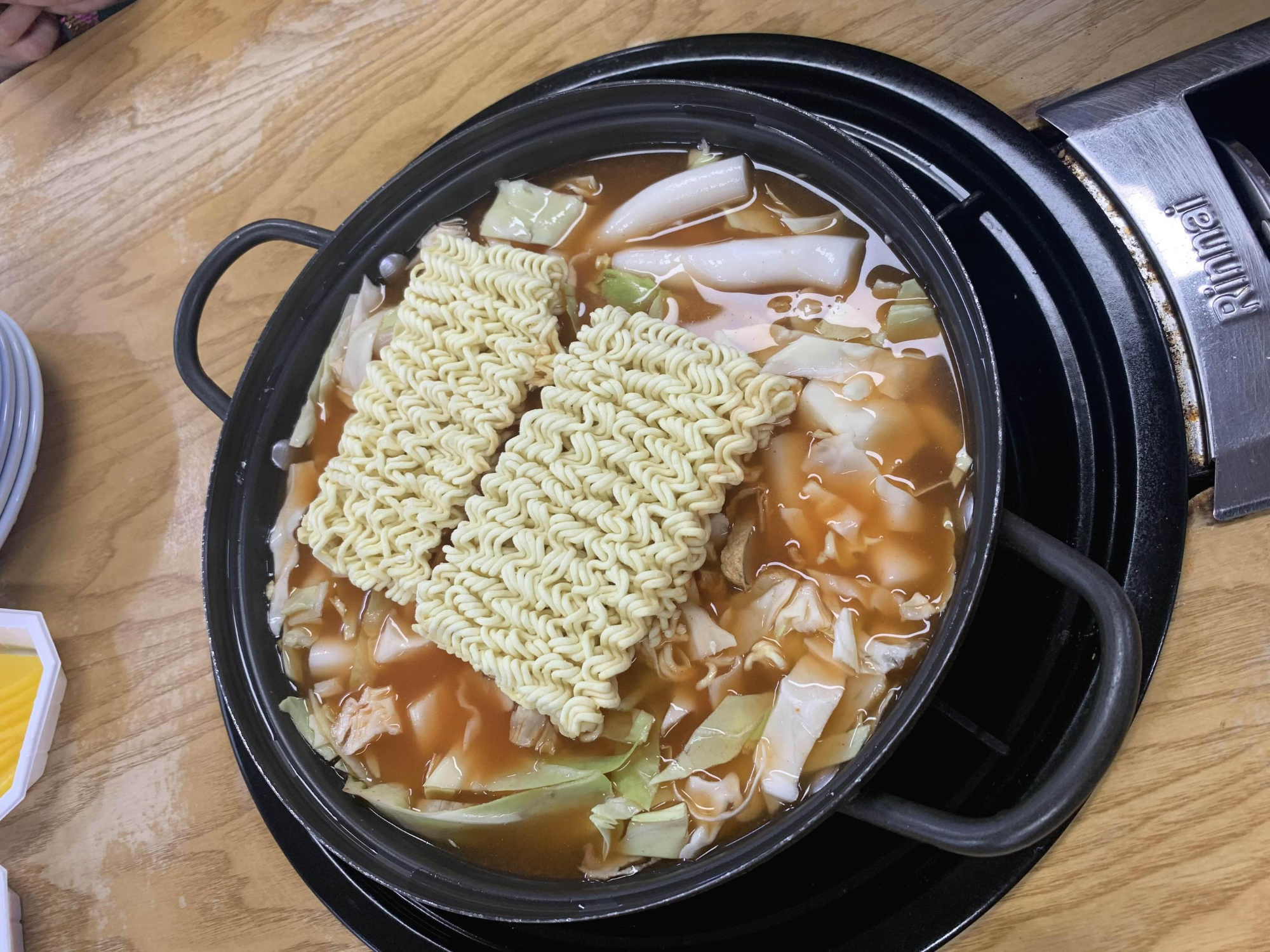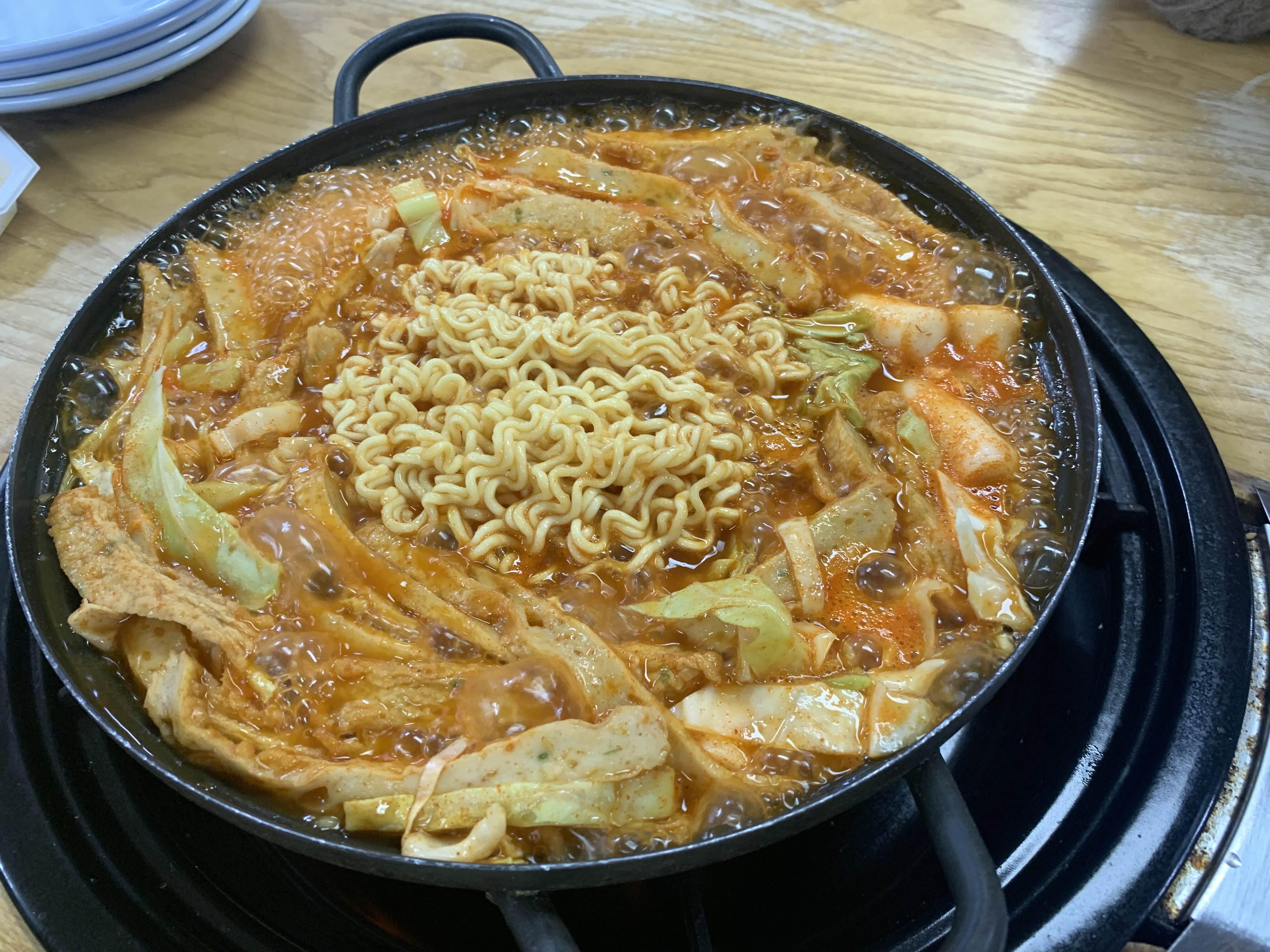 라볶이를 주문하면 즉석 냄비에 라면이 올라가서..... 꼭 라면을 주문한 느낌이 들더군요.ㅎㅎ 조리되기 전 국물 맛을 보았는데.... 밍숭 밍숭 이게 맛이 있을까?라는 생각이 들 정도의 국물 맛이었습니다.