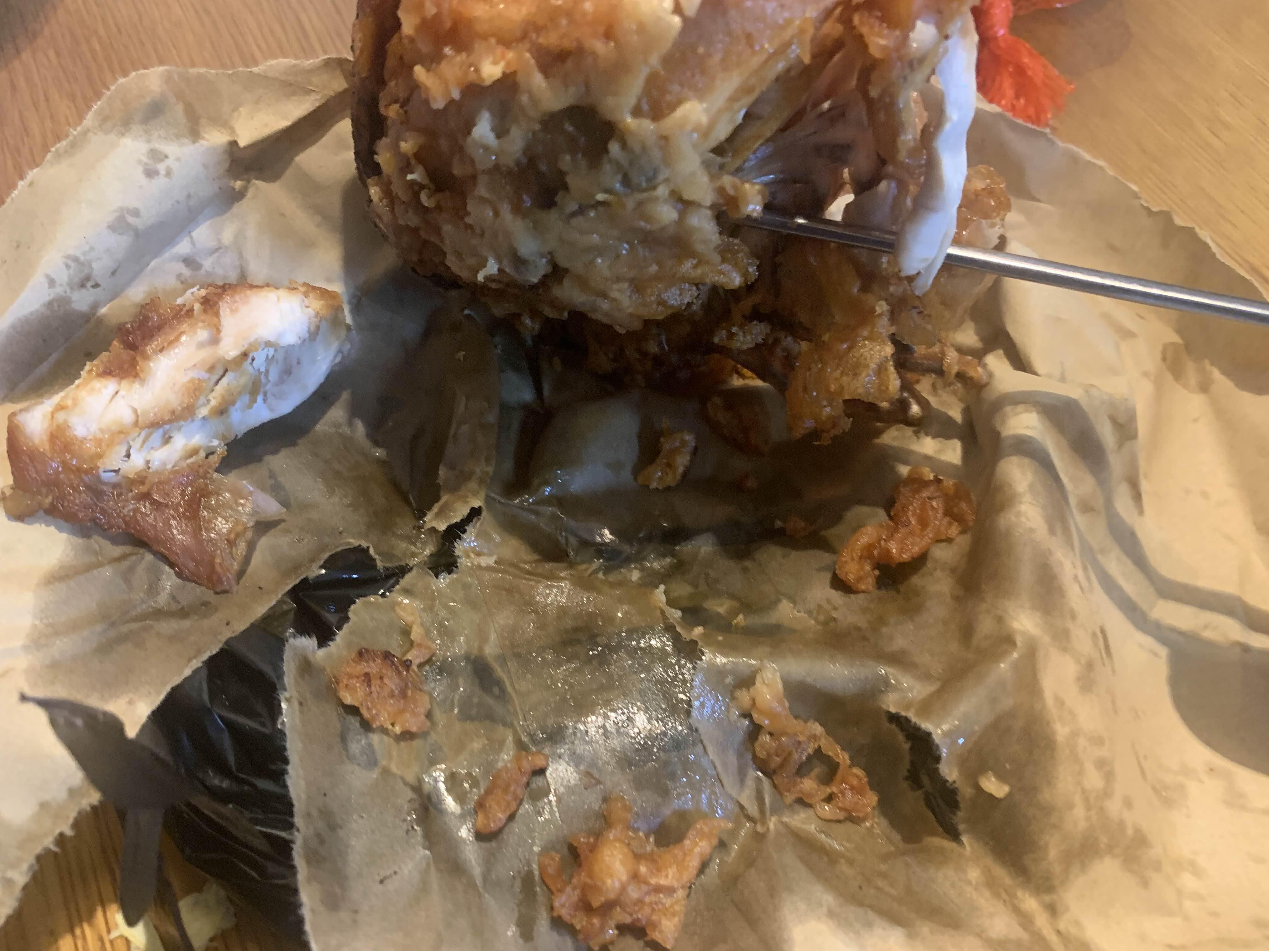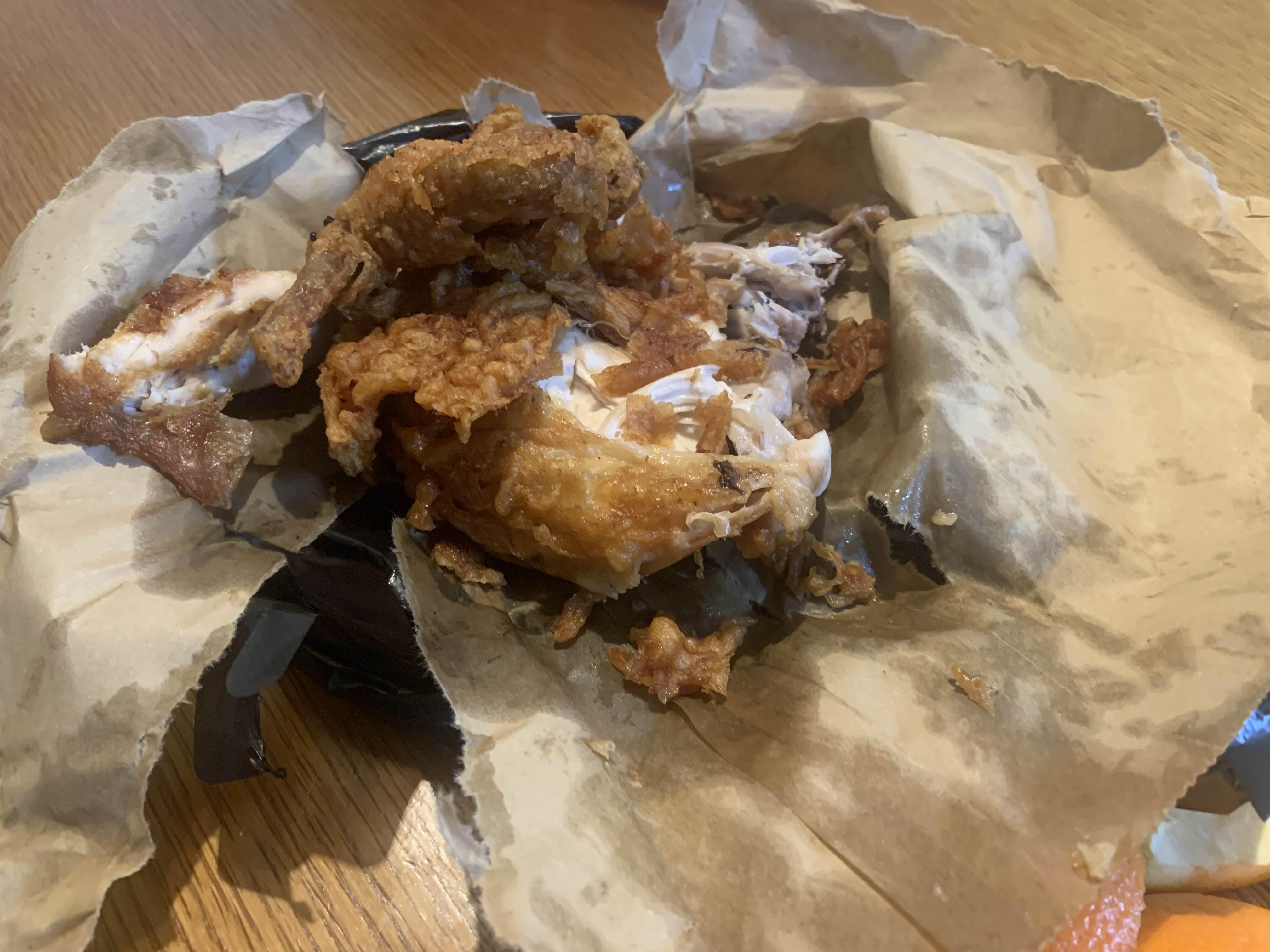 집에 도착해서 남은 통닭의 포장을 개봉했는데..... 포장 아랫부분에 기름기가 엄청나더군요. 윗부분의 껍질은 바삭함이 여전했으나 고기는 많이 딱딱해졌더군요. 어느 음식이든 조리된 후 바로 먹어야 맛난 거 같습니다. 포장은 비추;;;