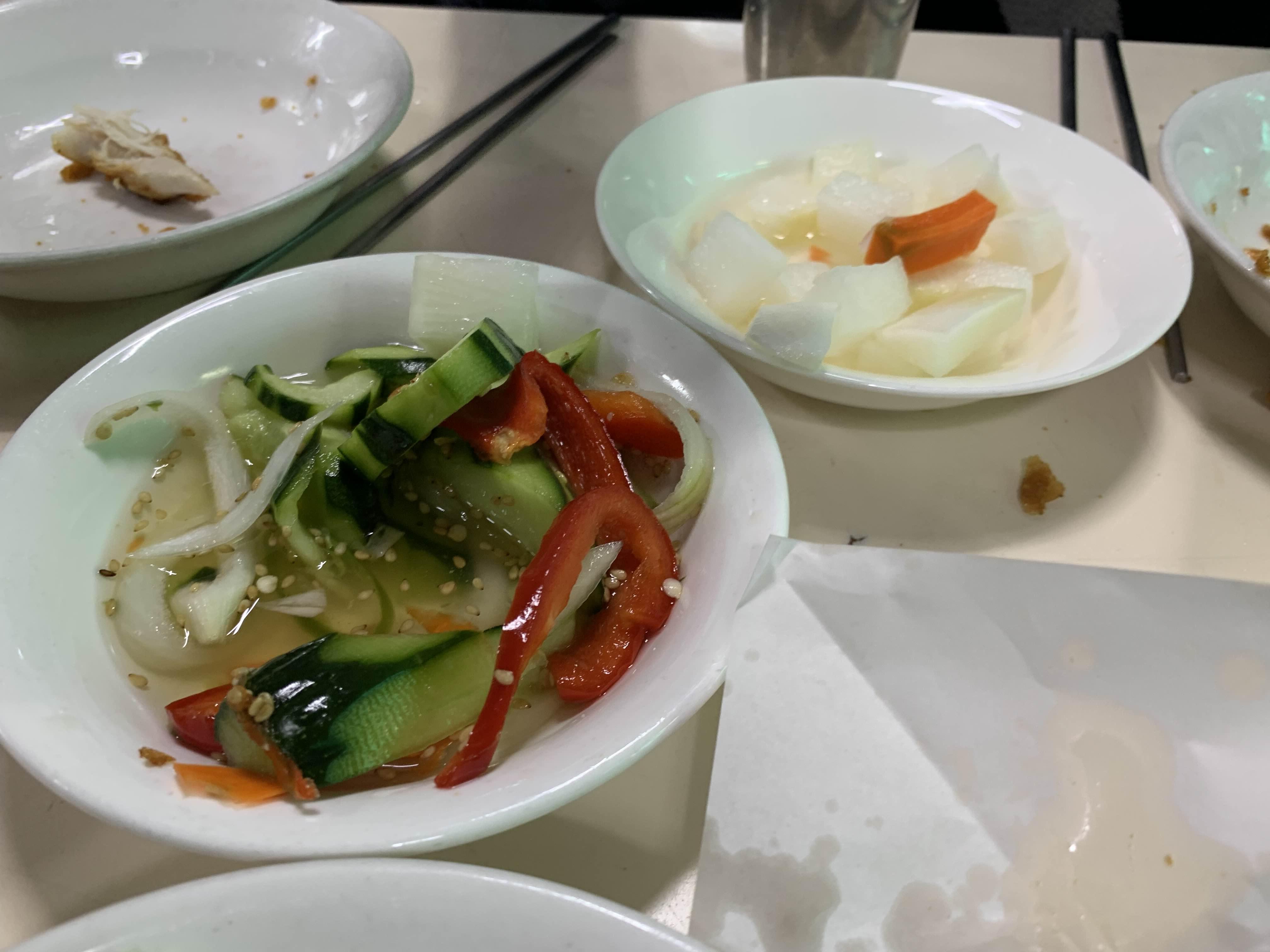 바삭한 통닭의 다리를 먹어주고 나니 어느 정도 배가 불러오더군요. 그래서, 나머지 통닭은 포장했습니다. 통닭과 함께 나오는 오이절임이 상큼하니, 통닭의 느끼함을 싹 잡아주더군요.