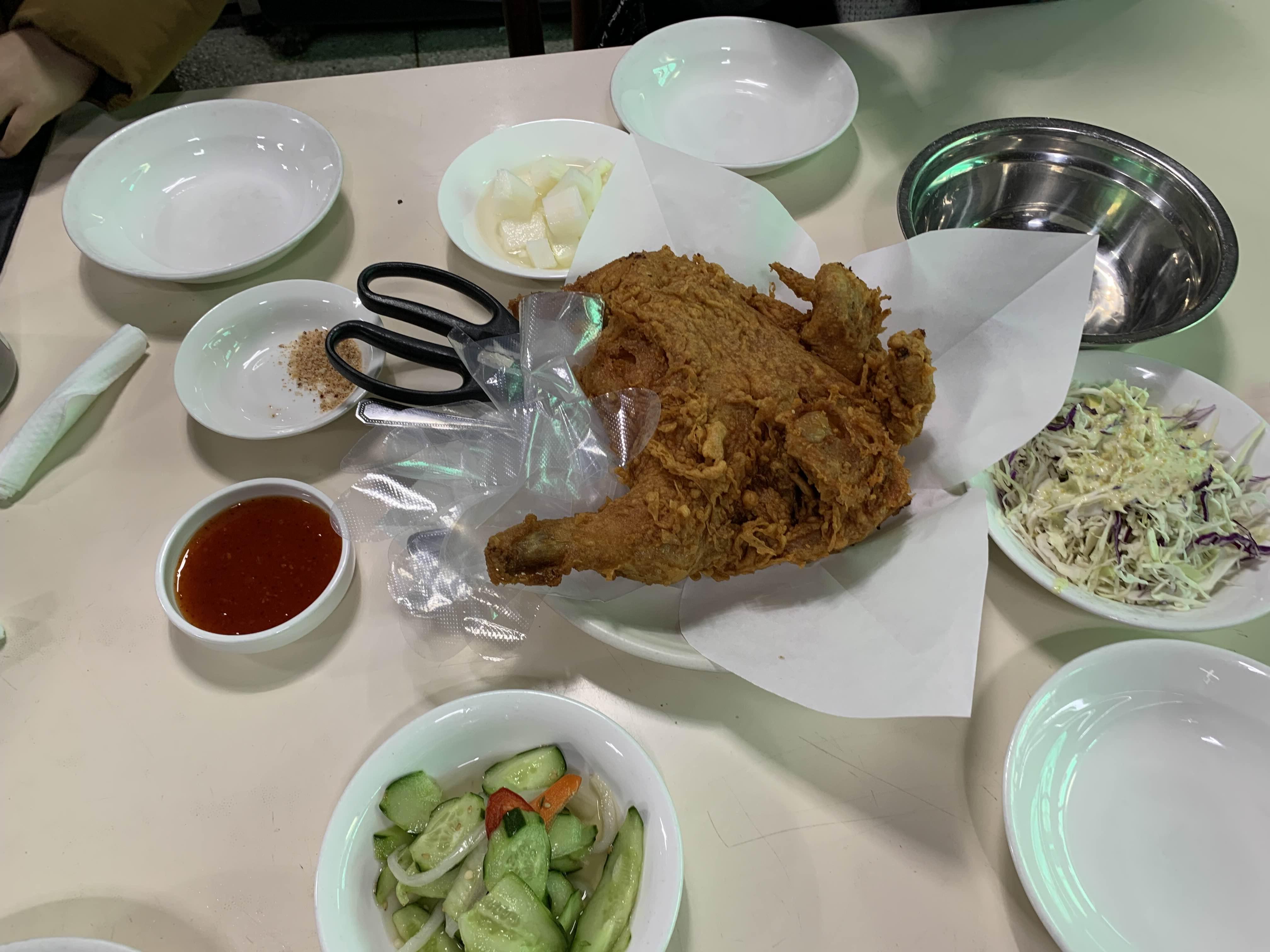 오랜만에 방문한 시골 통닭, 예전에 비해 밑반찬으로 나오는 국물과 모래주머니(똥집) 튀김이 안 나와서 아쉬움이 남았네요. 그럼에도 불구하고 바로 나온 통닭의 바삭함은 여전했습니다.