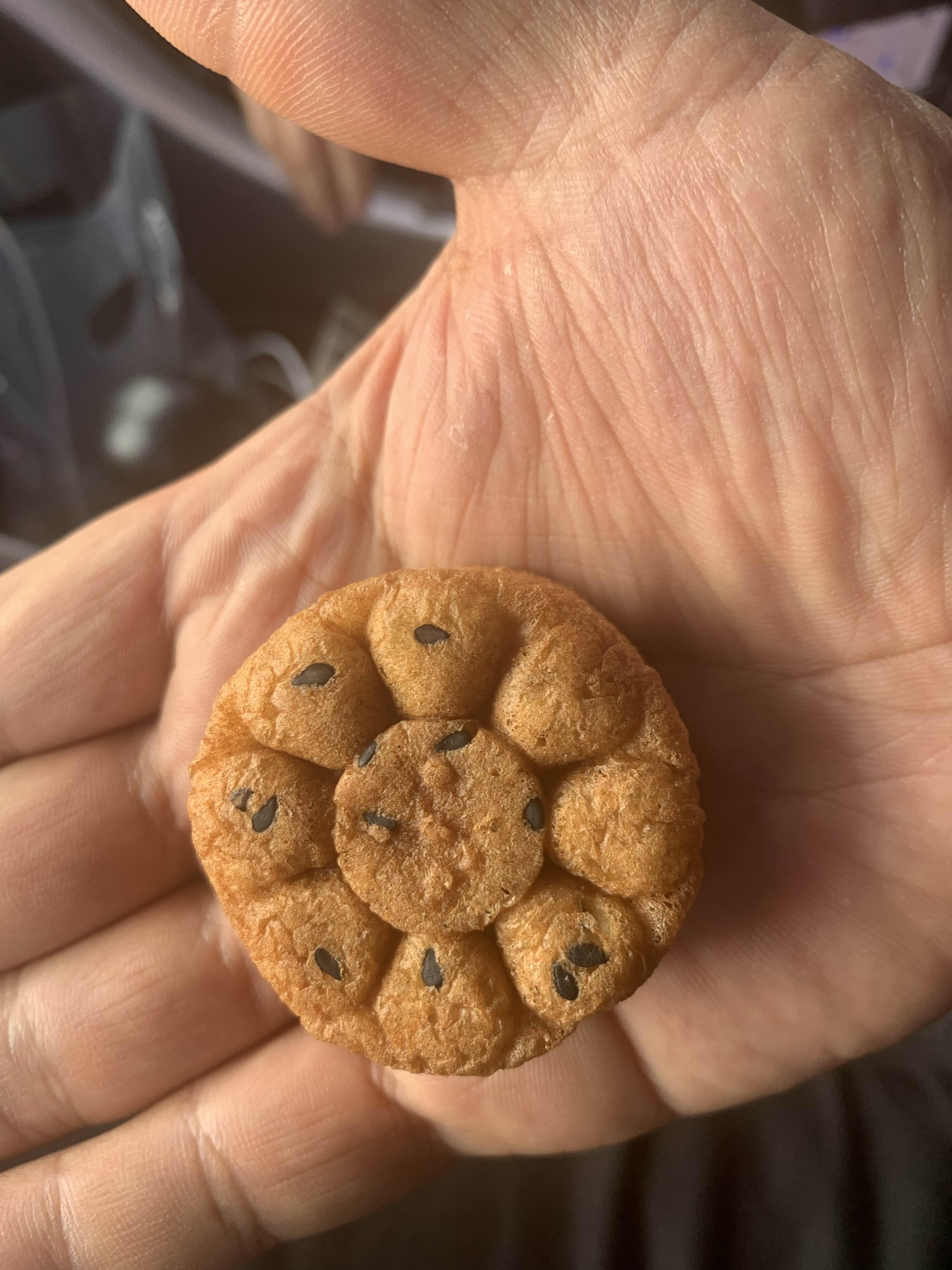 비닐봉지에 담긴 부여 연꽃 빵!!! 방문 전 연꽃 빵이 손바닥 만하겠다 생각했었는데, 손바닥 반절 정도의 크기입니다. 상당히 작은 사이즈!!
