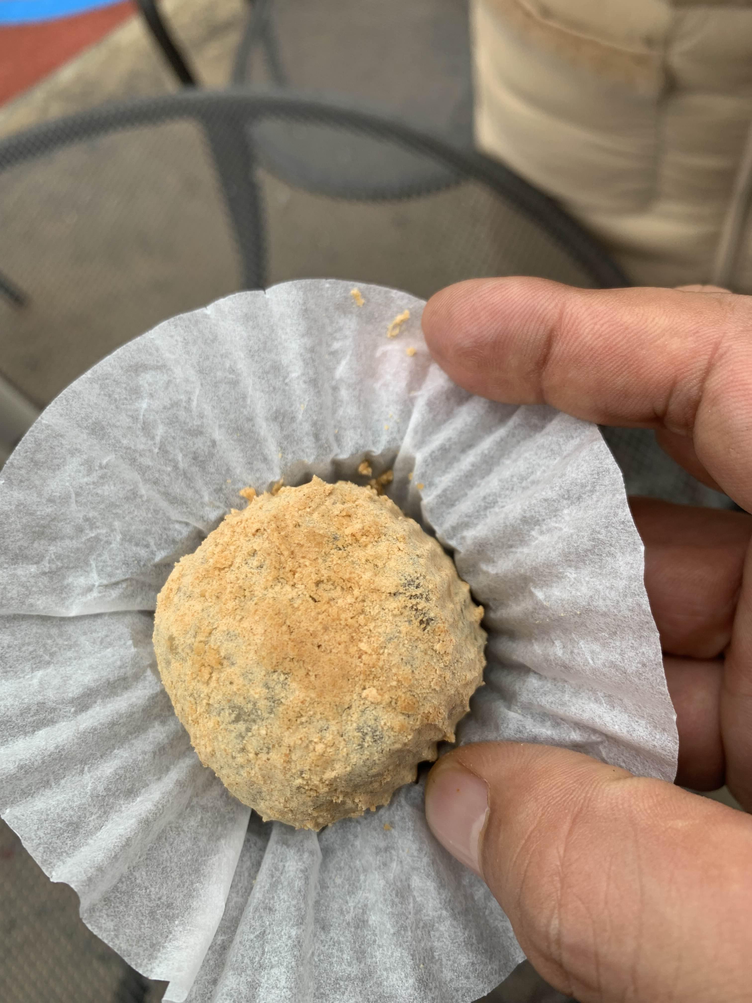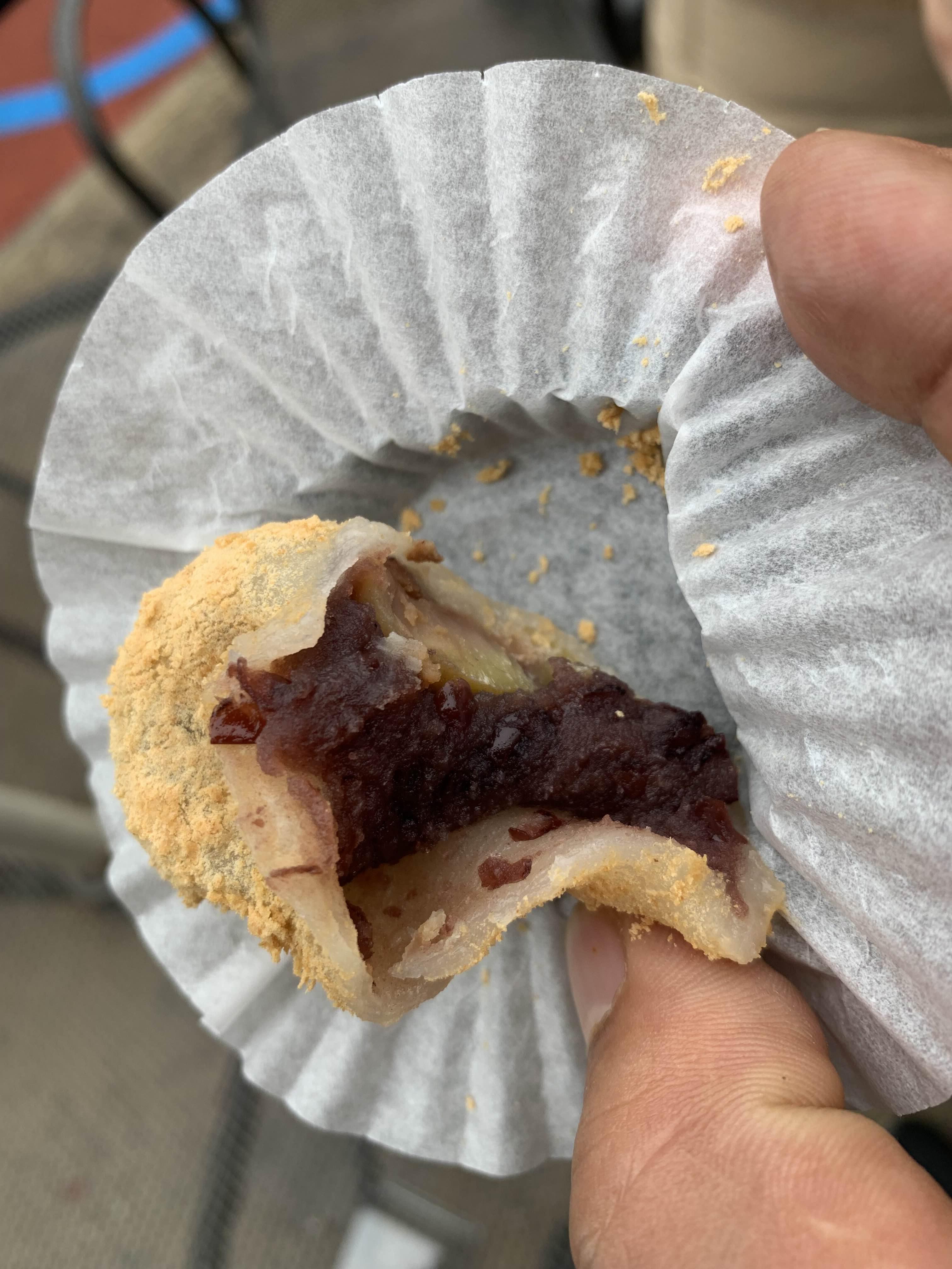 인절미!!! 인절미 내 밥을 넣은 밤 절미를 공산성 앞 카페에서 판매하고 있더군요. 이미 식사를 두둑이 먹은 상태라 낱개로 구매하여 맛보기로 했습니다. 1개당 1,300원으로 가격은 꽤 나가더군요.ㅎㅎ