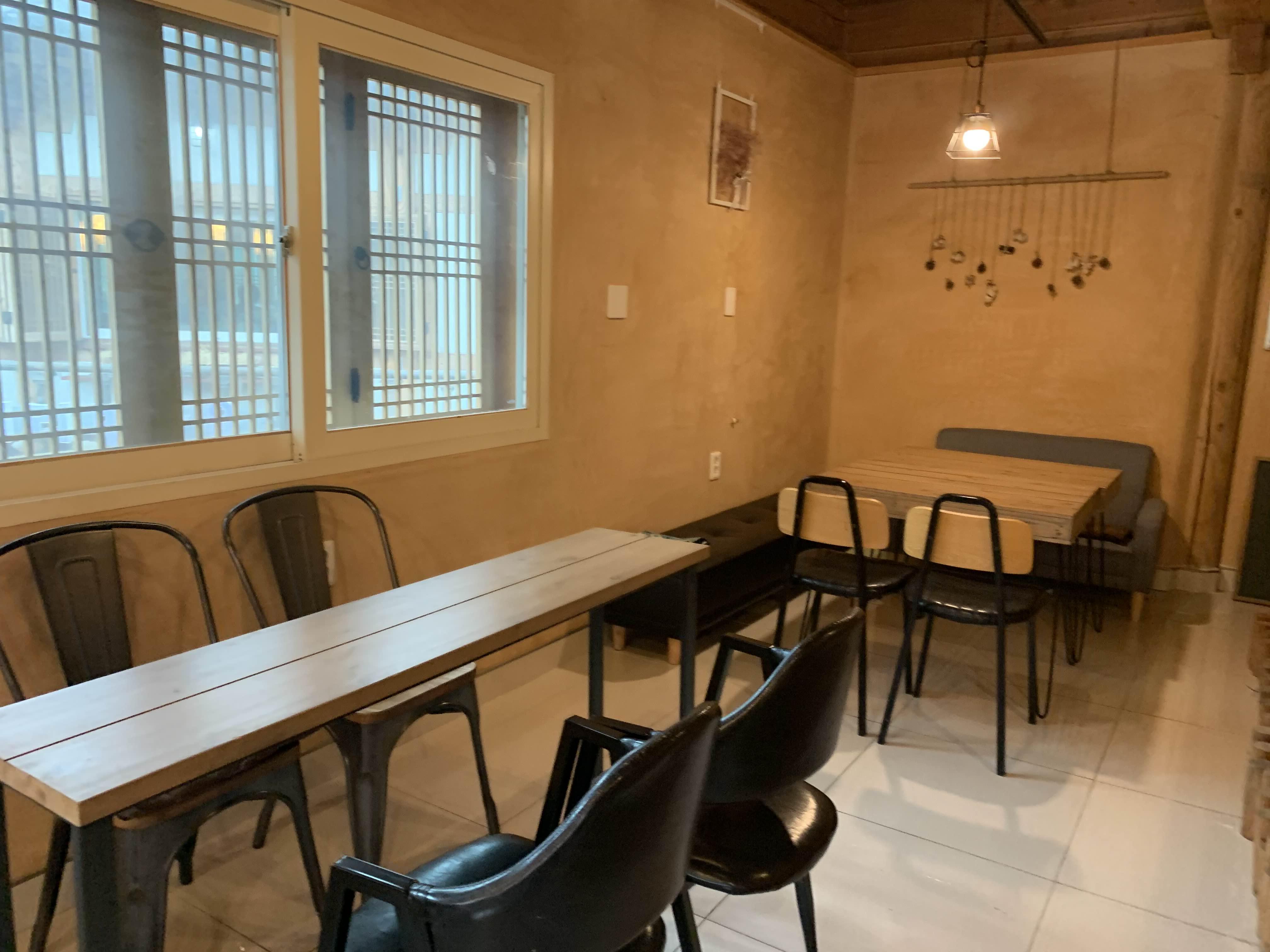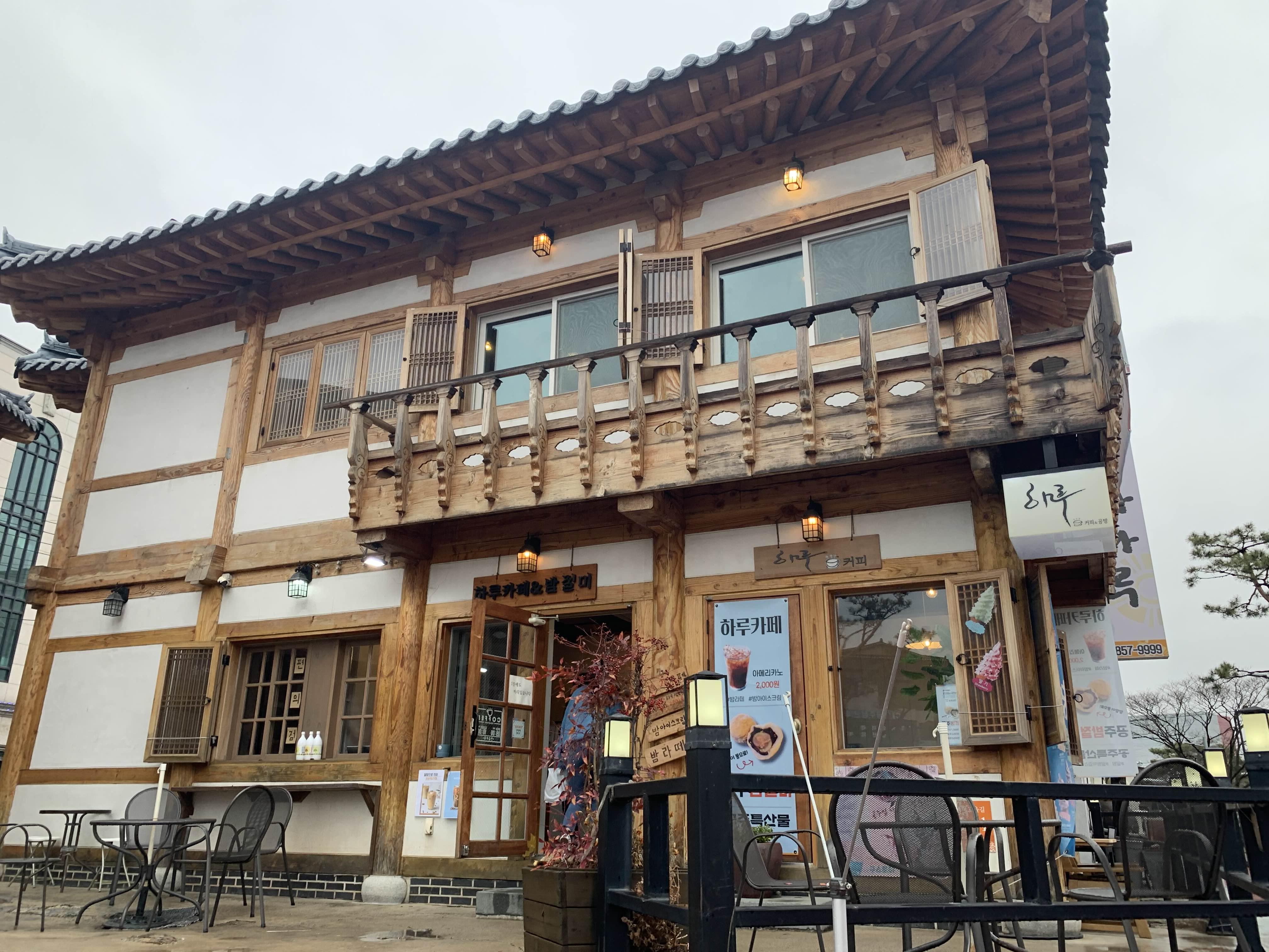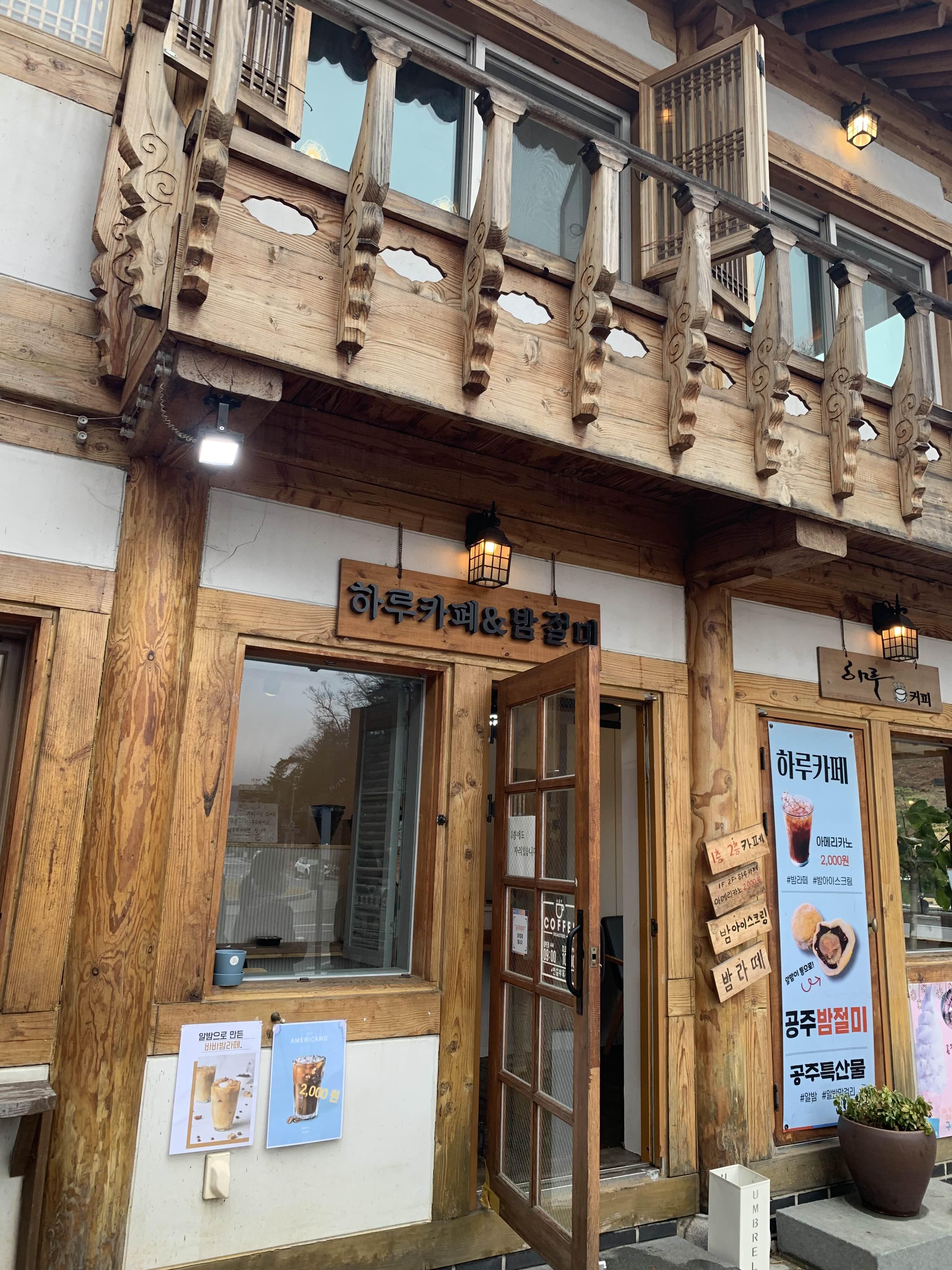 한옥으로 된 카페에 2층 휴게공간이 마련되어 있더군요. 간단히 맛을 보기 위해 구매한 밤 절미라 2층이 아닌, 외부 테이블에서 맛보기로 했습니다.