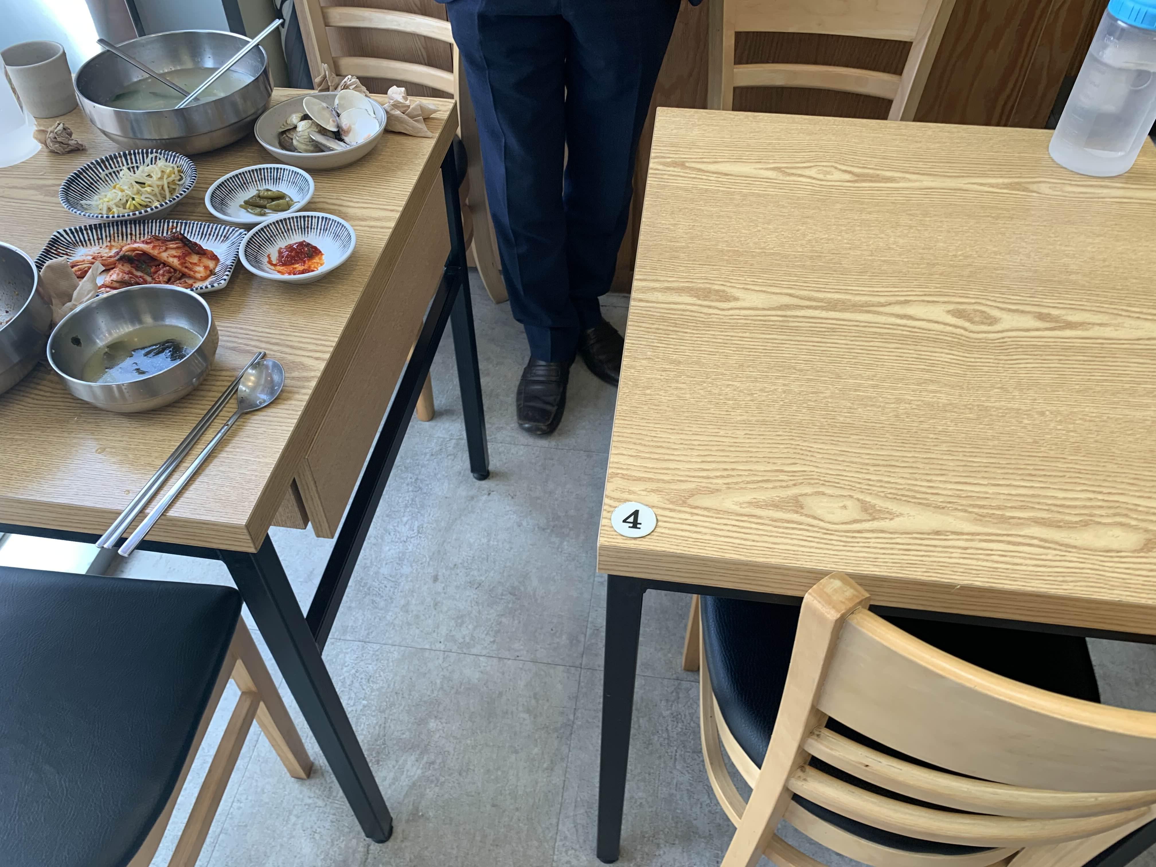 식당 테이블은 2인석으로 구성되어 있었는데, 2인석 테이블을 방문한 인원에 따라 붙이거나 분리하여 사용하더군요. 미리 주문한 꼬막비빔밥을 기다리며, 다른 테이블은 뭘 주문했나 보니 의외로 칼국수를 주문한 테이블이 눈에 많이 들어오더군요.ㅎㅎ